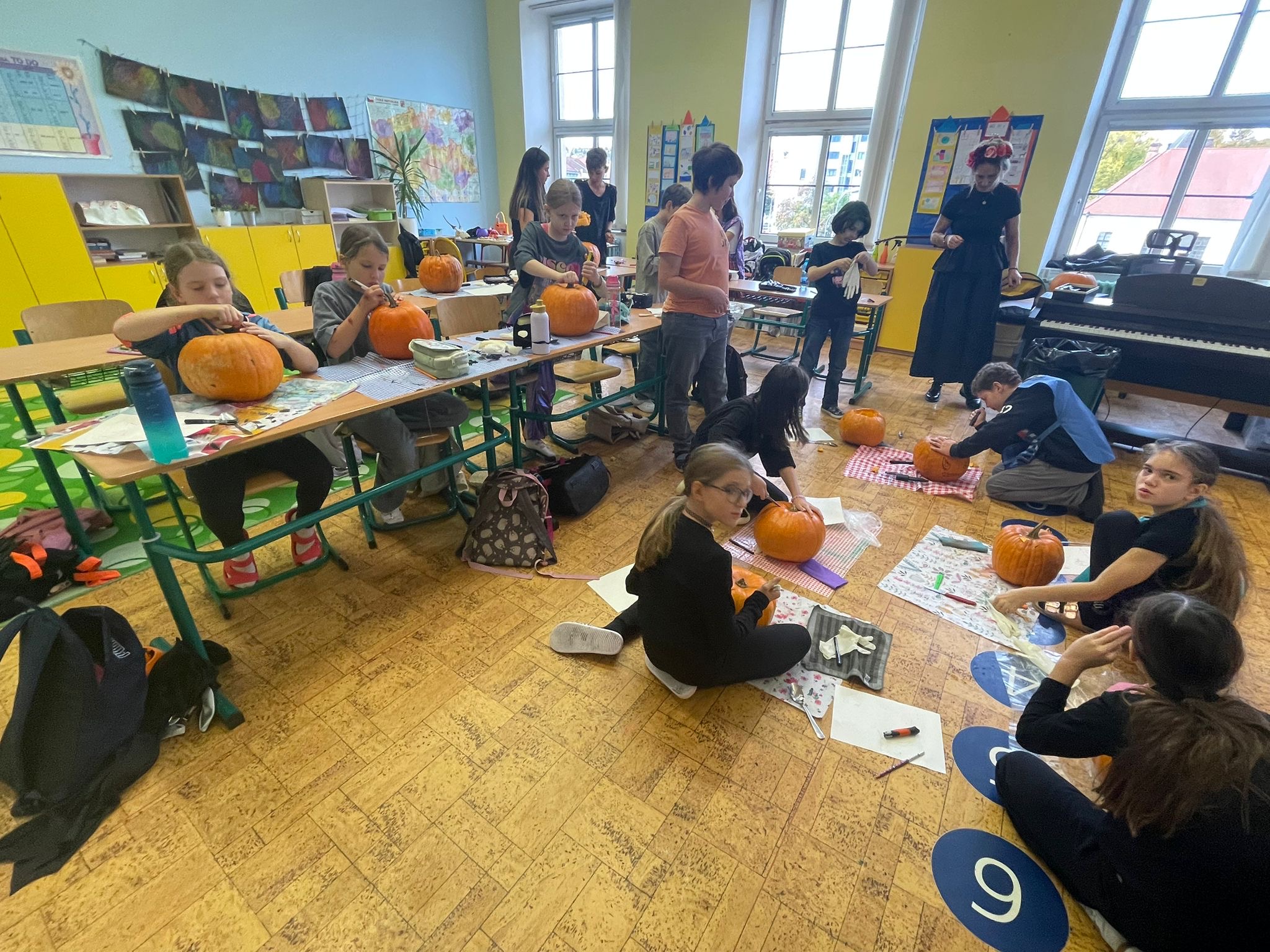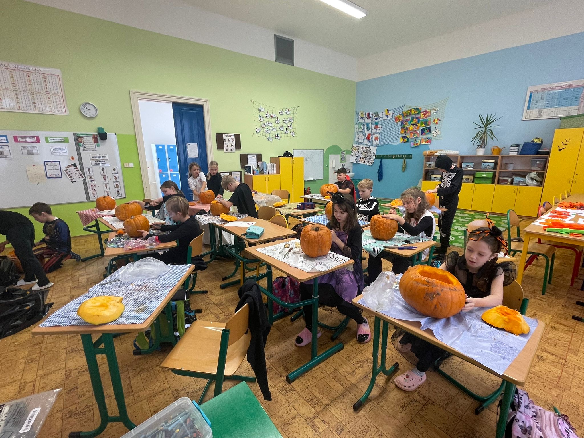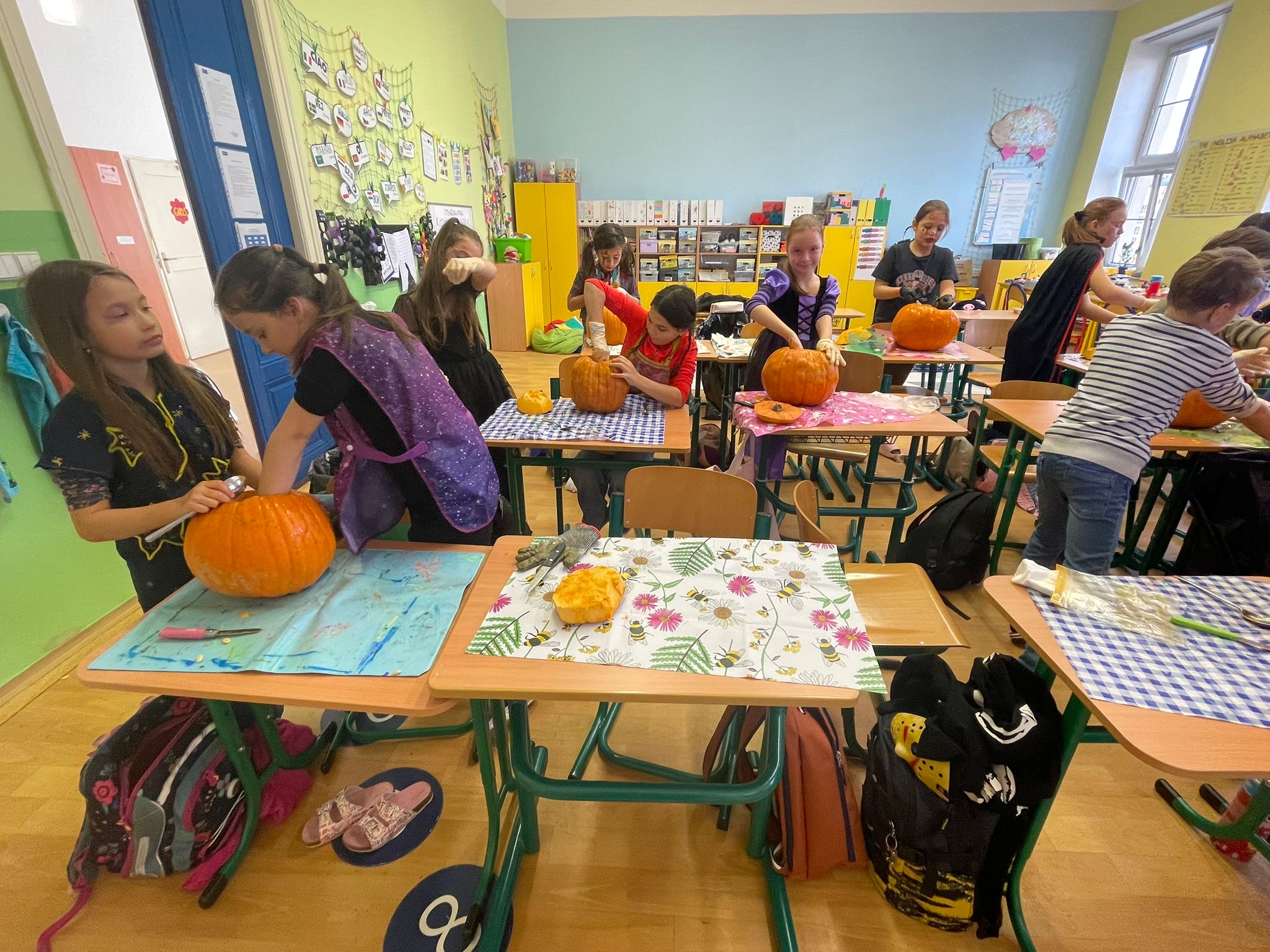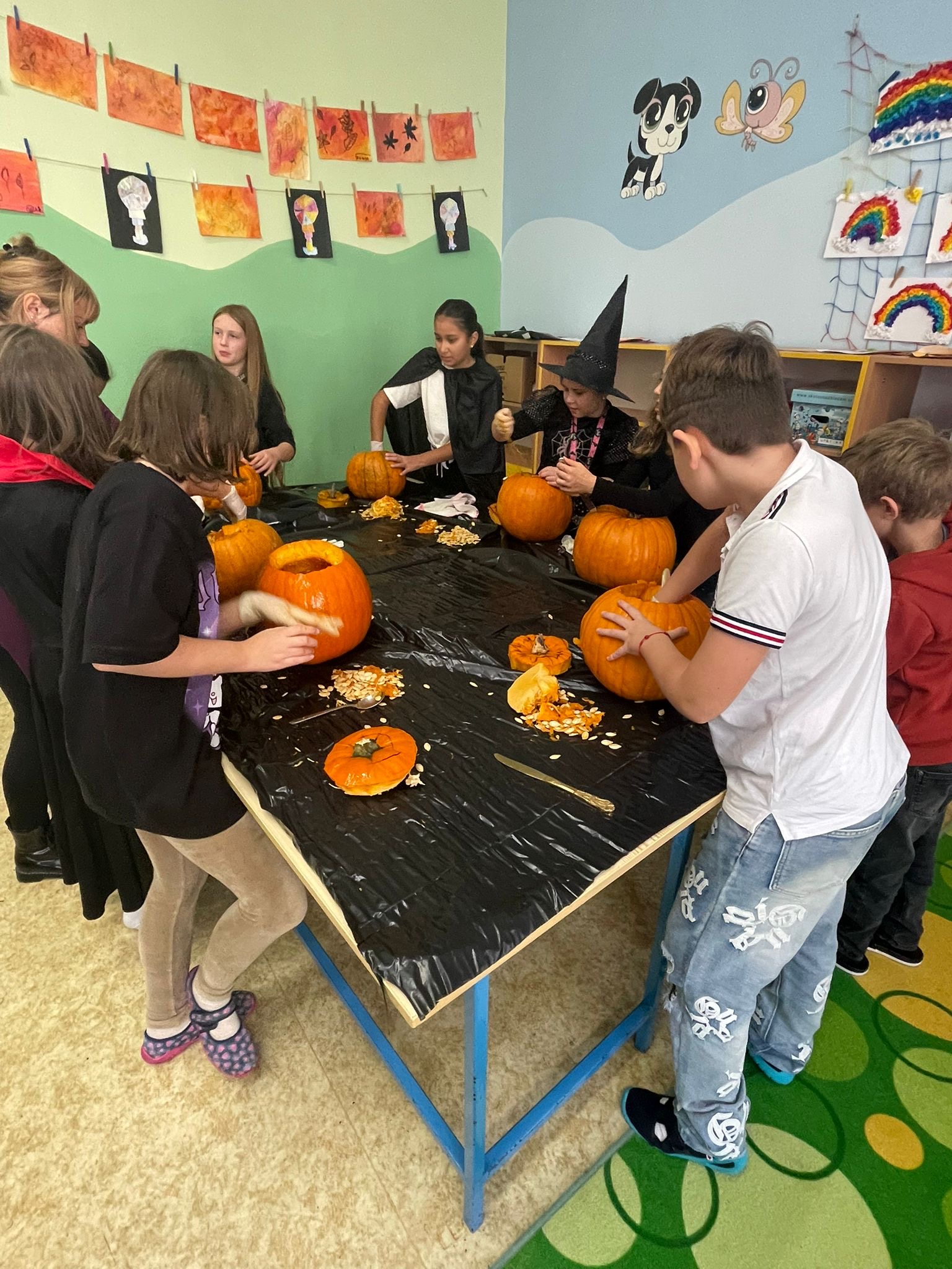 Děti přišly v krásných i děsivých kostýmech, společně dlabaly dýně a objevovaly halloweenské tradice i zvyky. Nechyběly ani tematické hry, smích a spousta tvoření.