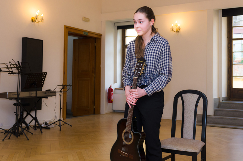 Rozalia Ella Komárková (7. r.) přednesla na kytaru milostnou skladbu Romace d´Amour anonymního skladatele. Rozalia Ella je studentkou z kytarové třídy p. učitele Tomáše Pohla.