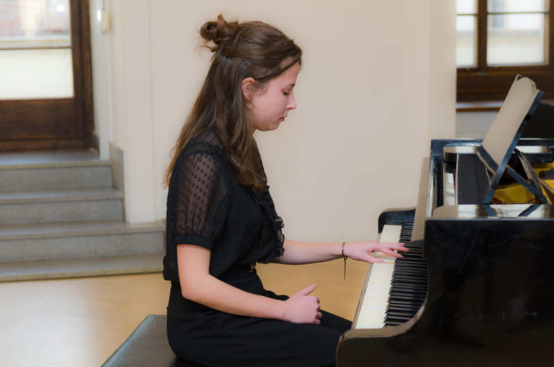 Daniela Vašínová (7. r.) hrála na klavír skladby Je te laisserai des mots Patricka Watsona
