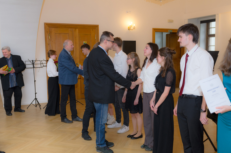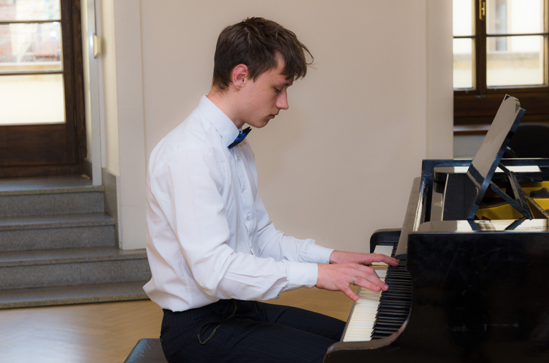 Jakub Houška (4. r. II. st.) hrál na klavír ragtime ze série her Super Mario World Kóji Kondo Ending Theme. Jakub studuje hru na klavír v klavírní třídě p. učitele Marka Paľi.