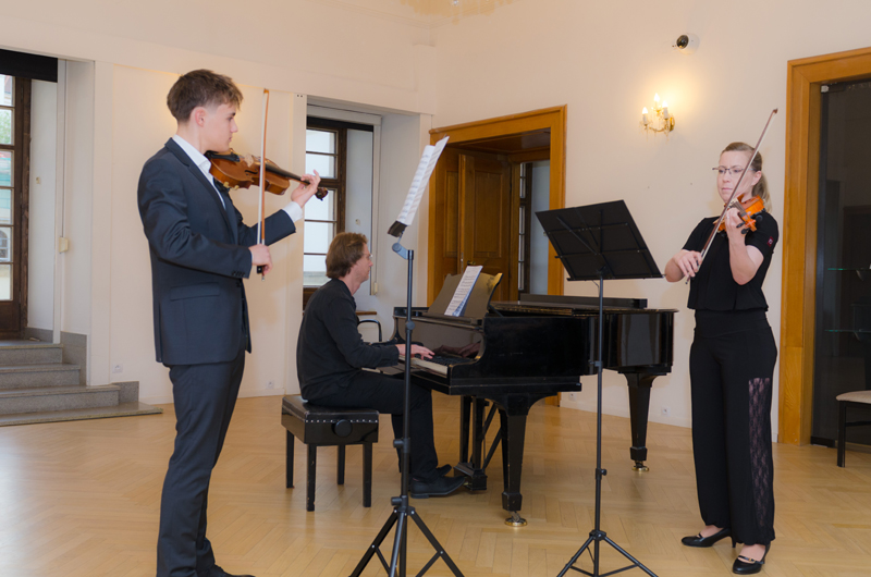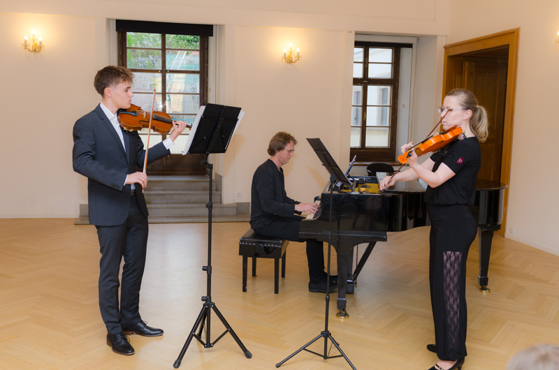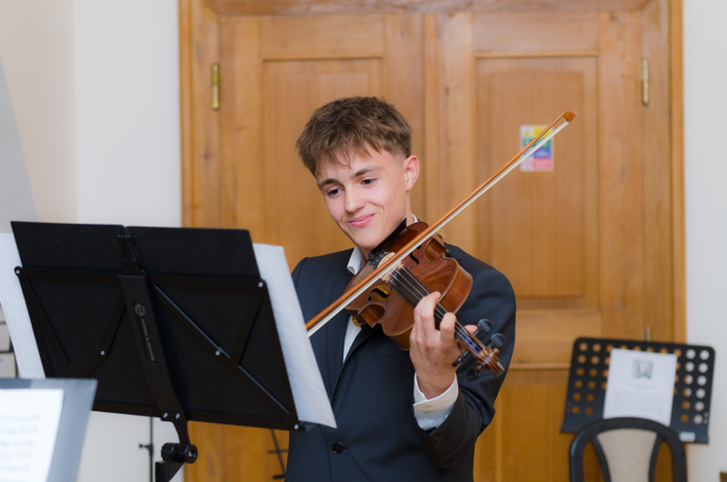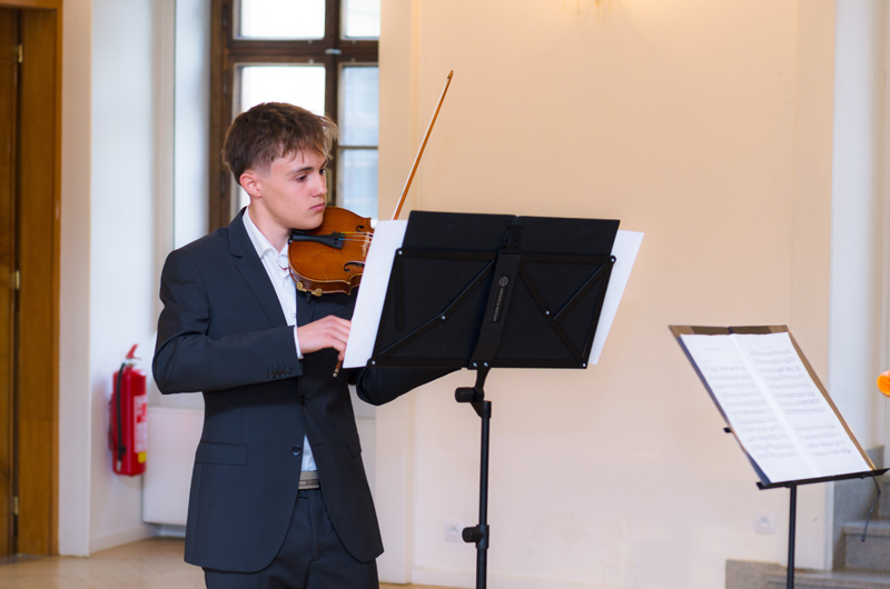 Štěpán Vašíček (4. r. II. st.) hrál na housle v houslovém duu se svou p. učitelkou Klárou Zbytovskou Koncert pro dvoje housle a moll, 1. větu Antonia Vivaldi, s klavírním doprovodem p. Marka Paľi. Štěpán studuje hru na housle u p. učitelky Kláry Zbytovské.