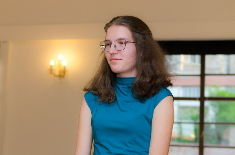 Magdaléna Mohaplová (7. r.) hrála na klavír poetickou skladbu Ludovica Einaudi Nuvole Bianche. Magdaléna je studentkou z klavírní třídy p. učitele Marka Paľi.