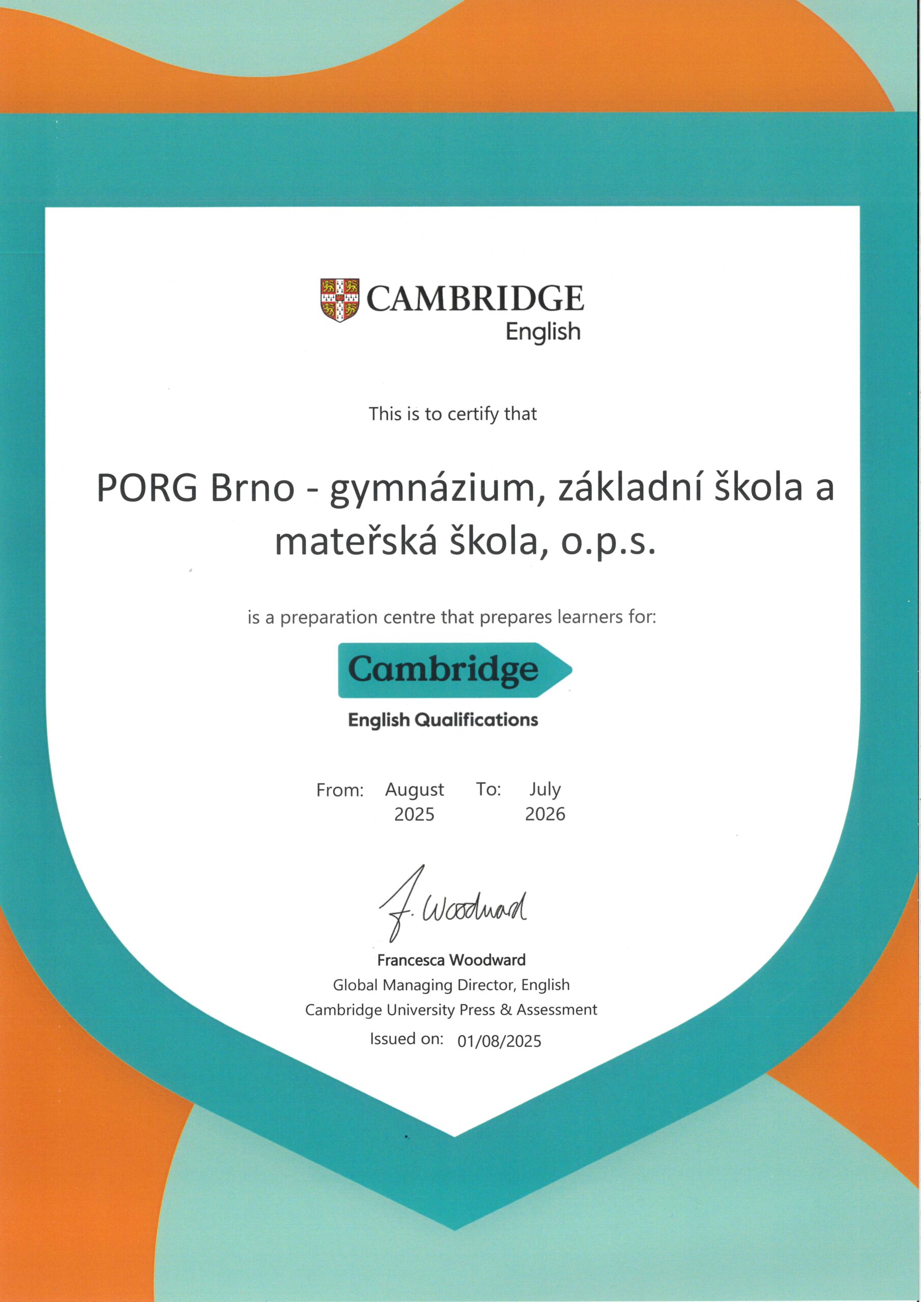 Naše škola každým rokem připravuje studenty na složení zkoušek pro získání certifikátu Cambridge z angličtiny a pomáhá také studentům, kteří se na zkoušky hlásí. Naši studenti v různých ročnících skládají nejčastěji zkoušky na úrovni B1, B2 a C1.
