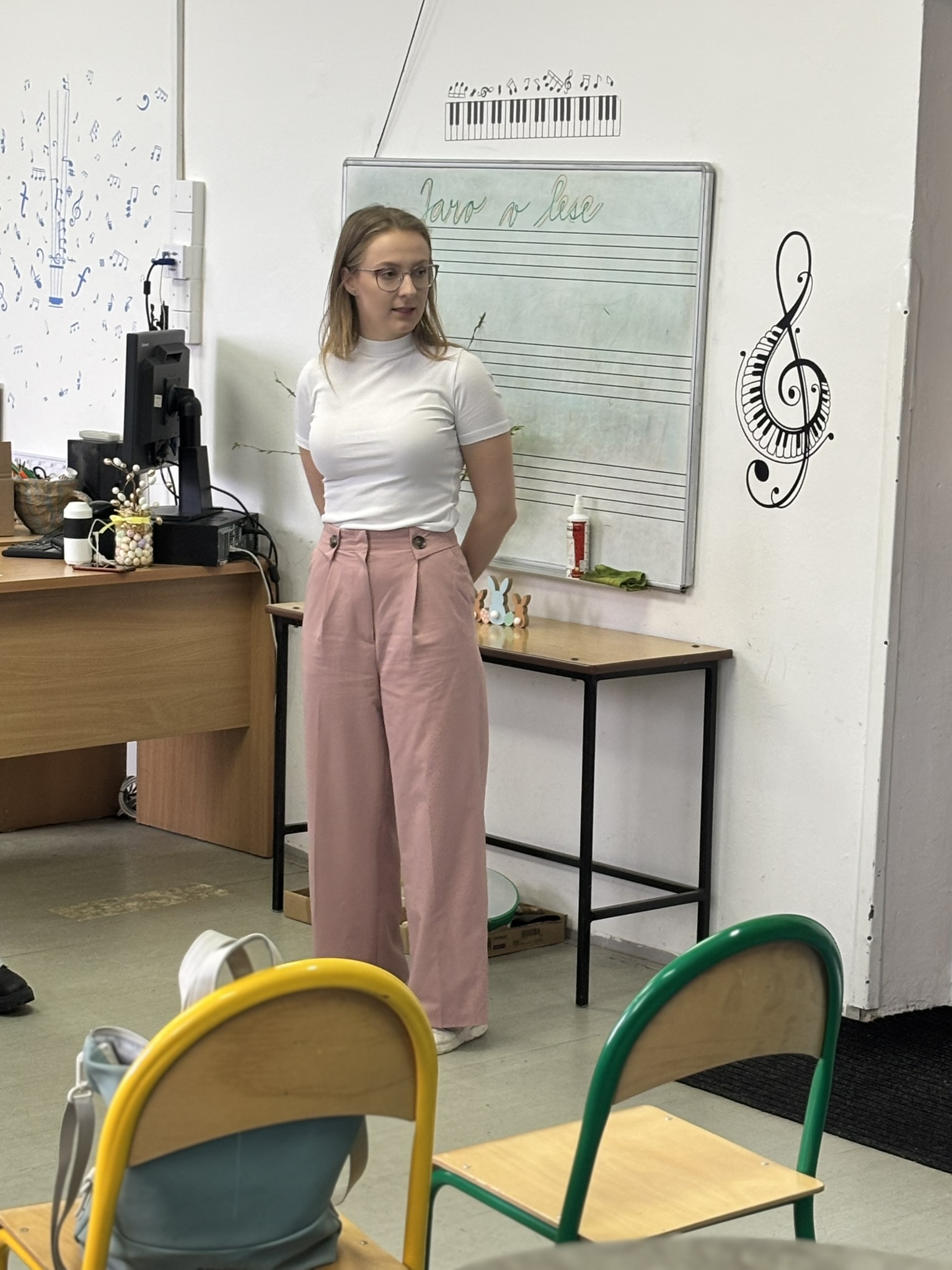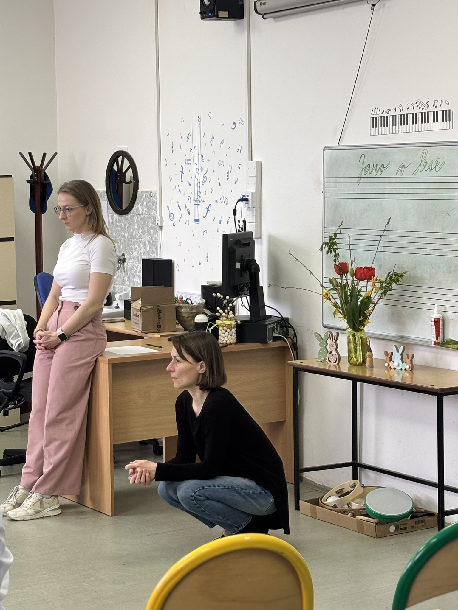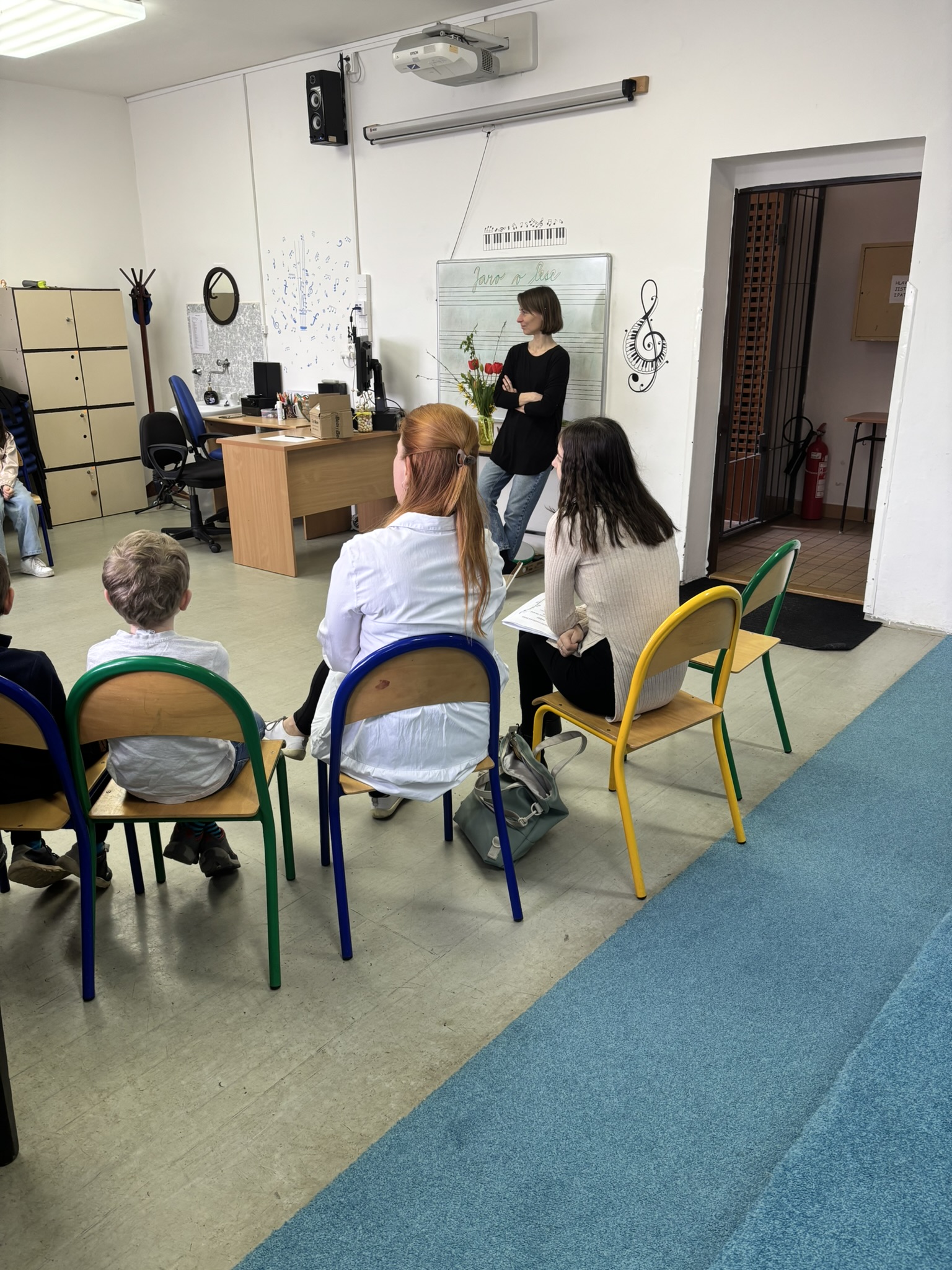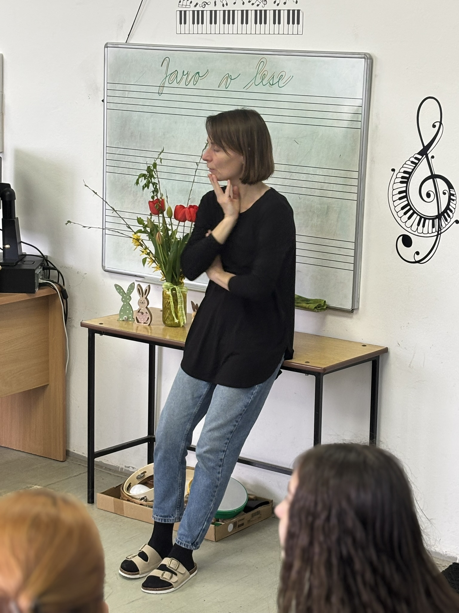 Po krátké aktivizační rozcvičce jsme se společně vydali na pomyslnou cestu do lesa. V jeho atmosféře jsme se zaposlouchali do skladby Petr a vlk od Sergeje Prokofjeva a povídali si o tom, co vše lze na jaře v přírodě vidět a slyšet.