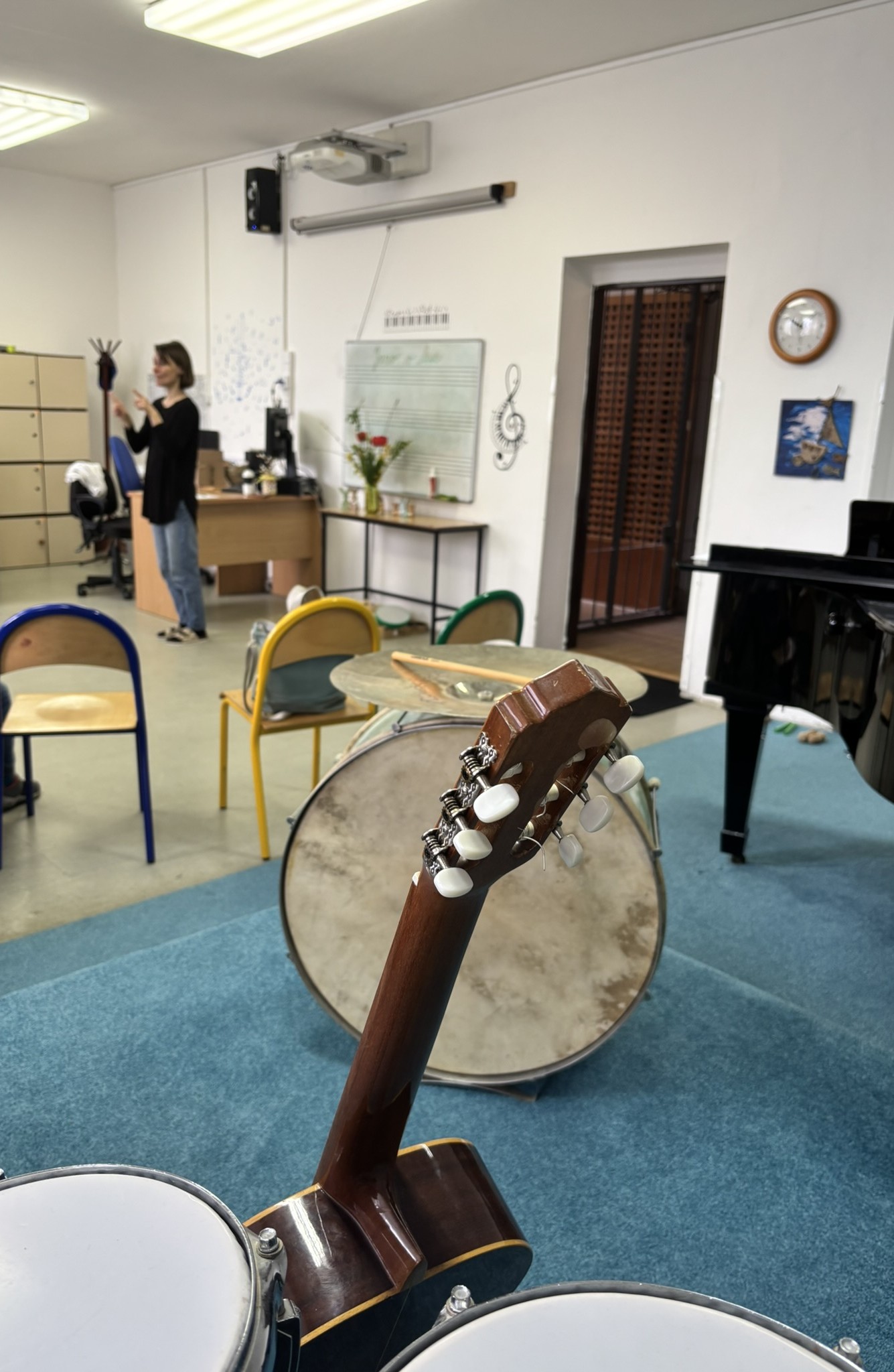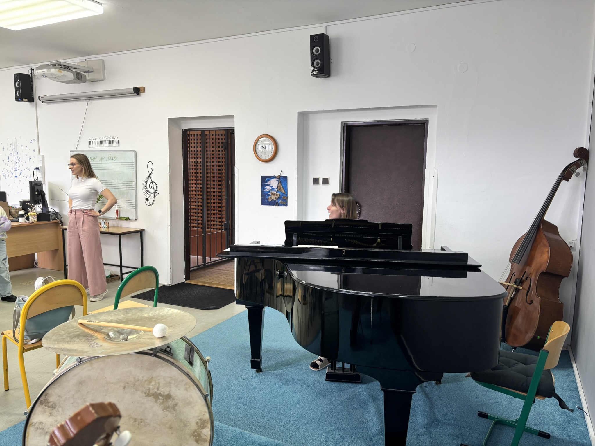 Děti měly zároveň jedinečnou možnost seznámit se zblízka s různými hudebními nástroji, nakouknout „pod pokličku“ koncertního křídla, na které si mohly i zahrát. Vyzkoušely si kontrabas, kytaru i housle a zblízka si prohlédly také cimbál. Pro mnohé z nich to byla první příležitost držet tyto nástroje v ruce a poznat jejich zvuk nejen poslechem, ale i na vlastní prsty.