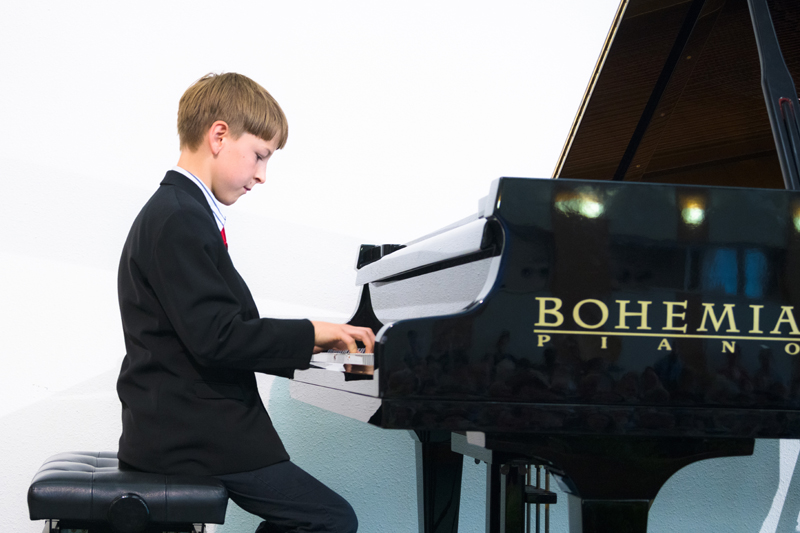 Antonín Donáczi (4. r., žák p. učitele Josefa Javory) hrál na klavír Bourrée in D minor J. S. Bacha.