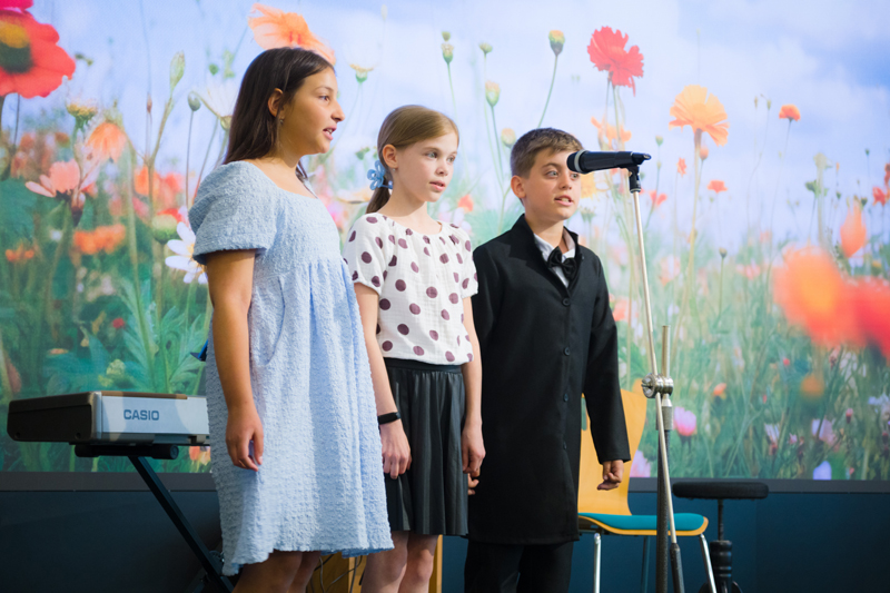 Tereza Chmelařová (2. r.) zpívala písničku Měla jsem milého parukáře, Eliška Vavříková (3. r.) a Adam Ungár (2. r.) zpívali písničku J. Uhlíře Nám se stalo něco překrásného, se zpěvními vstupy Terezy Chmelařové, která ještě přidala písničku Zlaté střevíčky V. Dubského. Individuální i kolektivní interpretaci této mladé pěvecké trojice pěvecky vede p. učitelka Monika Vávrová Filová.
