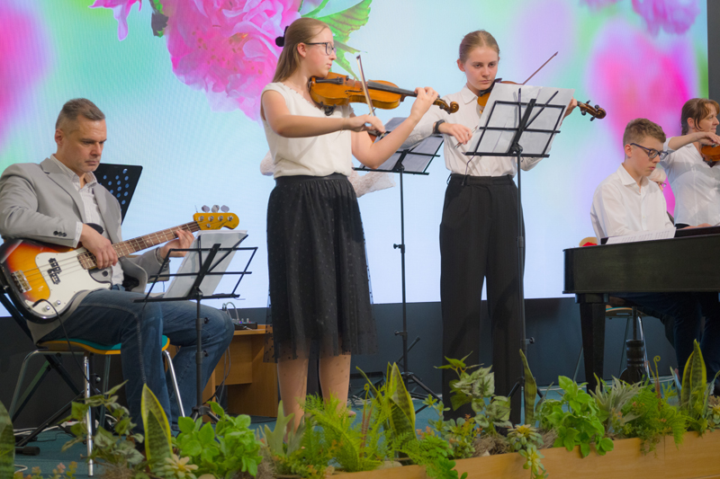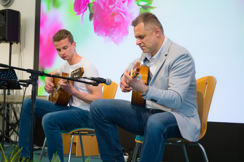 Světoznámou skladbu S. Wondera Isn´t She Lovely hrál na kytaru Adam Štěpek (3. r. II. st.) v souhře se svým p. učitelem Daliborem B. Hanuskem, který jej také doprovázel na kytaru.