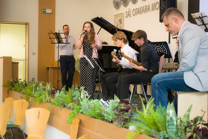 Svým krásným hlasem zpívala píseň Leoše Janáčka Záře od milého a populární Never Enough The Greatest Showman, s klavírním doprovodem Marka Paľi, Klaudie Růžičková (6. r., žákyně p. učitelky Moniky Vávrové Filové).
