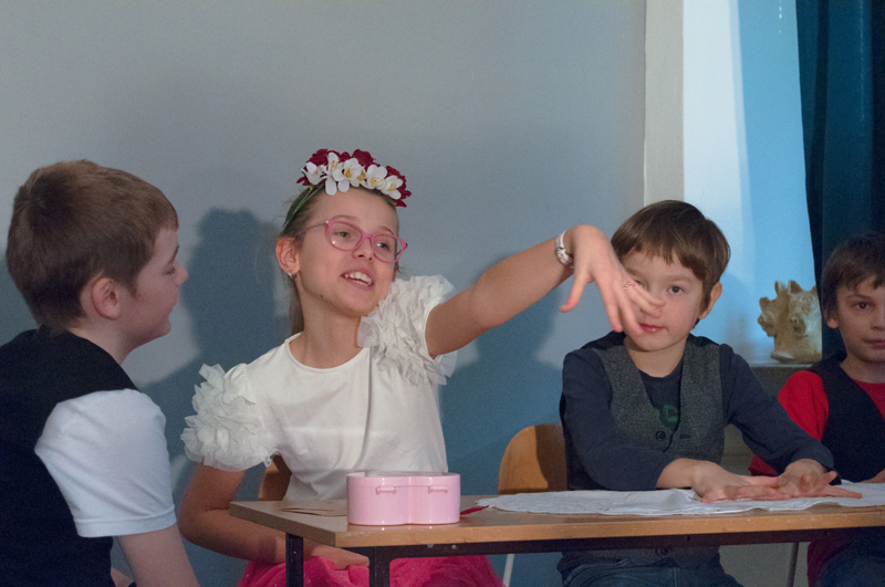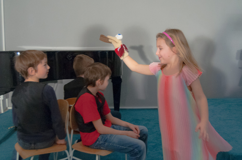 a princeznou Květuškou. Skřítky Tyce, Pice a Ryce si zahráli chlapci Vít Gelnar, Lukáš Janíček a Filip Jedlička. Dívky Kristýna Zemanová, Michaela Harničárová, Caroline Plšková a Lea Kořínková se představily v rolích vypravěčky, princezny, dvorní kuchařky, lesních zvířat a rovněž jako rodiny skřítků. Nechyběla ani hra s loutkou - poštovním ptáčkem (jednoduchý mupet) - divadelní dovednost, se kterou se děti v tomto roce seznamují. Příběh jarního představení vznikl plně z nápadů dětí a jeho zkoušení jsme si společně moc užili. Diváci rovněž zhlédli nákresy loutek a fotografie ze zkoušení v prvním pololetí. Na další dobrodružství našich hrdinů se můžete těšit na konci školního roku (v připravovaném závěrečném představení).