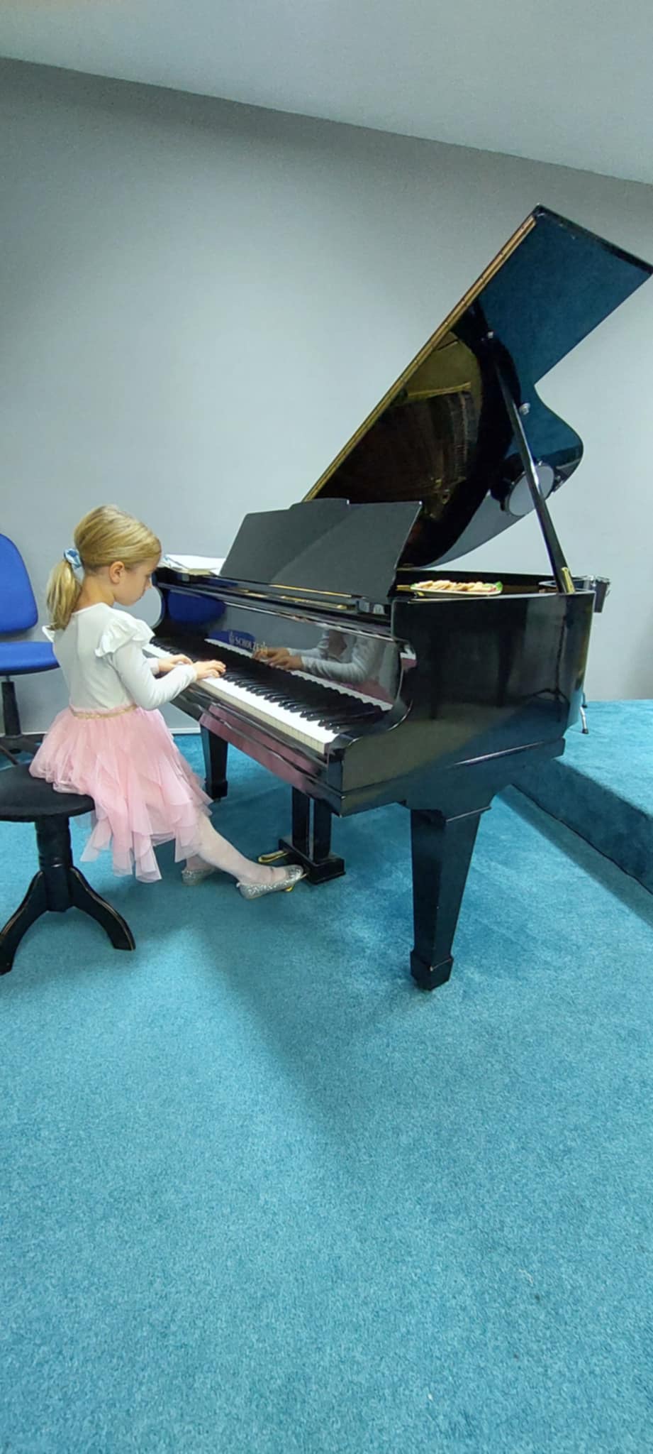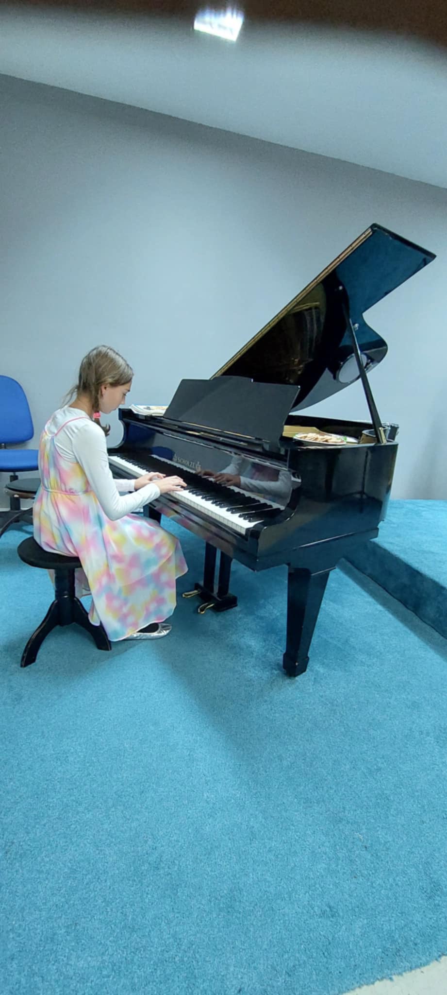 Valerie Dvořáková (1. ročník, II. st.) se pochlubila bezchybným zvládnutím skladby od autora N.R. Fabera s názvem Mořská víla.