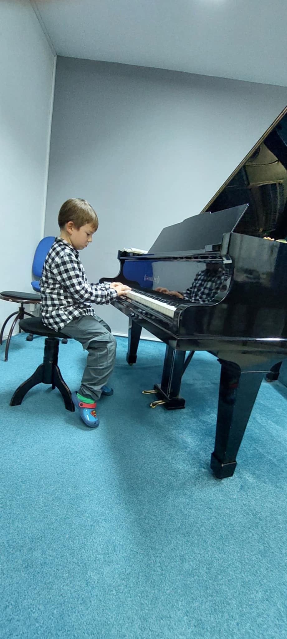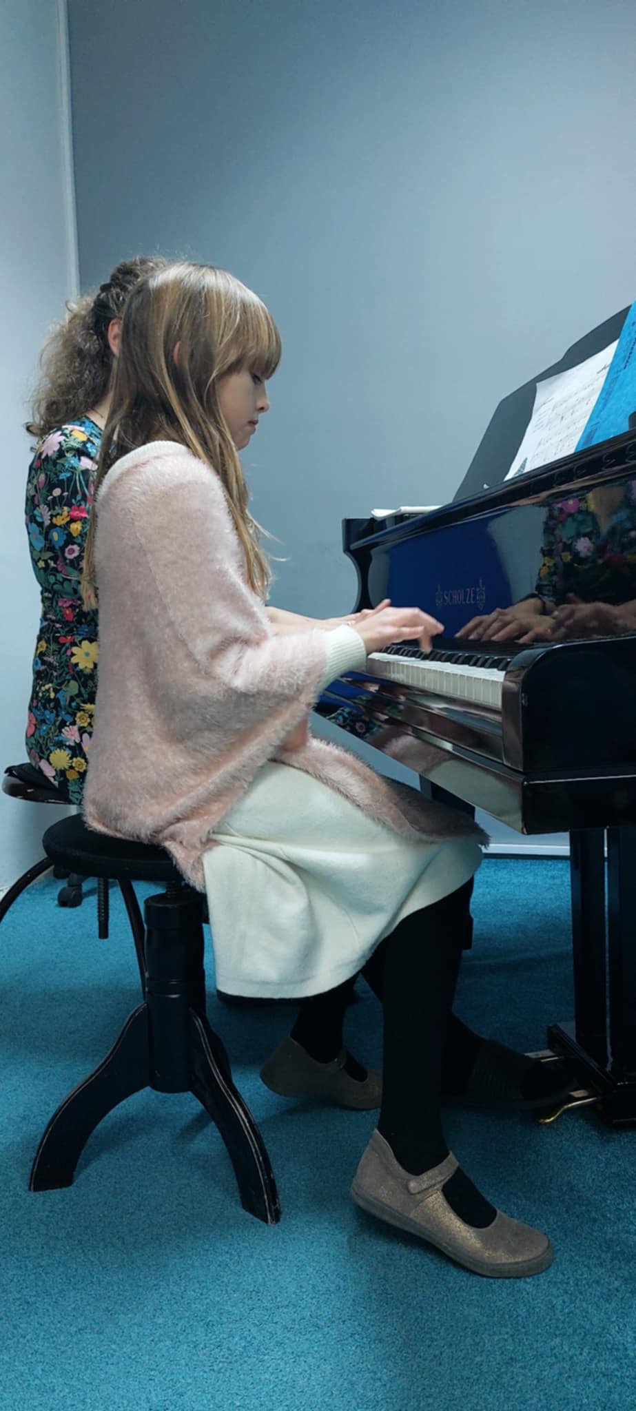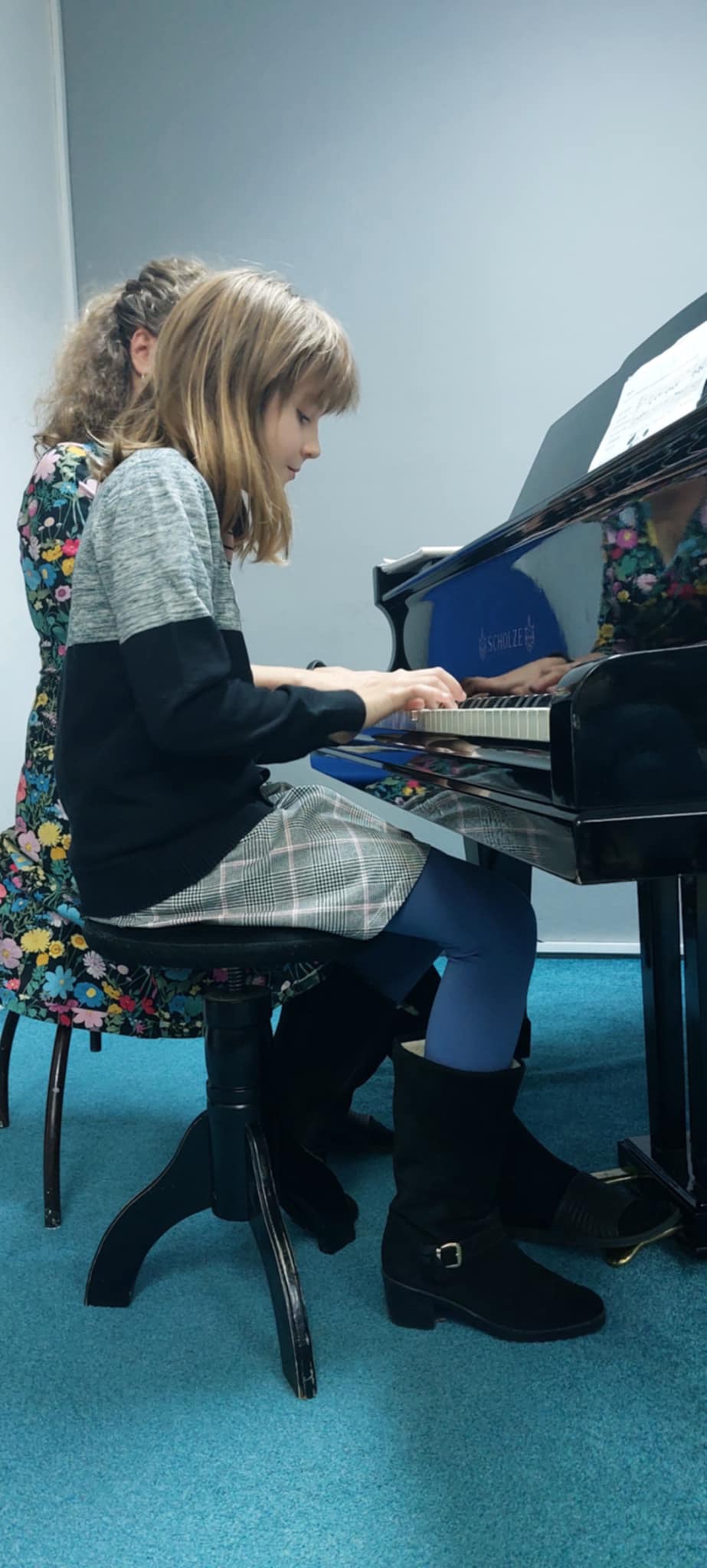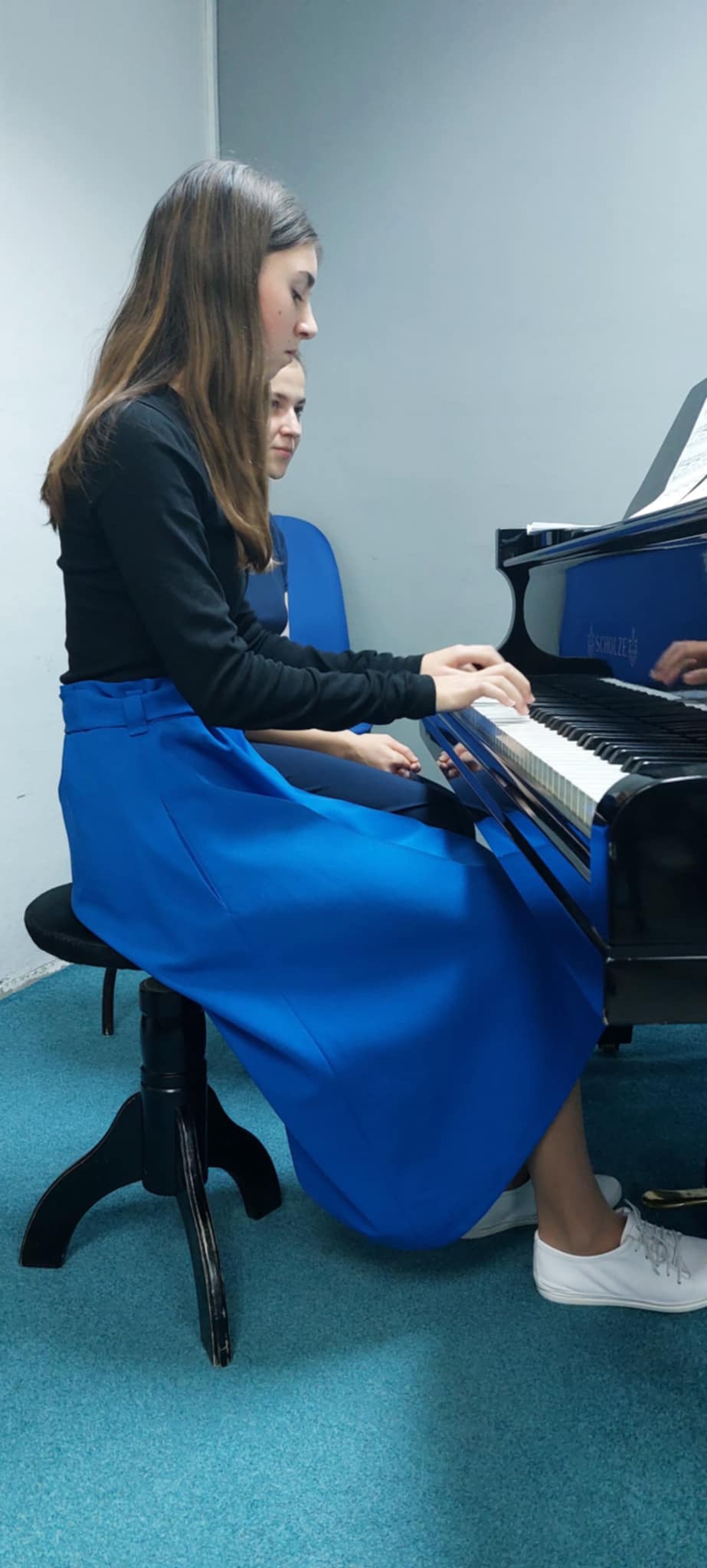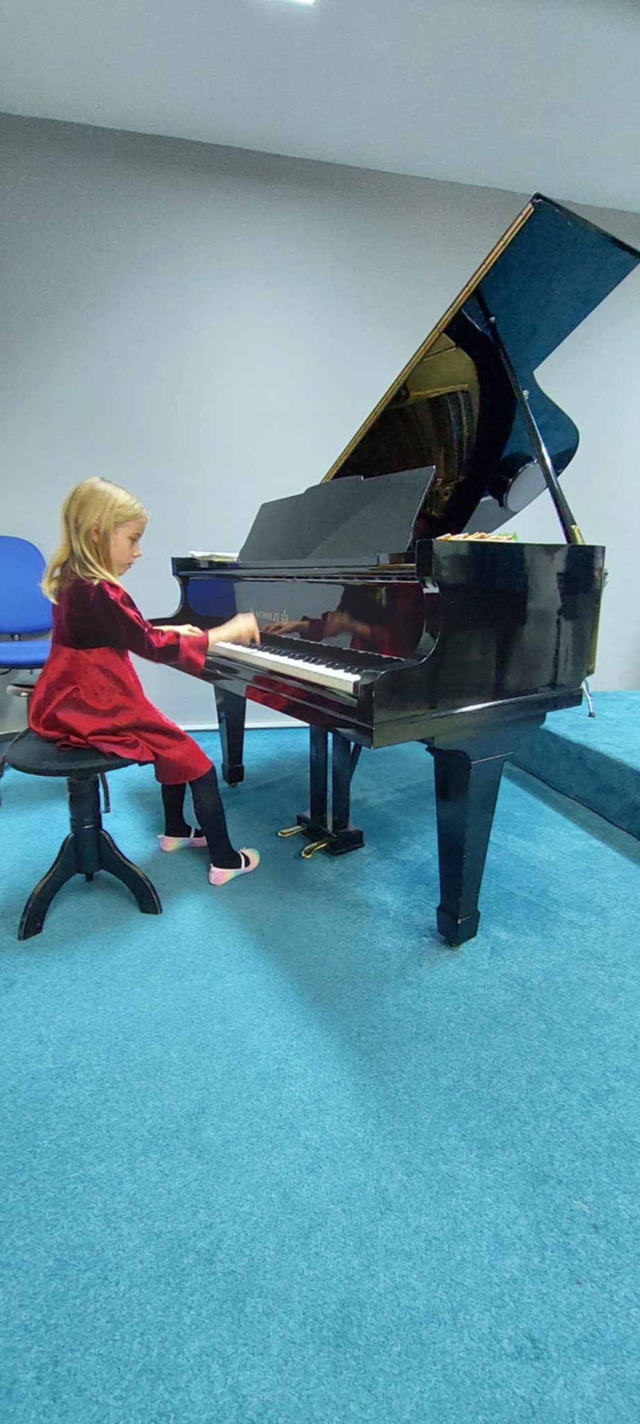 Štěpánka Fojtová (1. ročník) perfektně zvládla hru s pedálem v skladbě Morning Prelude od J. Bastiena.