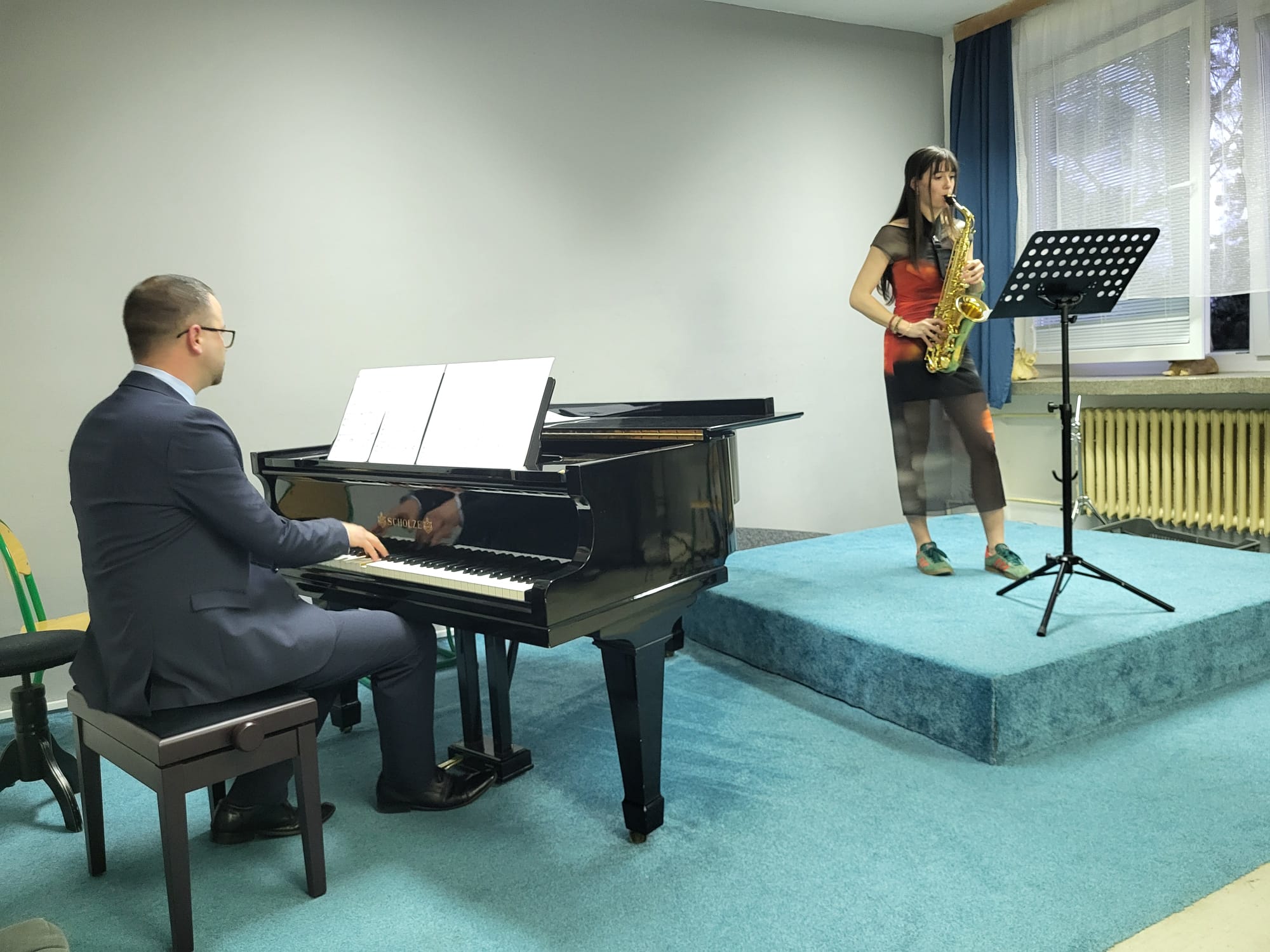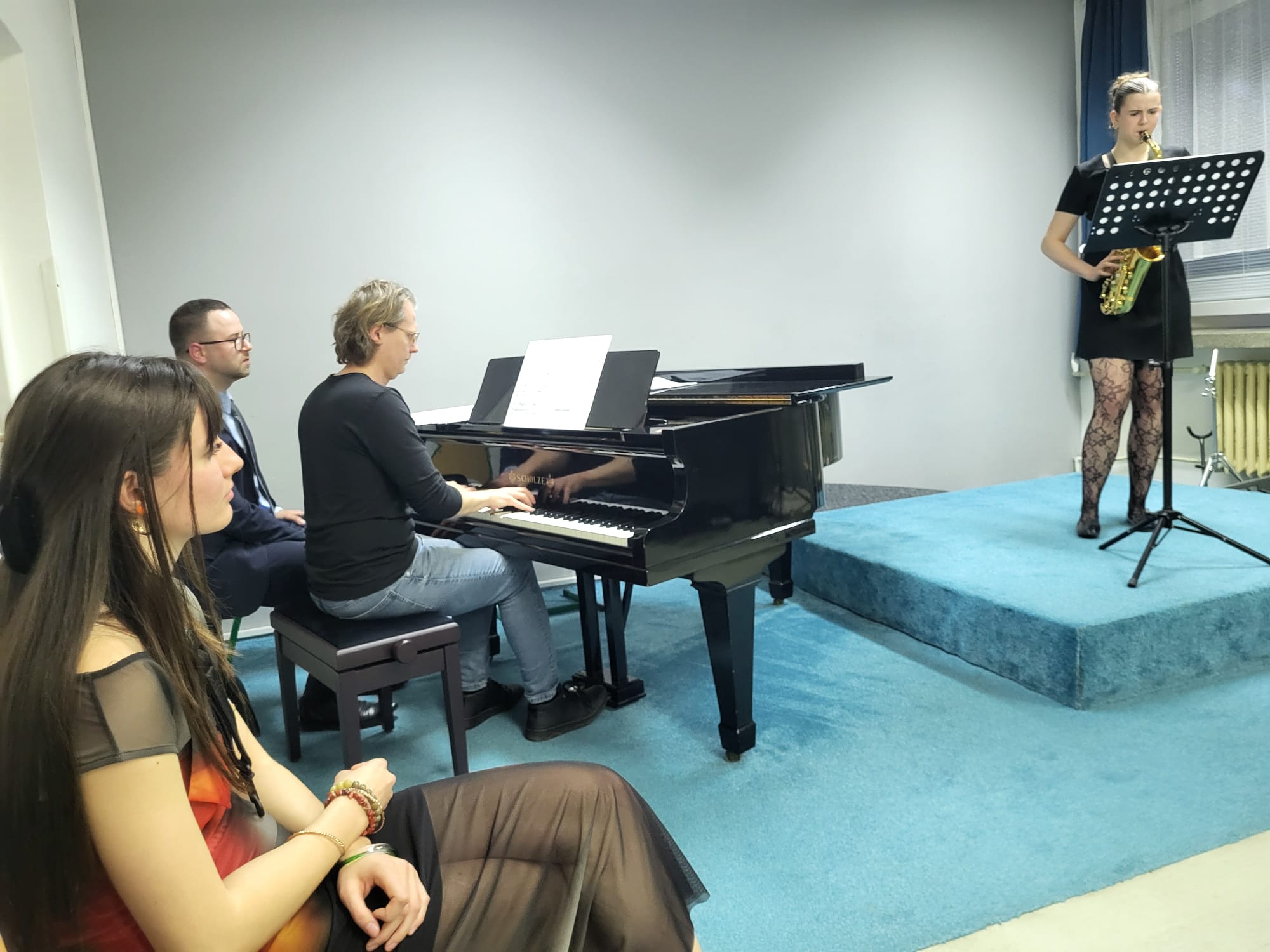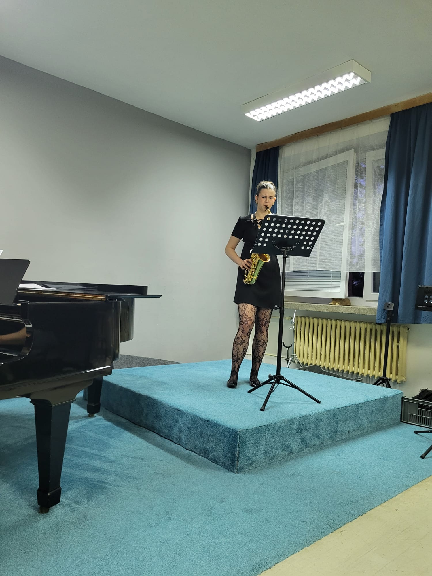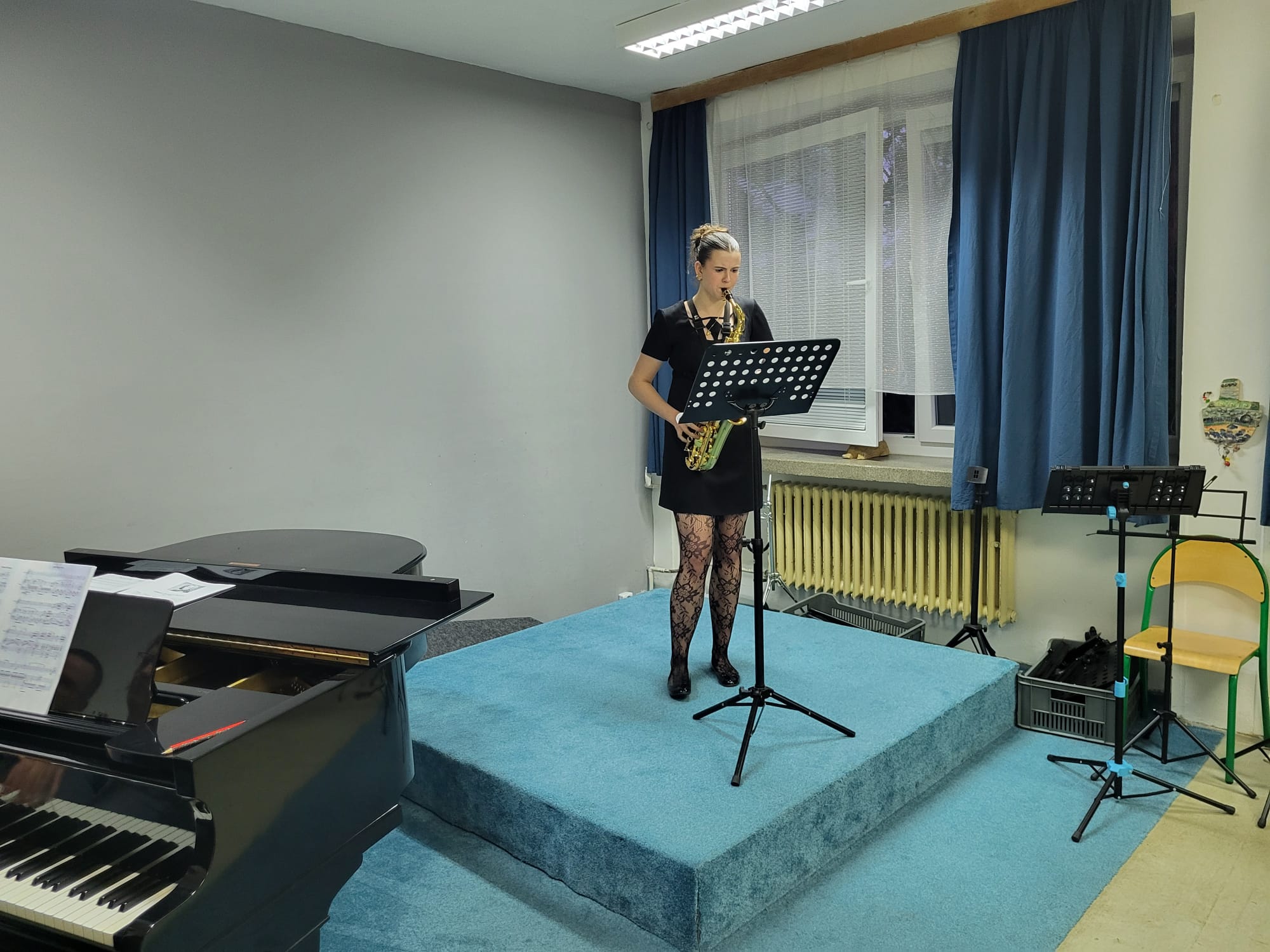 Anna Pichrtová (5. r., hra na saxofon, žákyně p. učitele V. Procházky) hrála skladbu F. Ferrana Baghira.