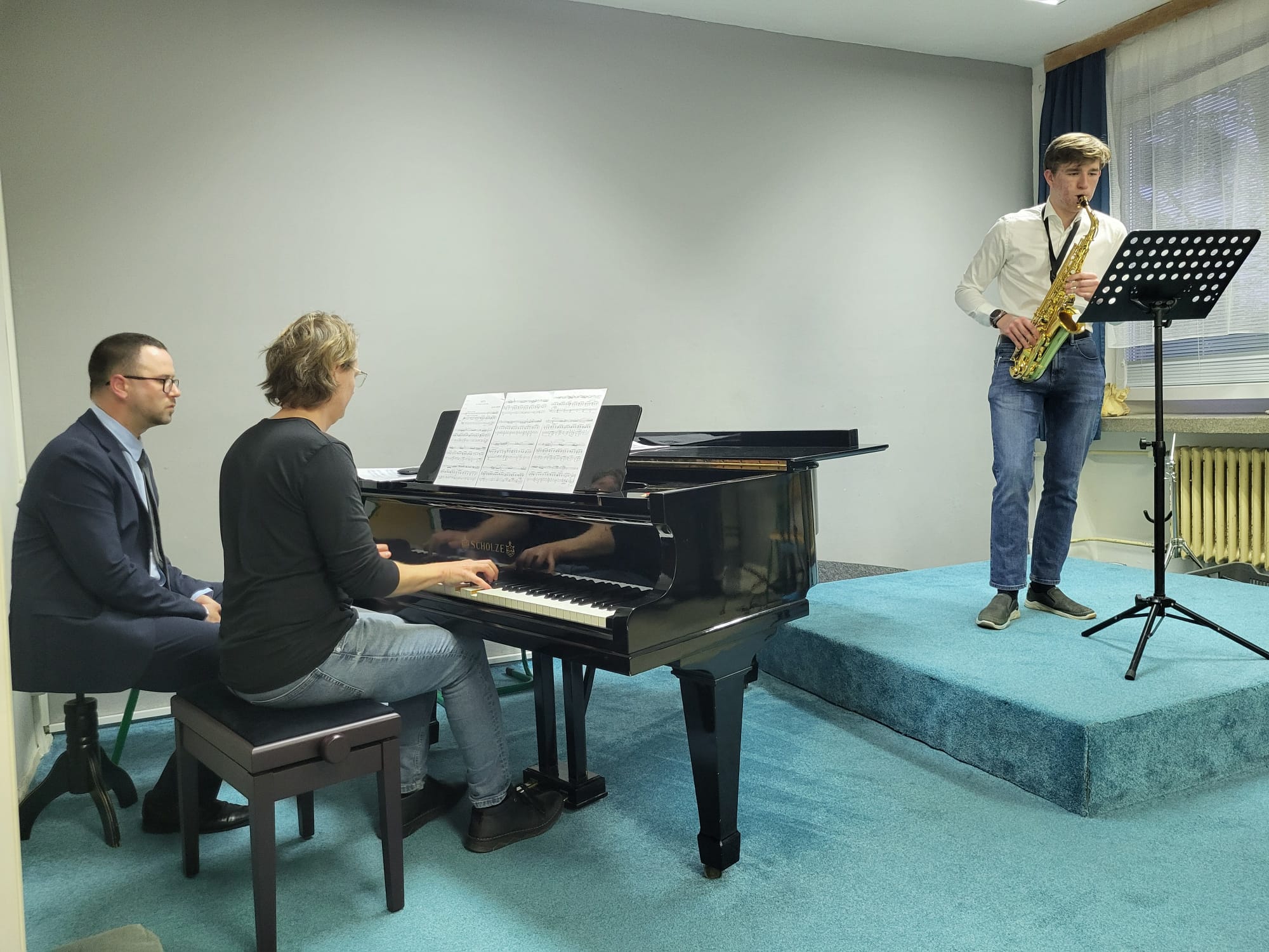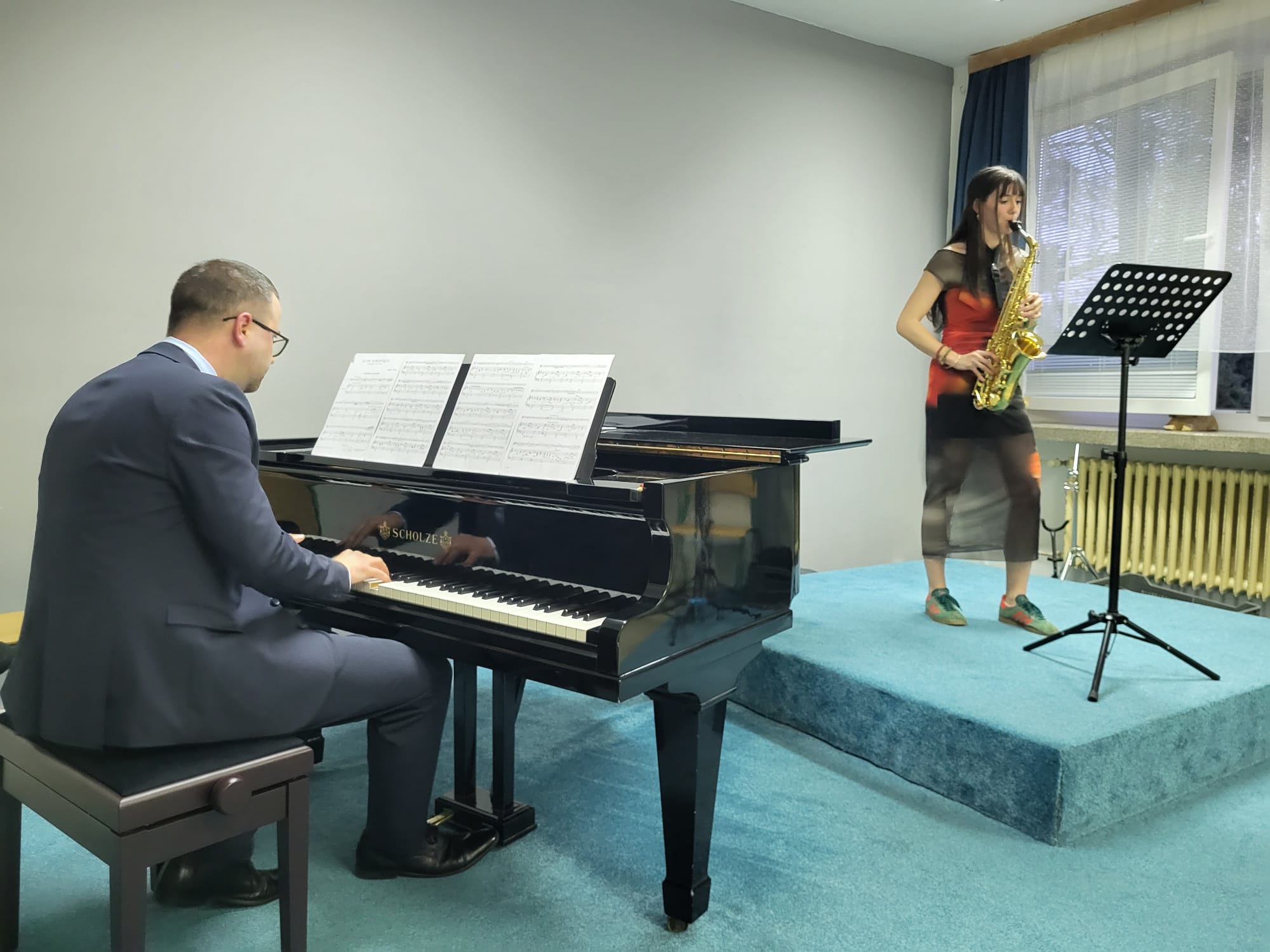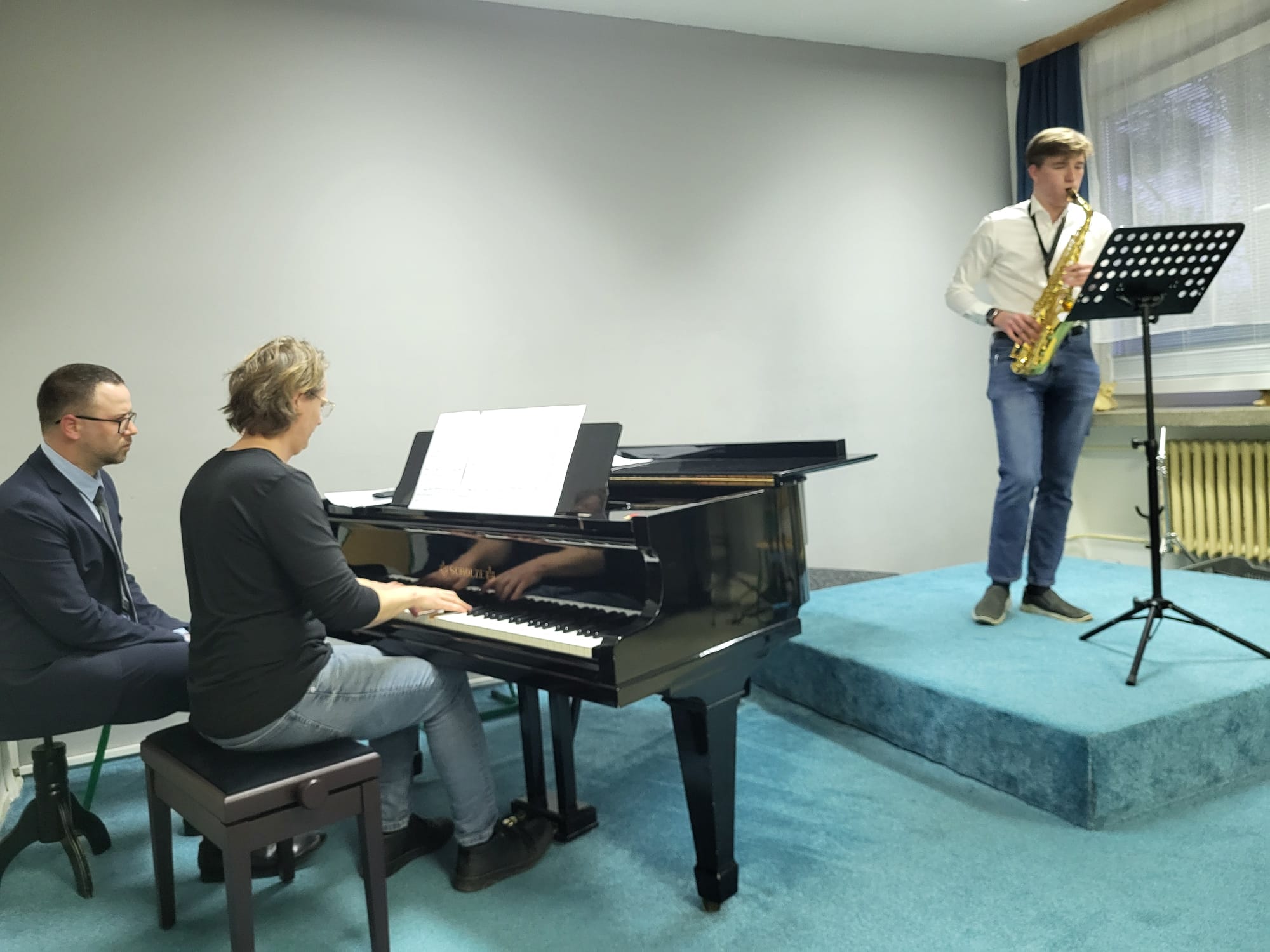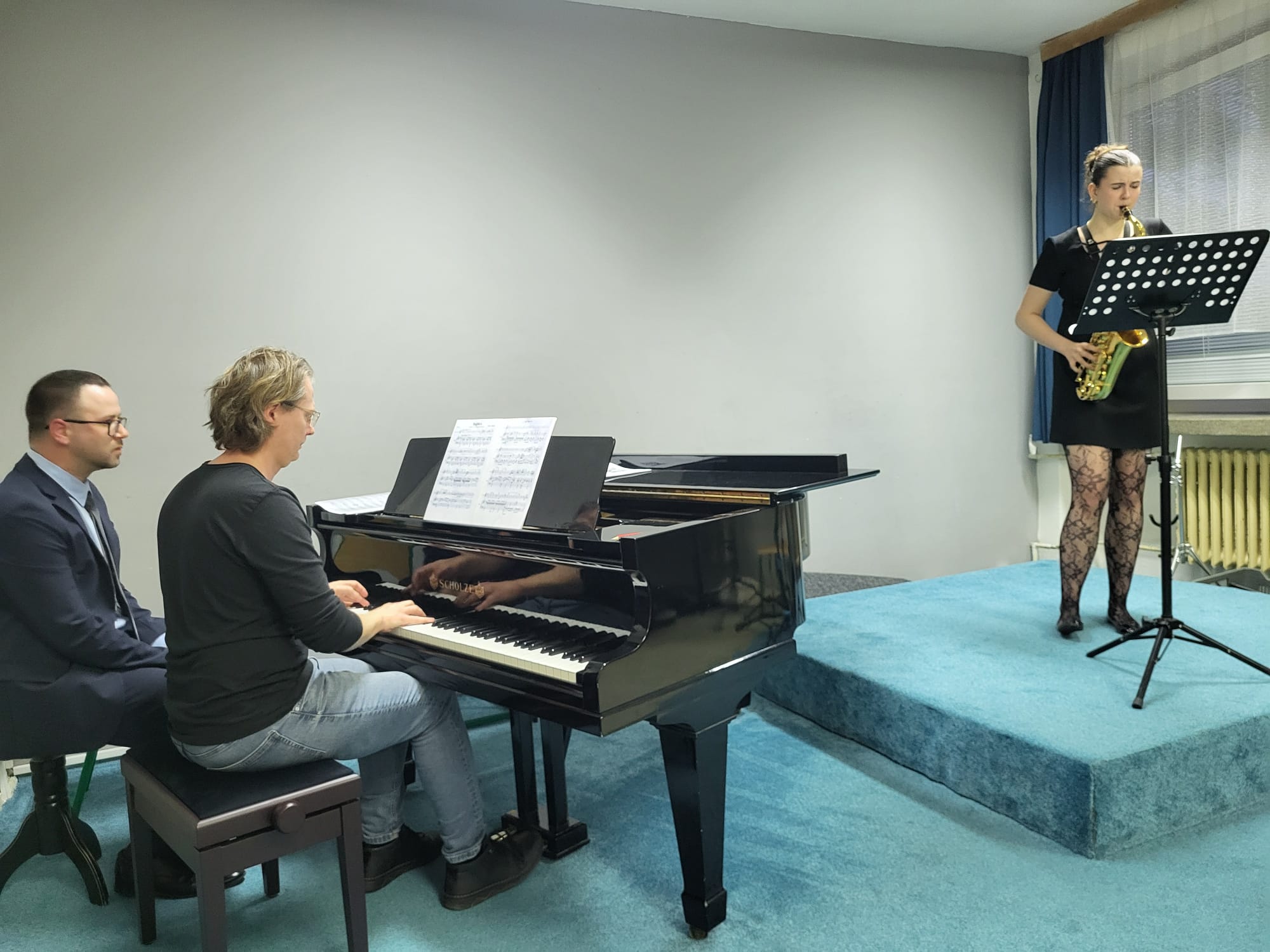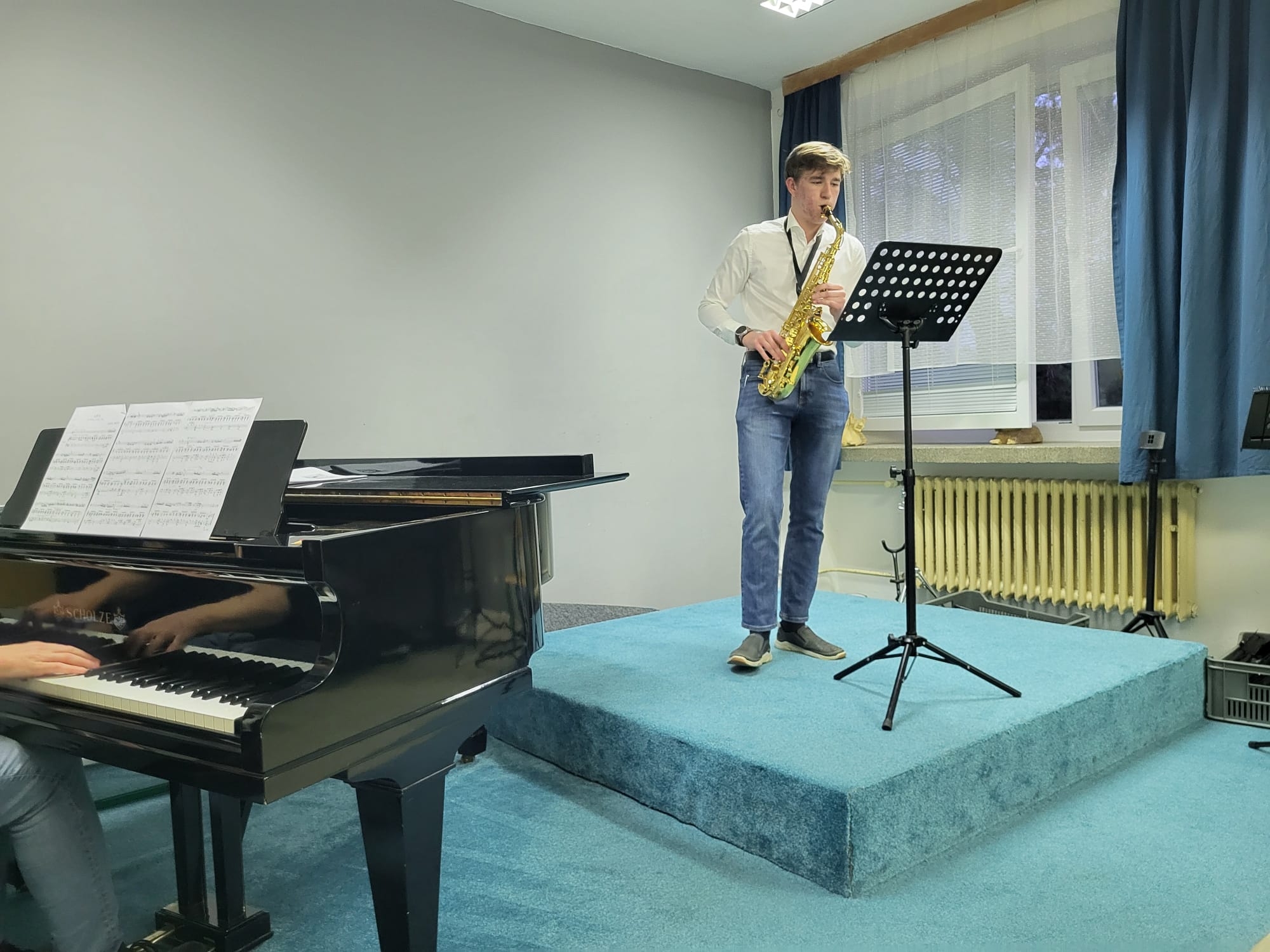 Anna Pichrtová (5. r., hra na saxofon, žákyně p. učitele V. Procházky) hrála skladbu F. Ferrana Baghira.