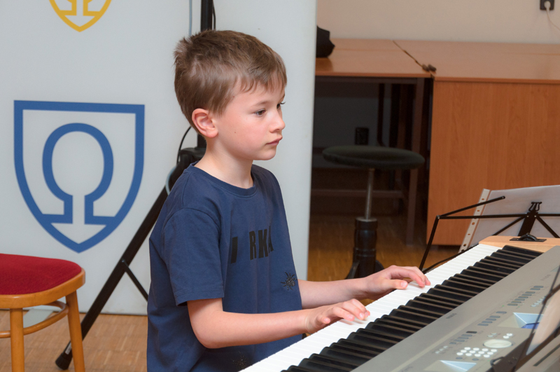 Jiří Mahdalík (1. r., klavír) zahrál na úvod zábavné melodie známých písní. Nejprve Pramen zdraví z Posázaví autorské dvojice J. Uhlíře, Z. Svěráka a píseň od P. Skoumala Když jde malý bobr spát. (Text písně posluchačům s humorem předříkávala Jirkova p. učitelka hry na klavír Marie Burešová.)