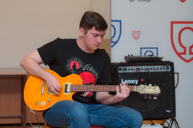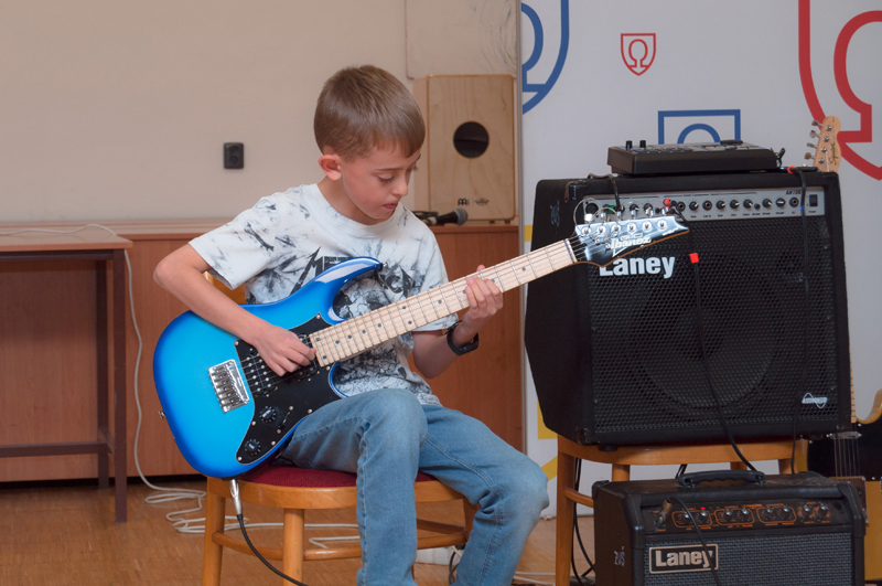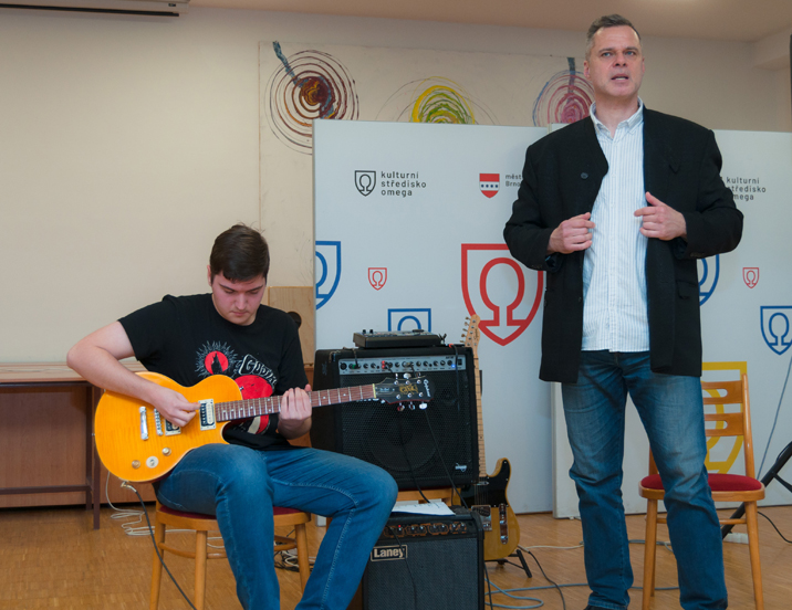 Velmi nadaný mladý kytarista Matyáš Okrajek (2. r., el. kytara) skvěle rozezněl zvuky elektrické kytary ve skladbách The Cream Sunshine Of Your Love a Jimiho Hendrixe Hey Joe. Zvukově podpůrné karaoke a nastavení ozvučení zajistil Matyášův p. učitel Dalibor Brain Hanusek.