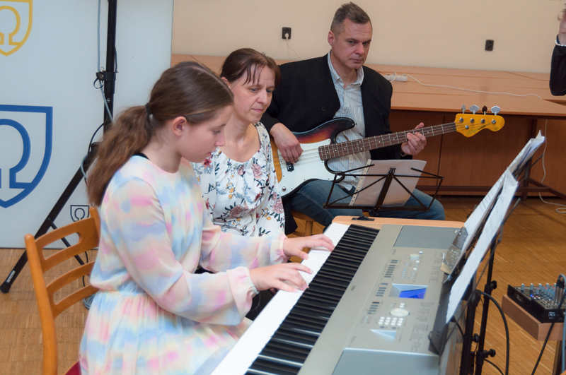 Vítěz krajského kola pěvecké soutěže Karlovarský skřivánek Adam Ungár (2. r., sólový zpěv, žák p. učitelky M. Vávrové Filové) zazpíval lidovou píseň „Muzikanti, co děláte“, kterou zpíval na celostátní soutěži Karlovarského skřivánka v Karlových Varech. Po krátkém interview Adam zazpíval song Tomáše Kluse „Co s touhle šťastnou chvílí“.