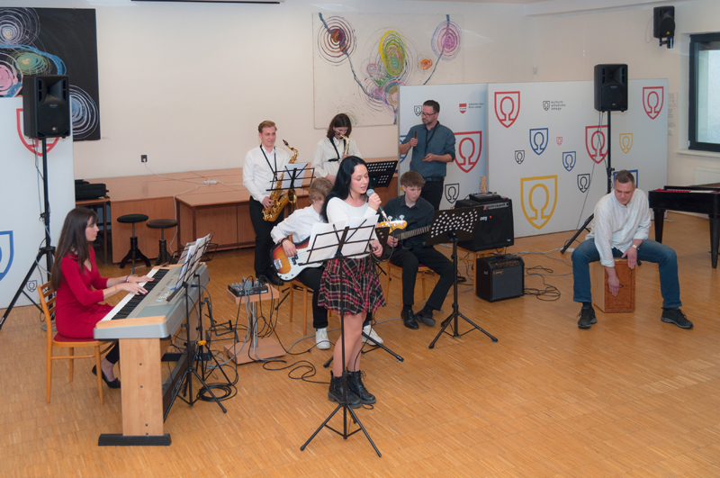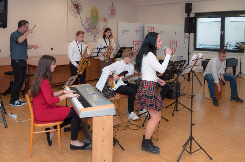 Finále pop koncertu patřilo Kapele populární hudby a zpěvu, umělecky a pedagogicky vedené p. učitelem Vítem Procházkou.