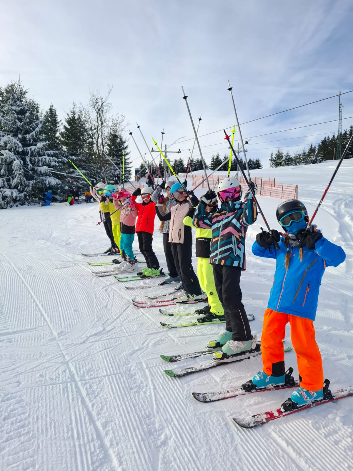 Zvládli jsme se rozřadit do skupin podle lyžařských schopností,posilnili jsme se obědem a odpoledne už probíhal výcvik ve družstvech.