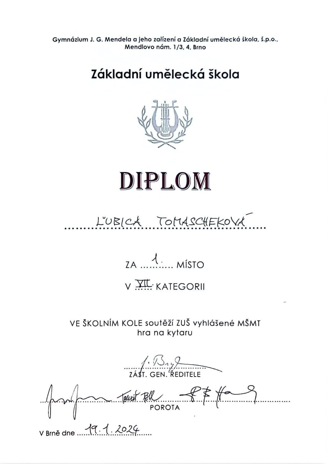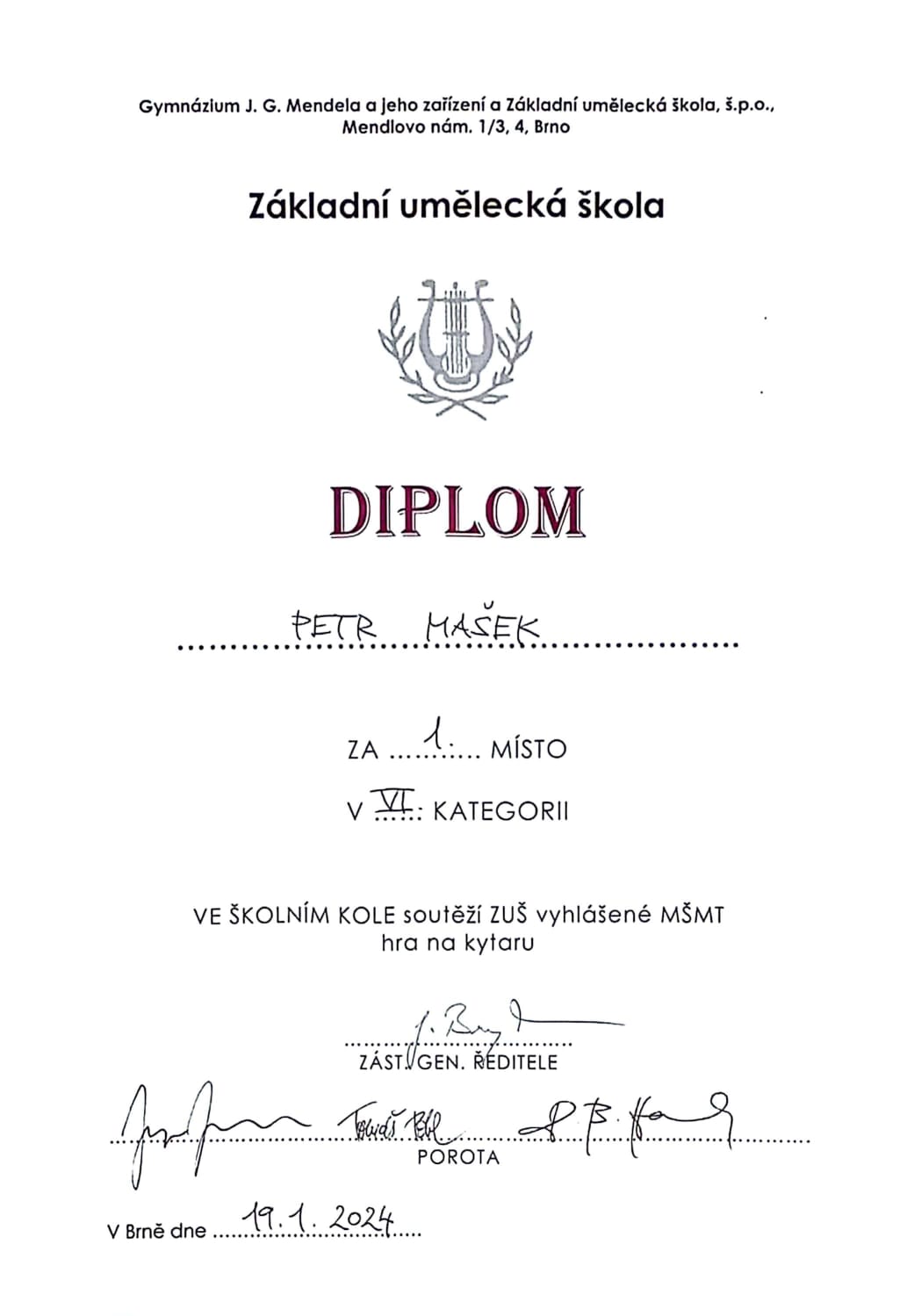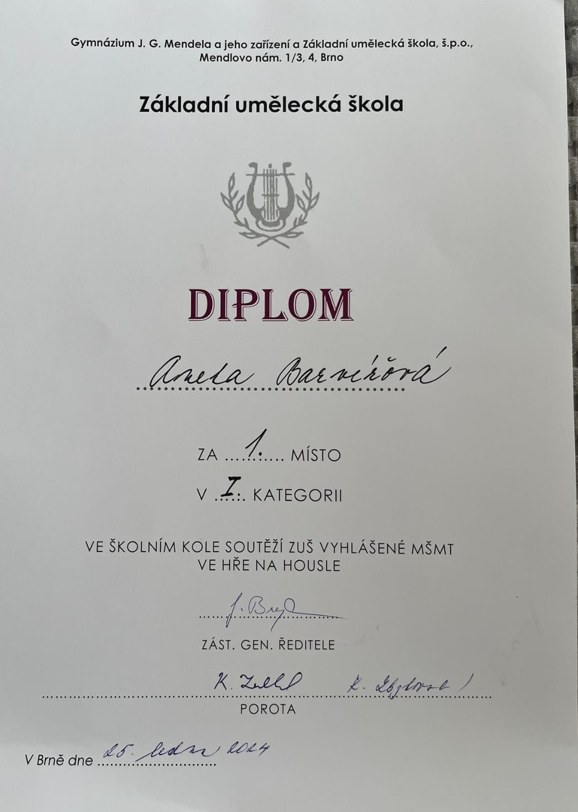 Na přelomu ledna a února se uskutečnili školní kola soutěže hry na strunné a smyčcové nástroje vyhlášené MŠMT pro rok 2024.
