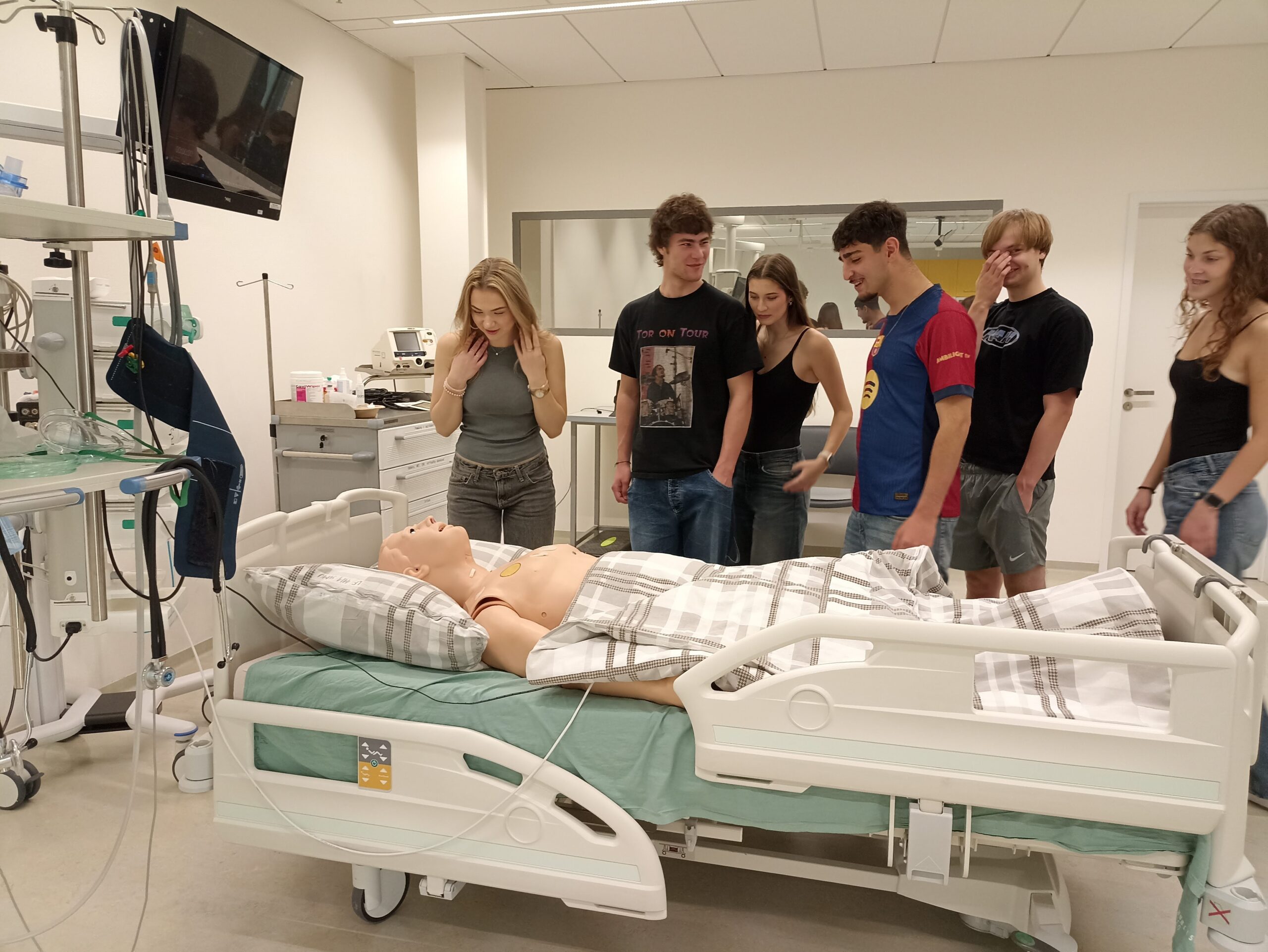 Žáci třídy 3. AM završili letošní výuku biologie člověka návštěvou nejmodernějšího simulačního centra v Evropě, které se nachází v Univerzitním kampusu v Brně. Díky spolupráci s Juniorskou akademií LF MUNI si mohli žáci prohlédnout simulační operační sály, vyzkoušet si některé zákroky a také např. laparoskopickou operaci. Díky výbornému lektorovi si všichni uvědomili, jak náročná je práce lékařů, která vyžaduje nejen odborné znalosti, ale také manuální zručnost.