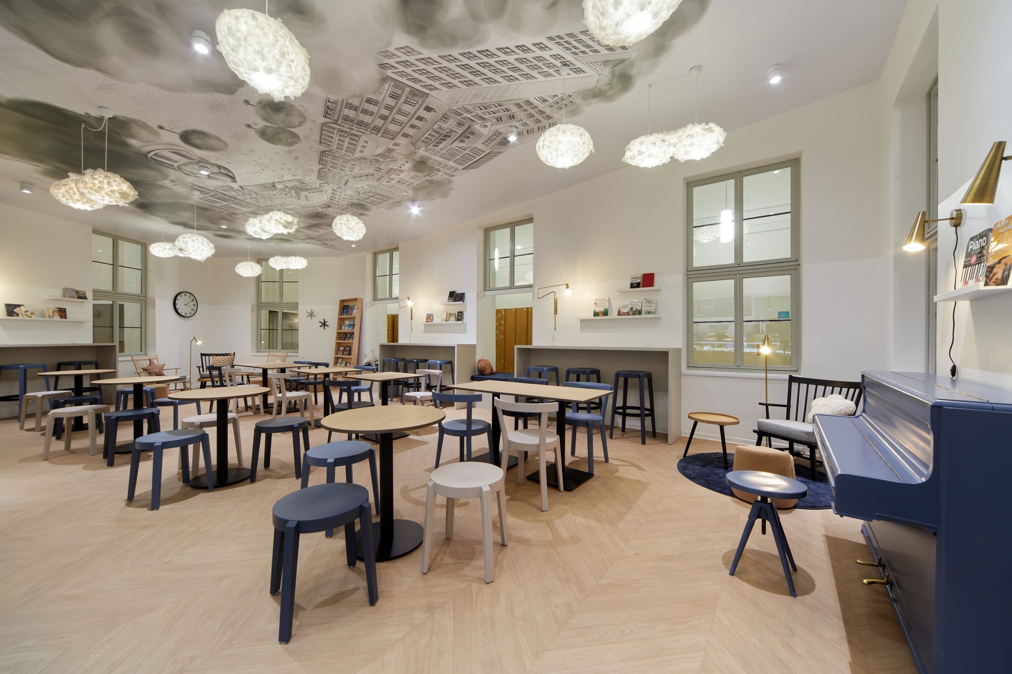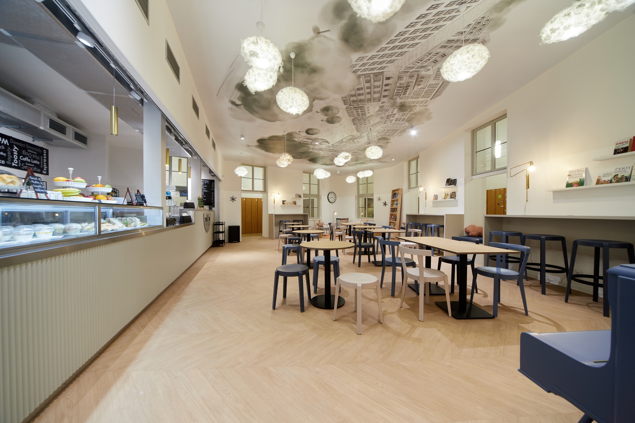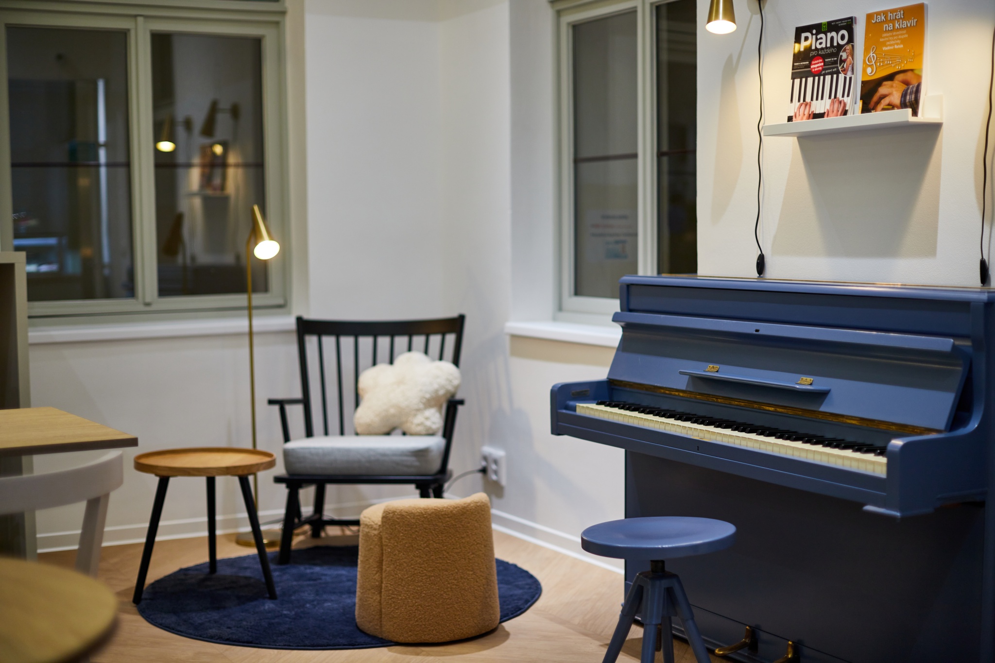 Bistro je místem k inspiraci a setkávání učitelů a studentů napříč ročníky. Je jako stvořené pro rychlou svačinku či oběd, super okamžiky se spolužáky, ale i studijní chvilky. Na své si přijdou i milovníci hudby! Prostor doplňuje pianino a tak se z přestávky může snadno stát živý koncert.