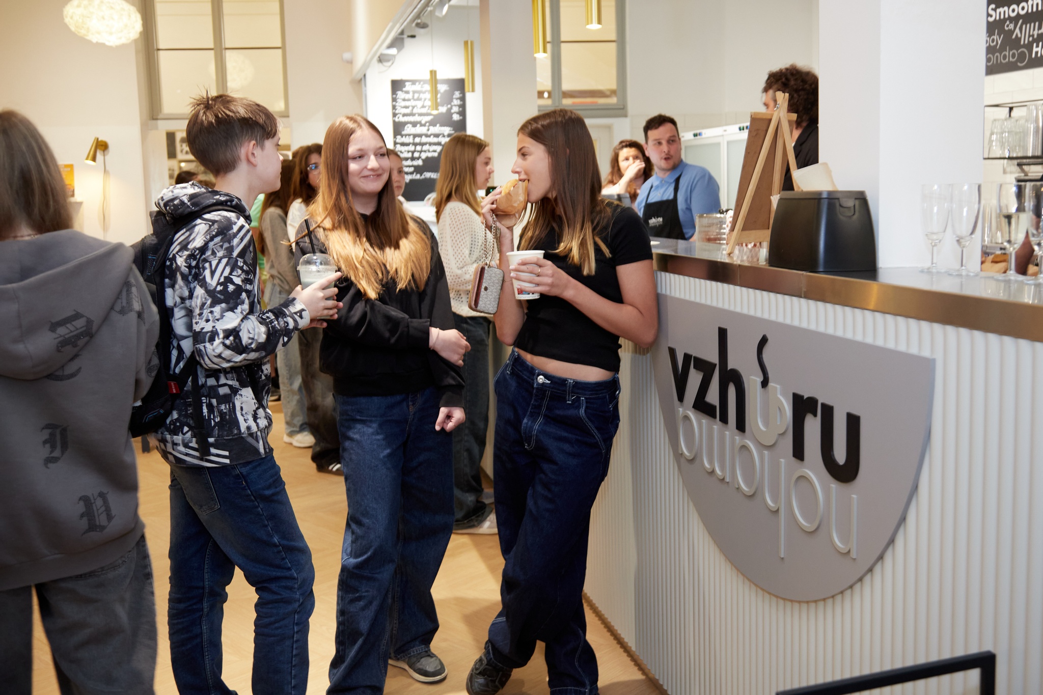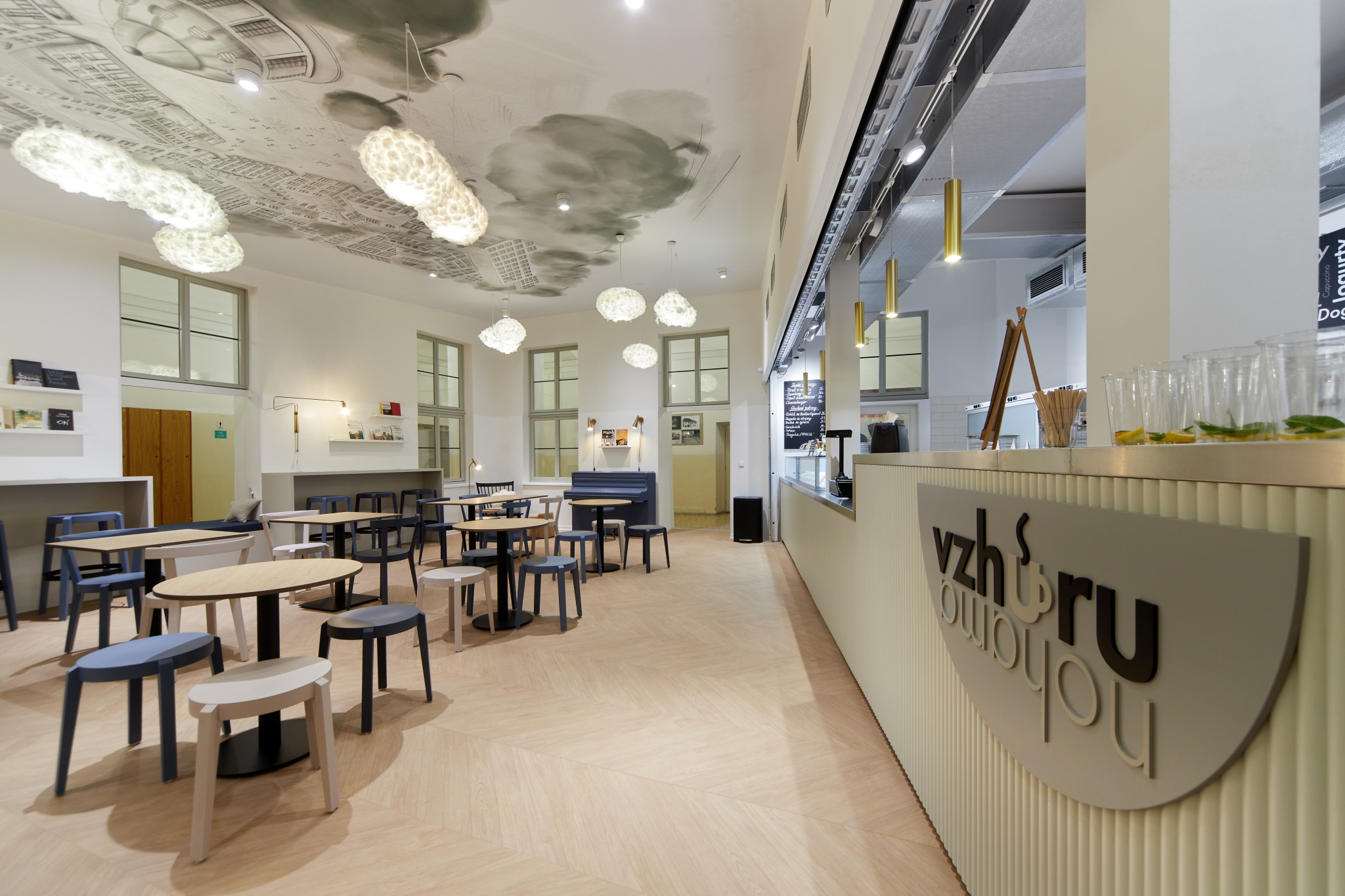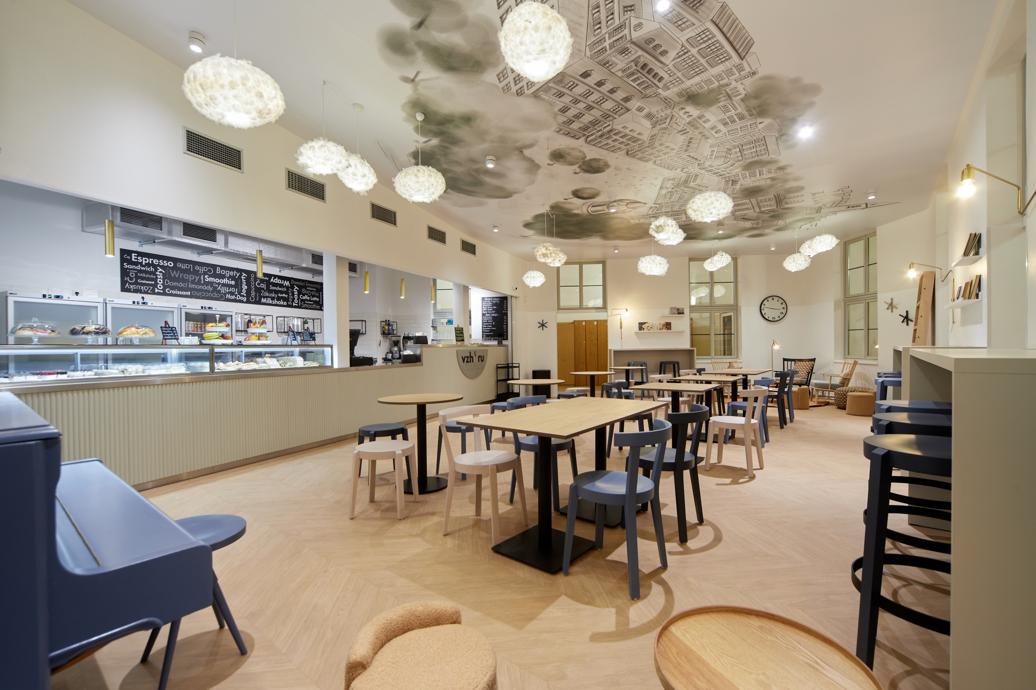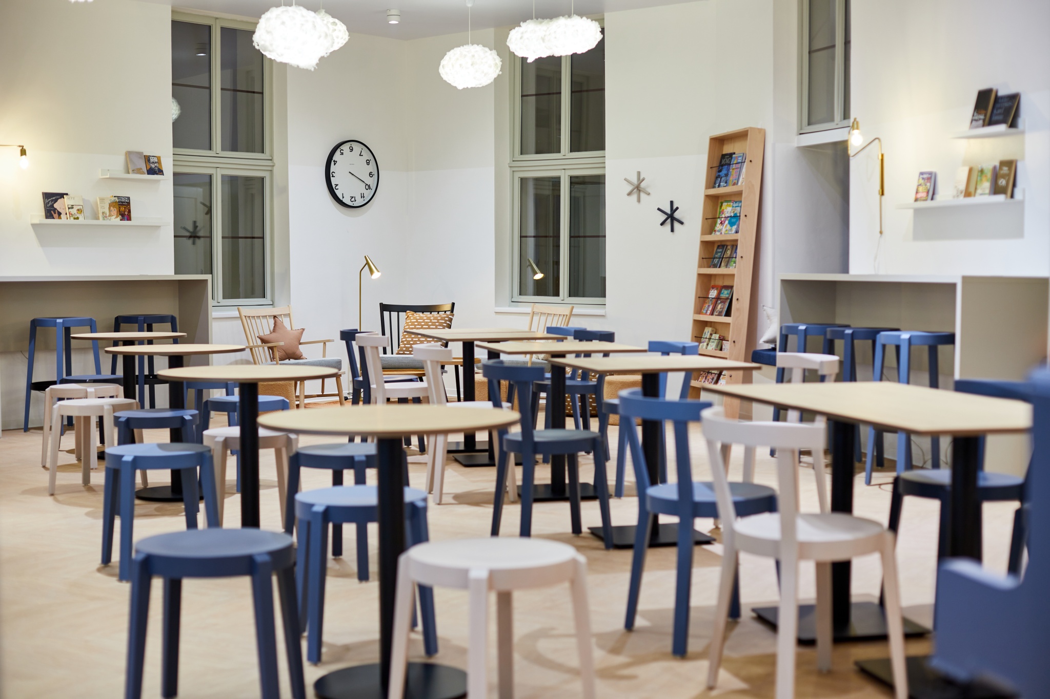Bistro je místem k inspiraci a setkávání učitelů a studentů napříč ročníky. Je jako stvořené pro rychlou svačinku či oběd, super okamžiky se spolužáky, ale i studijní chvilky. Na své si přijdou i milovníci hudby! Prostor doplňuje pianino a tak se z přestávky může snadno stát živý koncert.