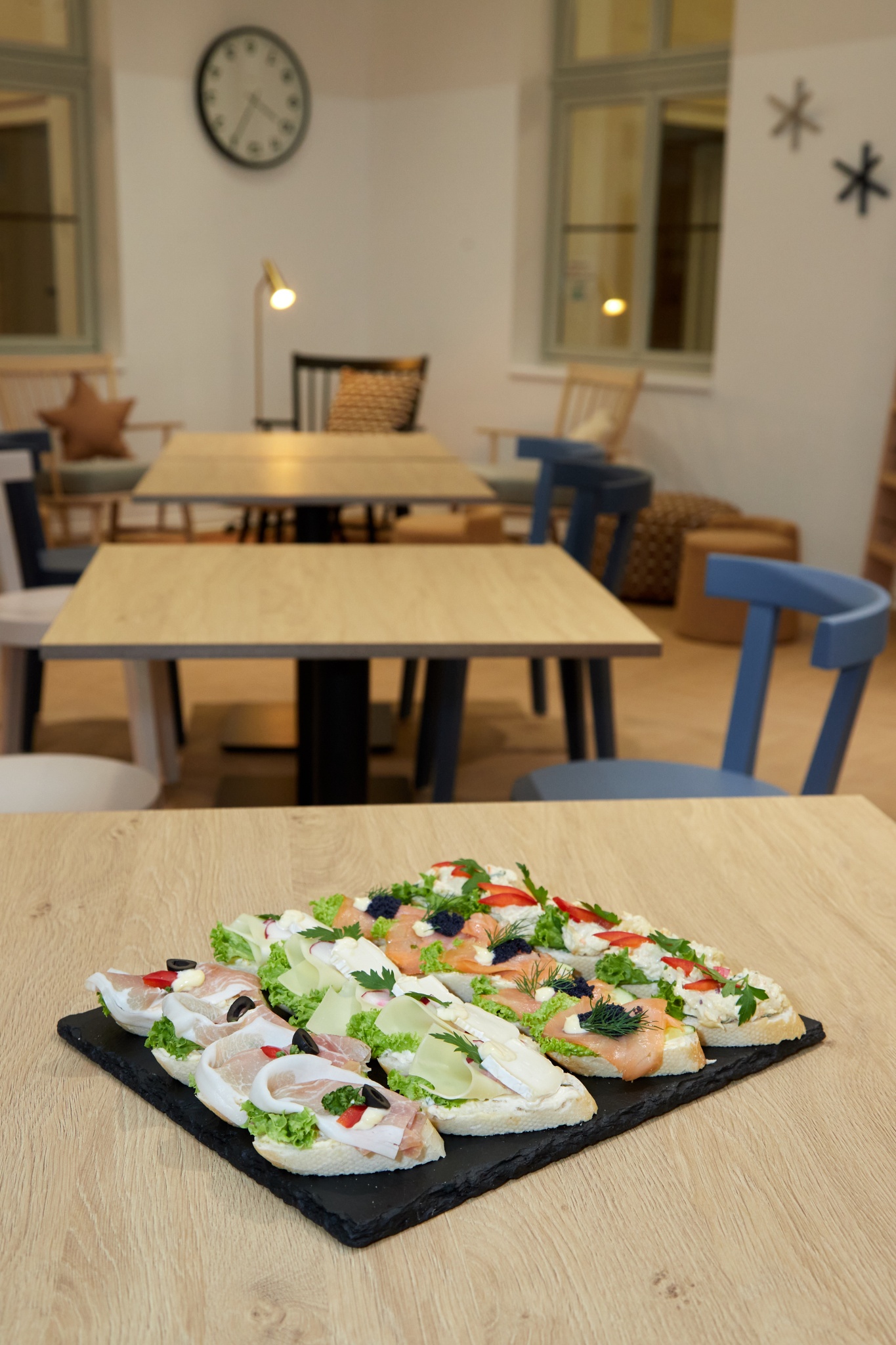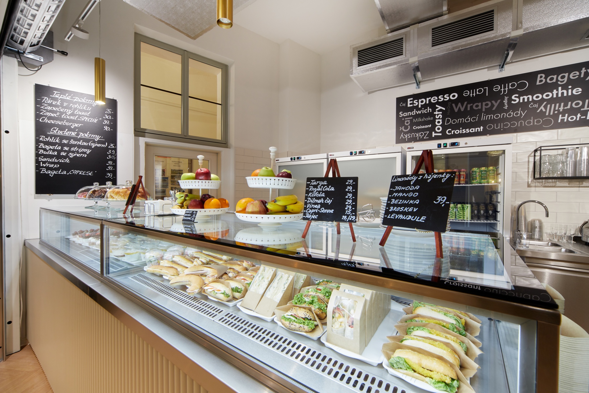 Můžete se těšit na čerstvé svačiny – od sendvičů po lehké saláty. Čeká vás kvalitní káva a nápoje – pro ranní restart i odpolední vzpruhu! Pro rychlé dobití energie ochutnejte dobroty ze sladkého koutku.