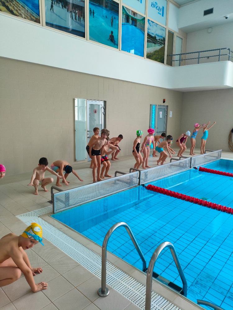 V dalších hodinách se daly do práce – kromě her ve vodě si vyzkoušely skoky do vody a průpravná cvičení ke zvládnutí jednotlivých plaveckých stylů. 🏊♀️💦