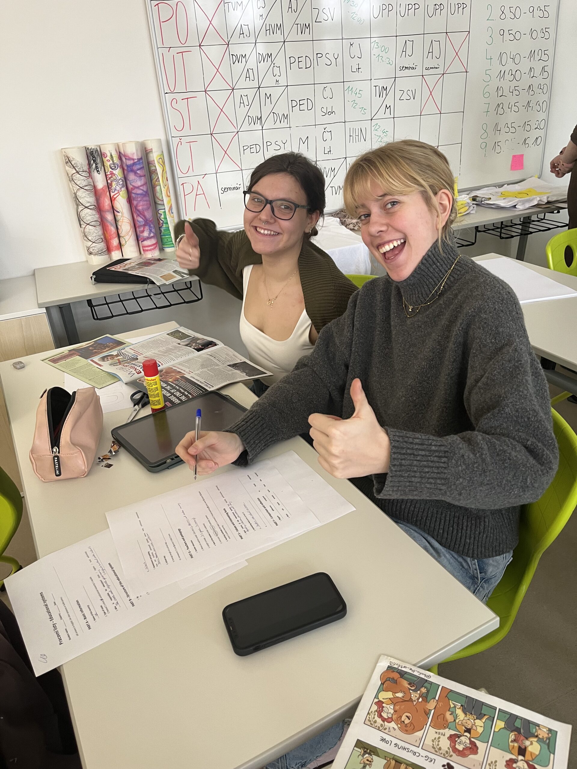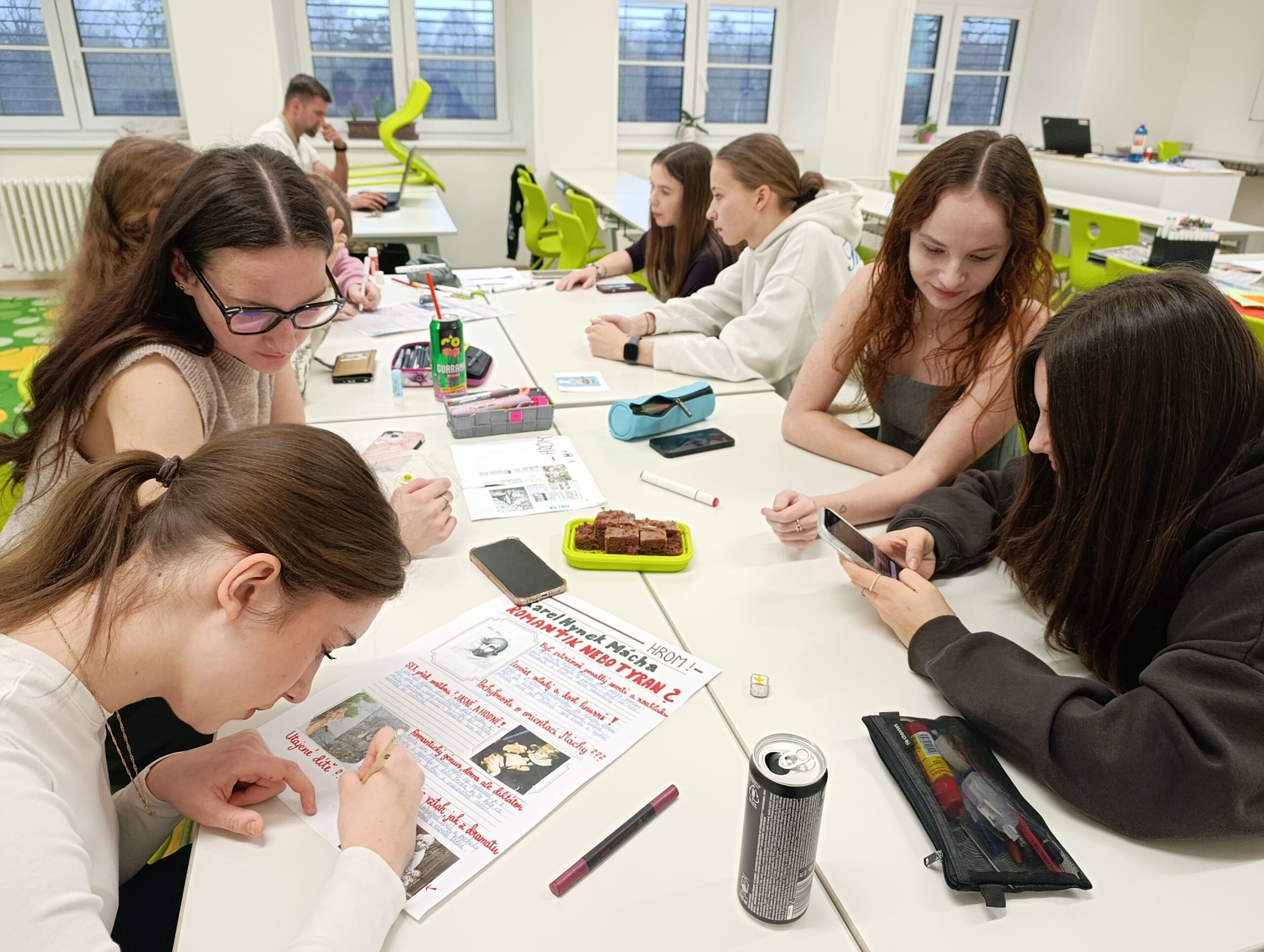 Další skupiny pracovaly v rámci českého jazyka na tvorbě novin zaměřených na slavné spisovatele či knižní postavy, čímž si procvičily práci s informacemi a vlastní tvůrčí psaní. V psychologickém bloku studentky vytvářely emoční karty pro děti, které mohou sloužit jako praktická pomůcka při práci s emocemi.