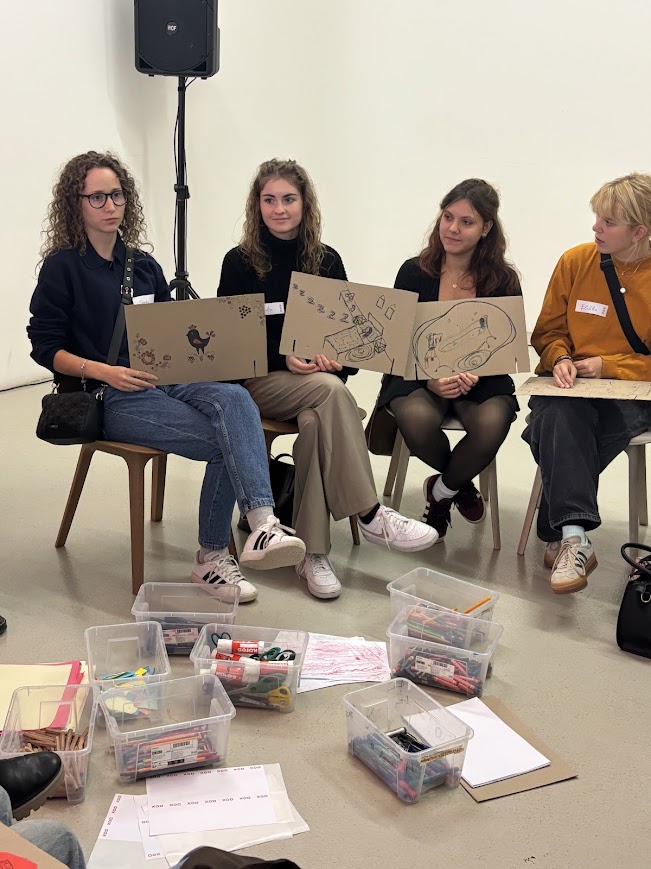 Součástí byla také praktická tvůrčí aktivita, při níž si vyzkoušely kolektivní tvorbu objektu – tedy zkušenost, kterou budou v budoucnu samy realizovat s dětmi v mateřských školách. Program byl domluven především s ohledem na studentky maturující z výtvarné výchovy, které potřebují znát nejen teorii edukačních aktivit galerií a muzeí, ale také praktické postupy práce s prostorem, objektem a netradičními materiály.