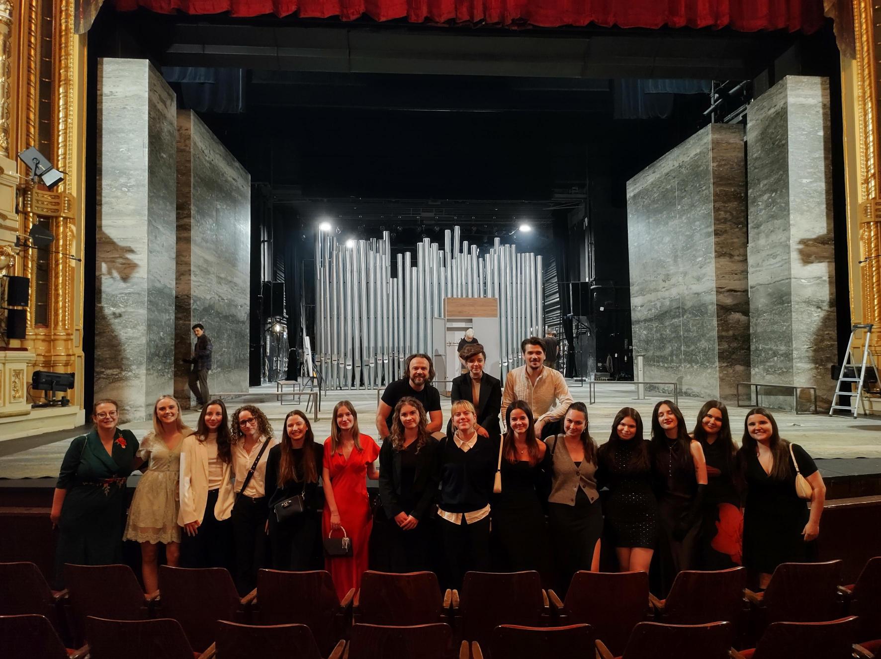 Náš kulturní večer se velmi vydařil. Po skončení hry se studentky vyfotografovaly u jeviště s herci, aby si tuto mimořádnou událost uchovaly v paměti.
