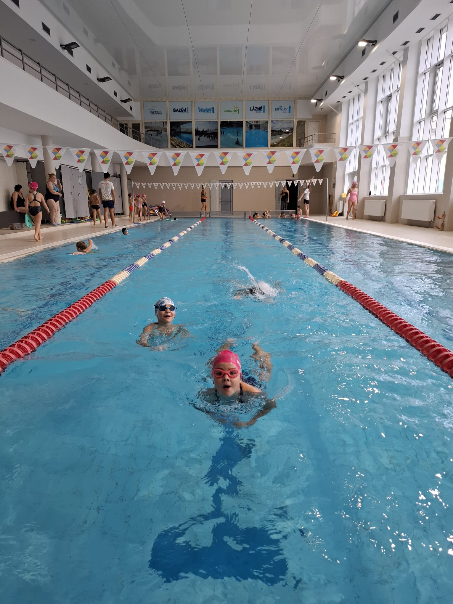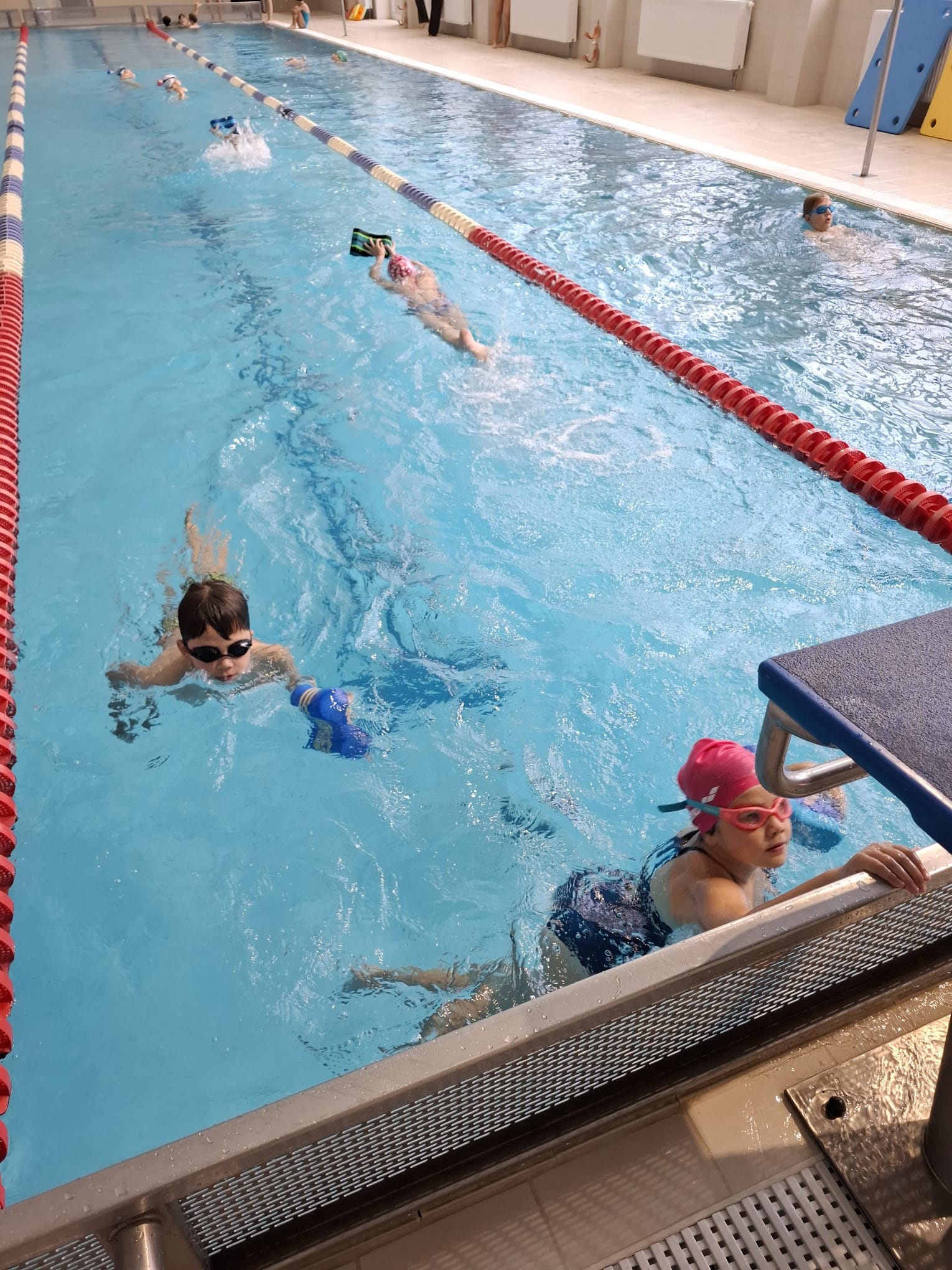 Každou lekcí se zlepšují a dělají velké pokroky. Zvládají delší vzdálenosti, zkoušejí nové styly a ve vodě se cítí jistější. Plavání je baví a do bazénu se vždy těší.