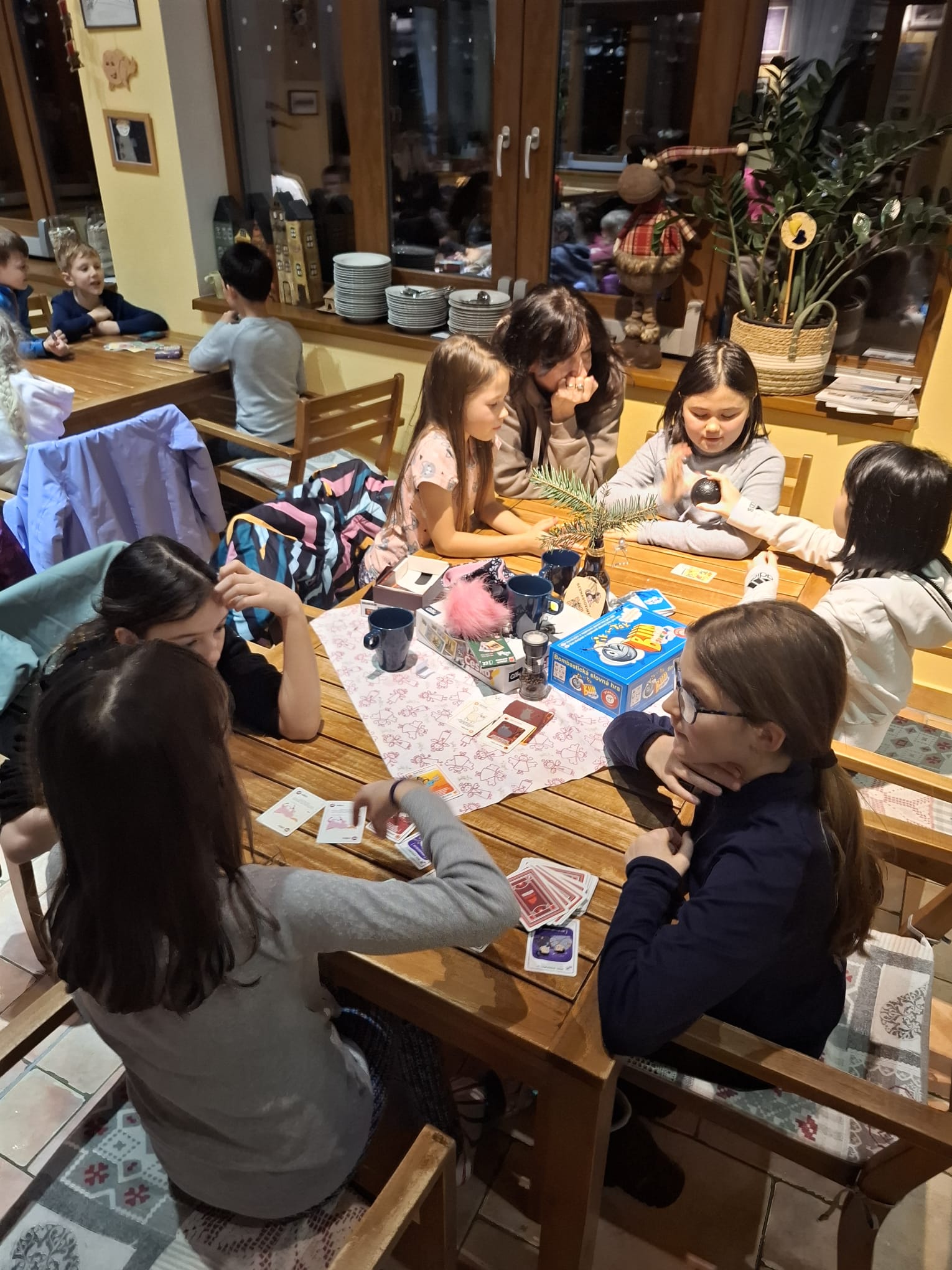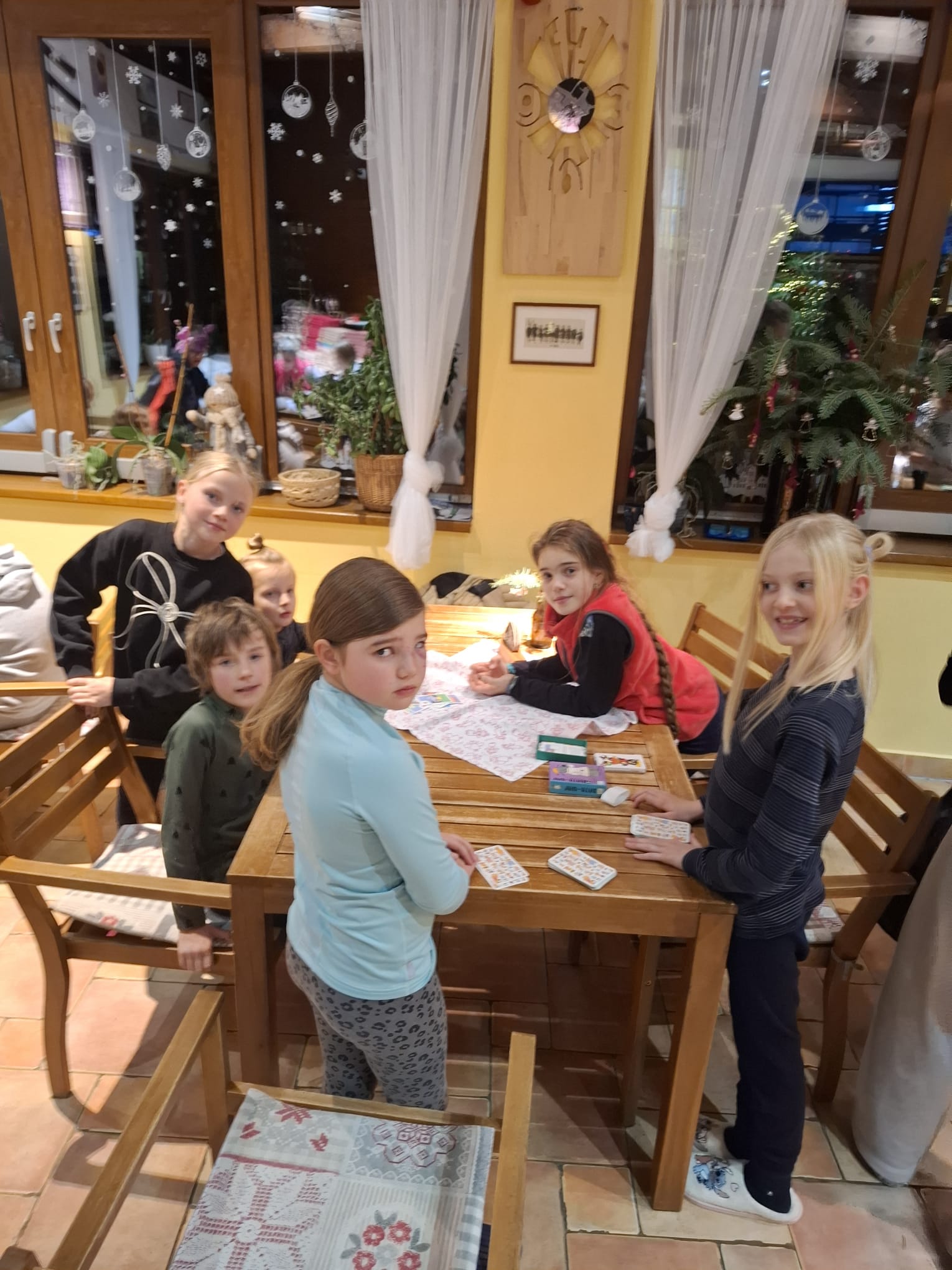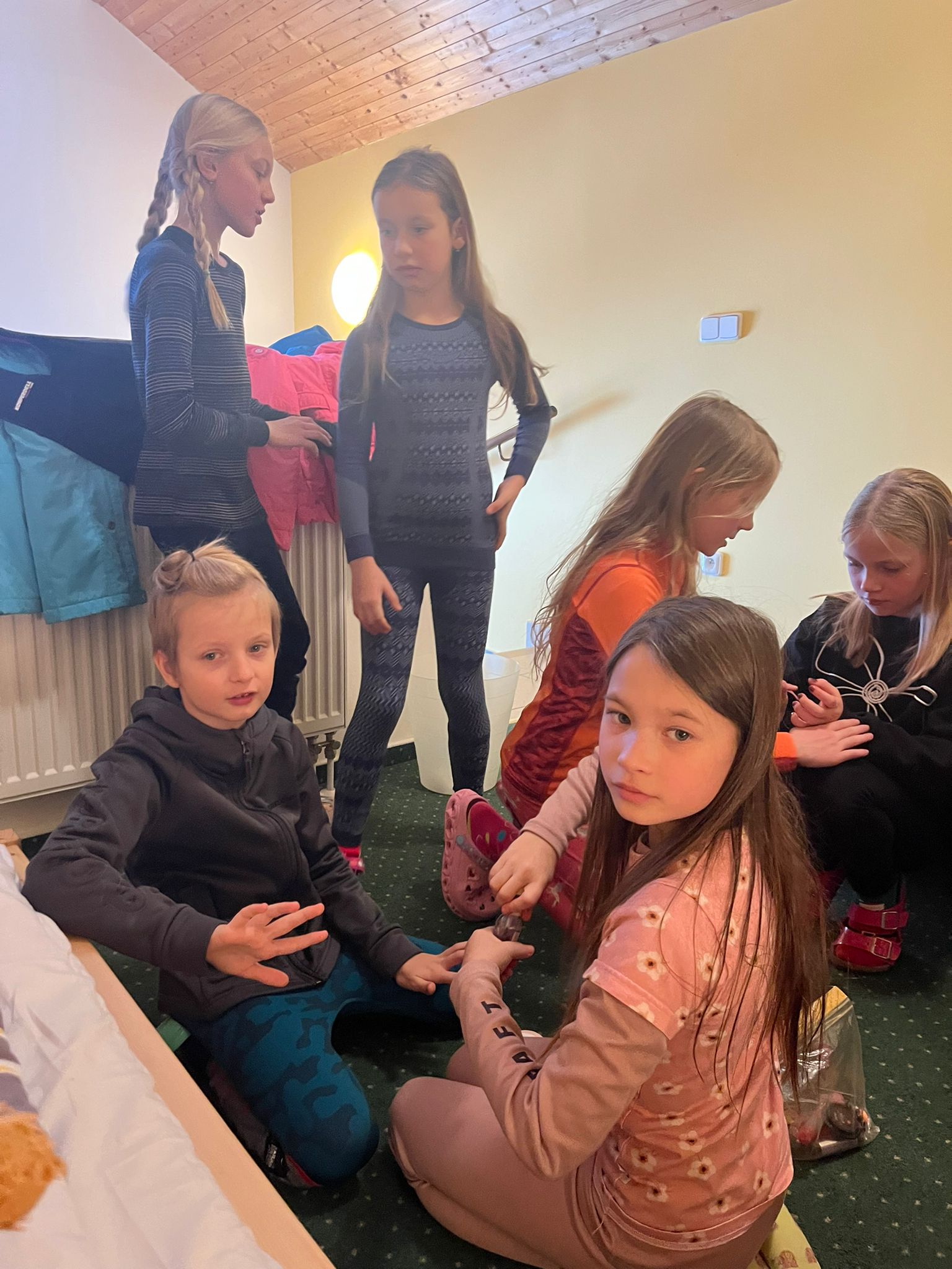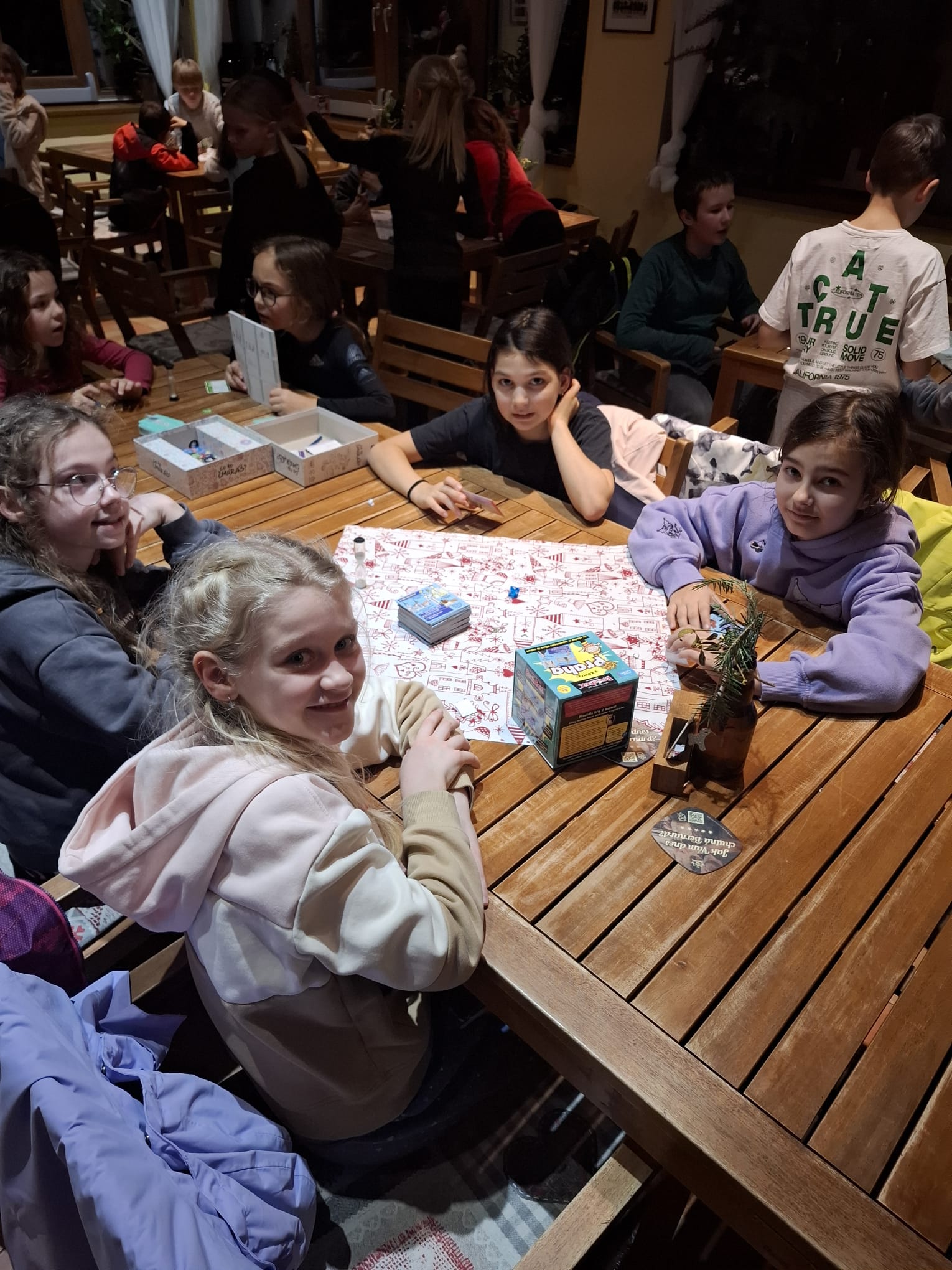 Večer si děti postupně vylosovaly svá startovní čísla na zítřejší závody, na které se už všichni moc těší. Den jsme zakončili příjemnou atmosférou u deskových her, smíchem a dobrou náladou. 😊