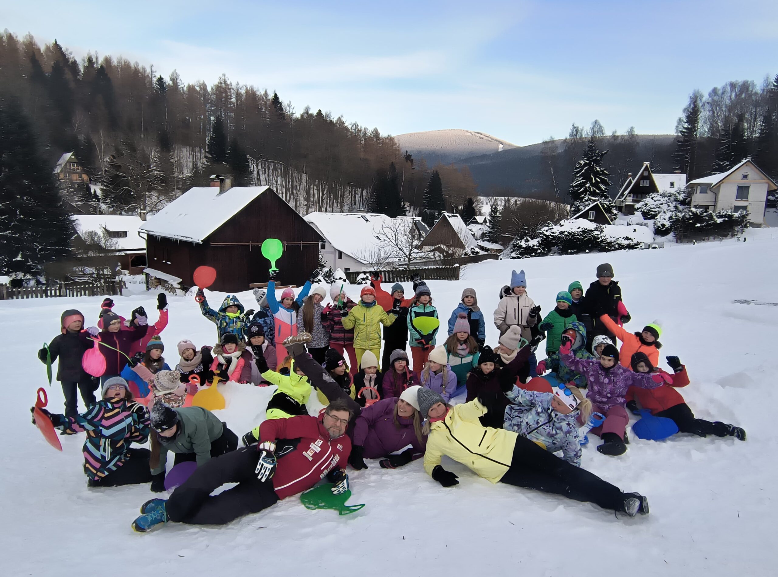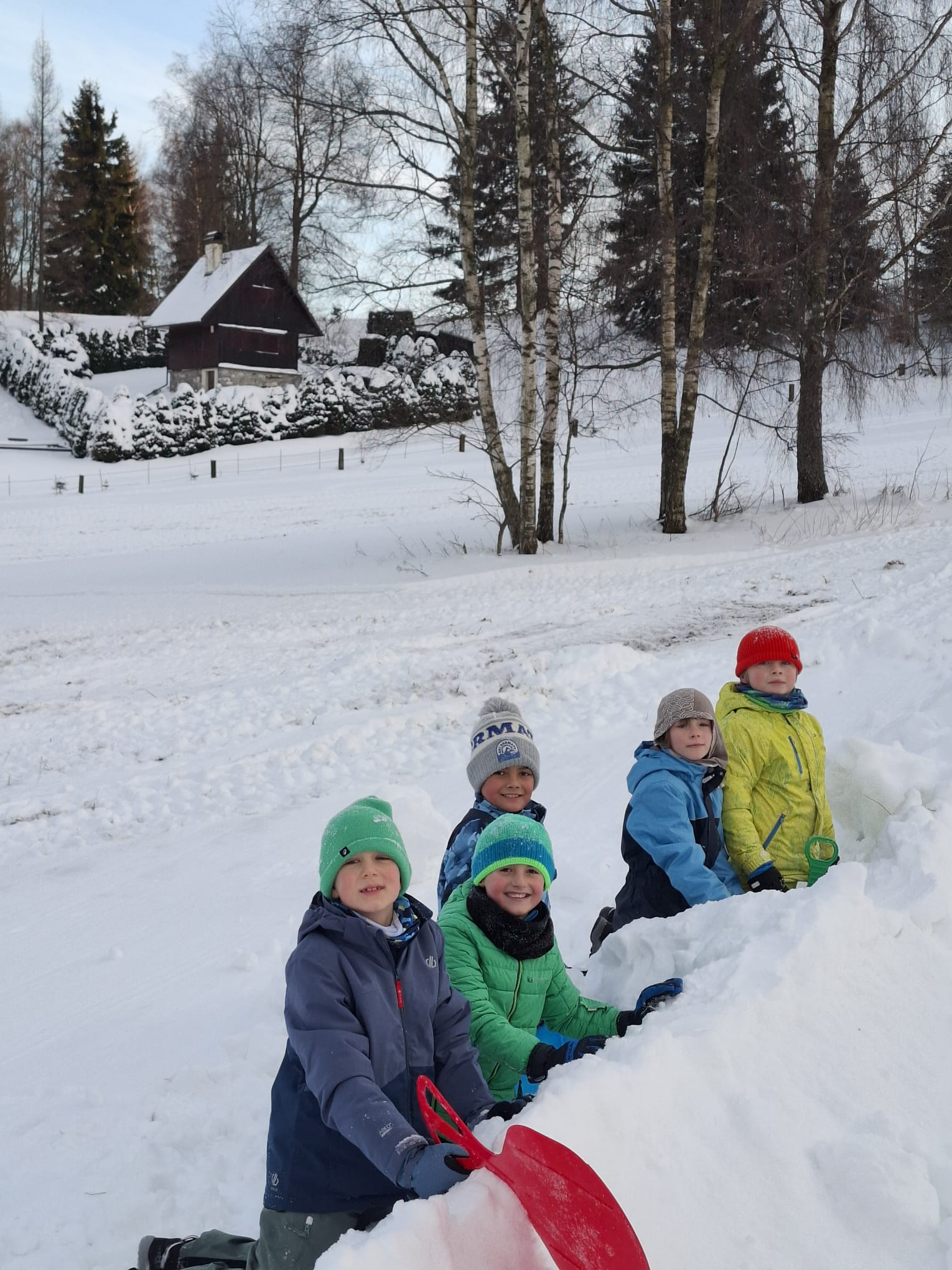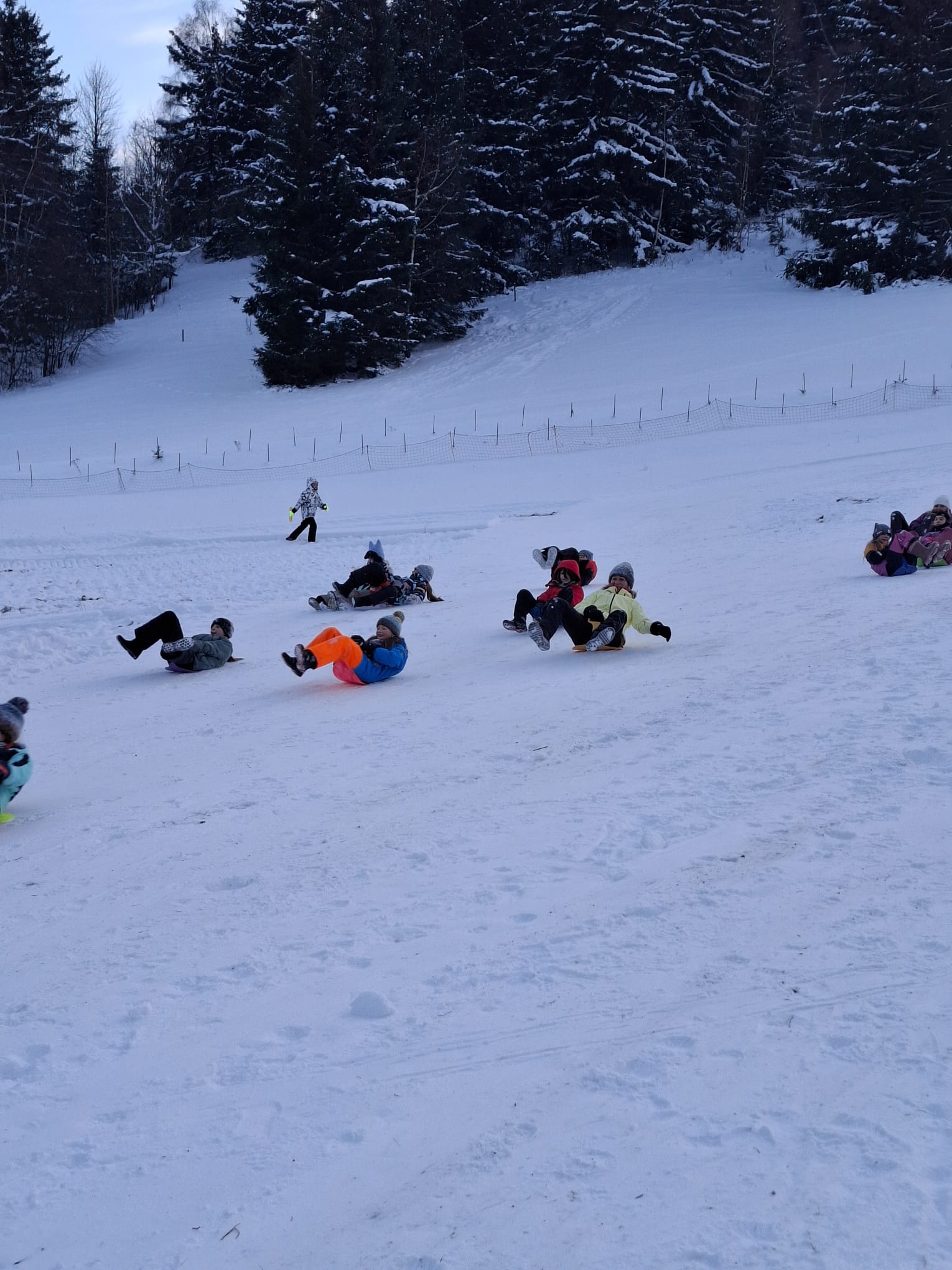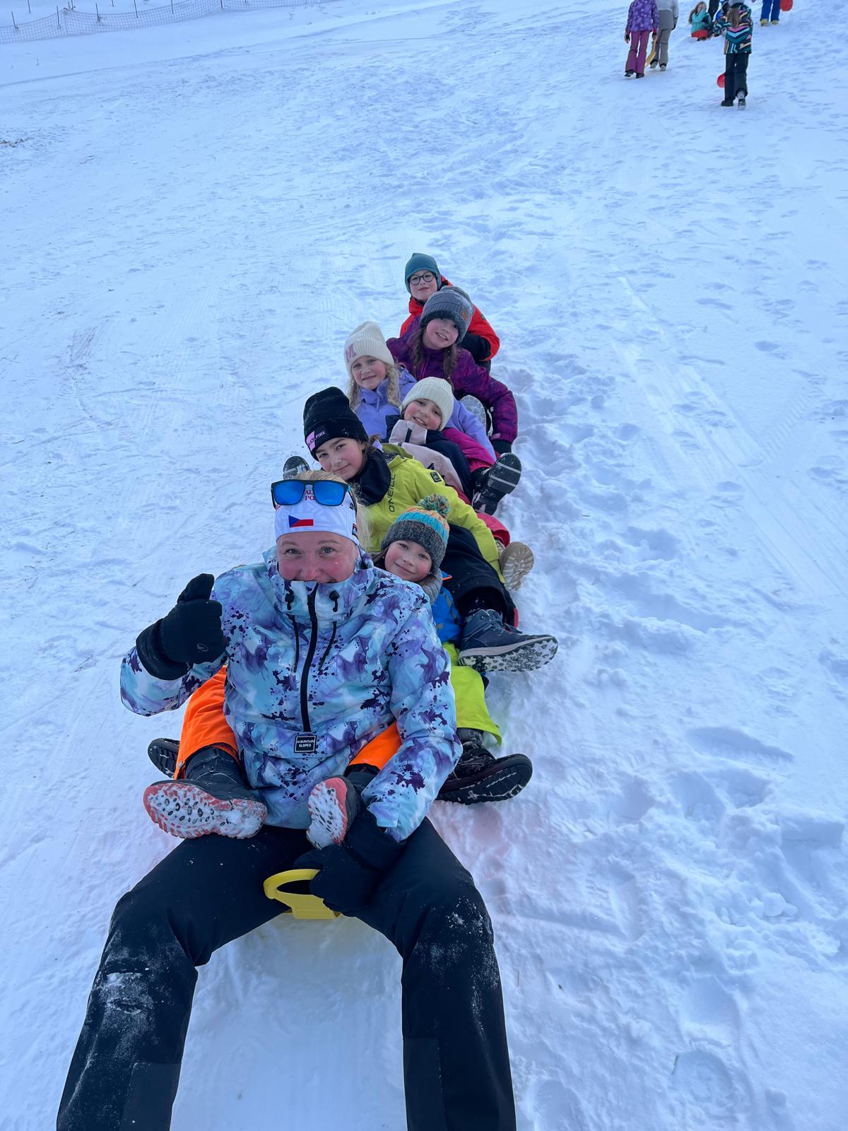 Po návratu jsme se posilnili vydatným obědem, abychom nabrali dostatek energie na odpolední sněhové radovánky plné her a zábavy.