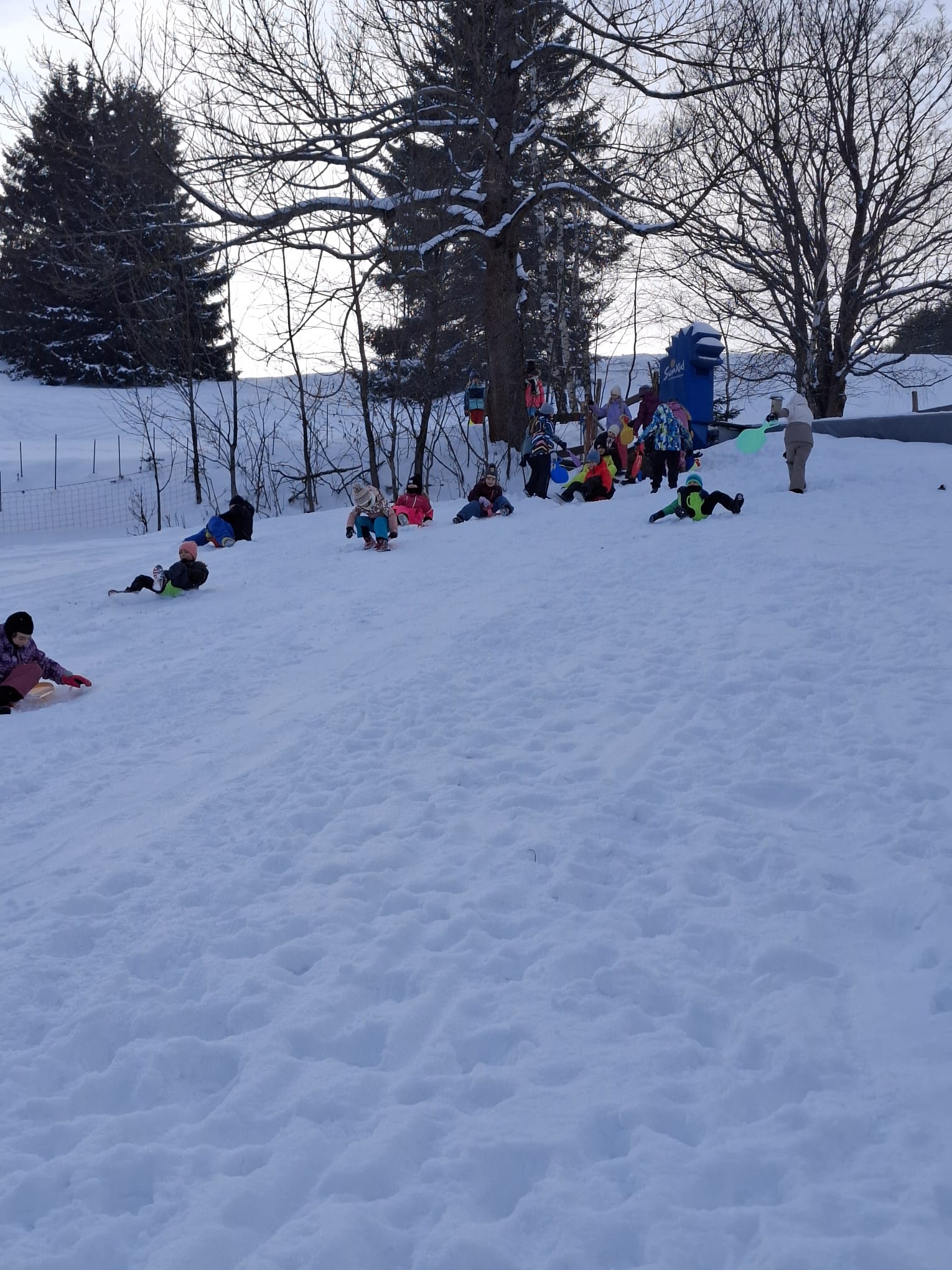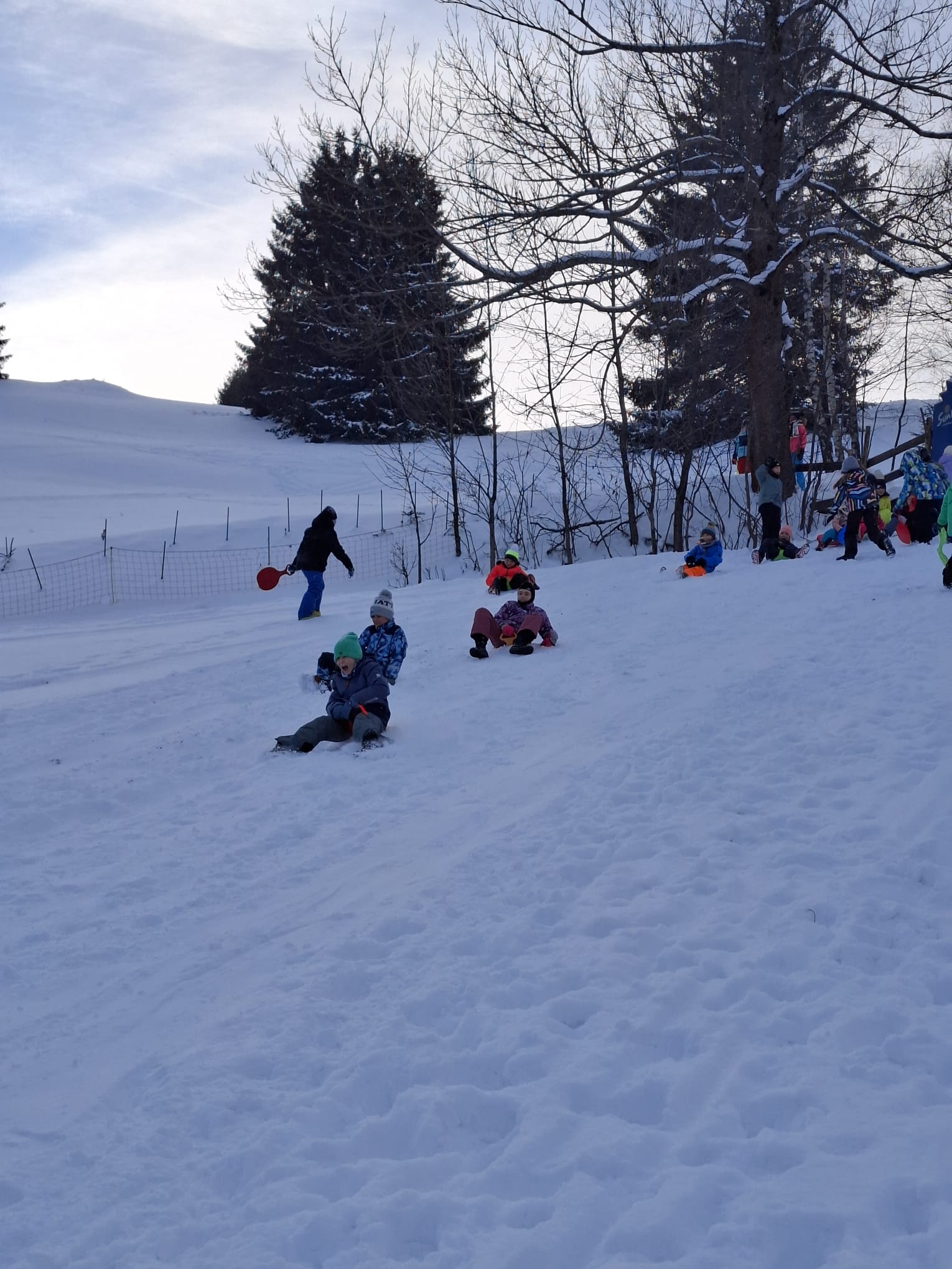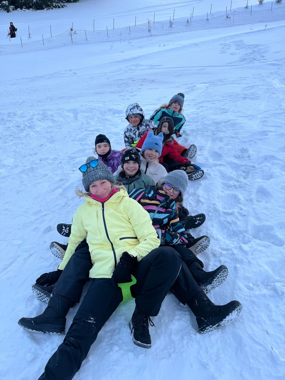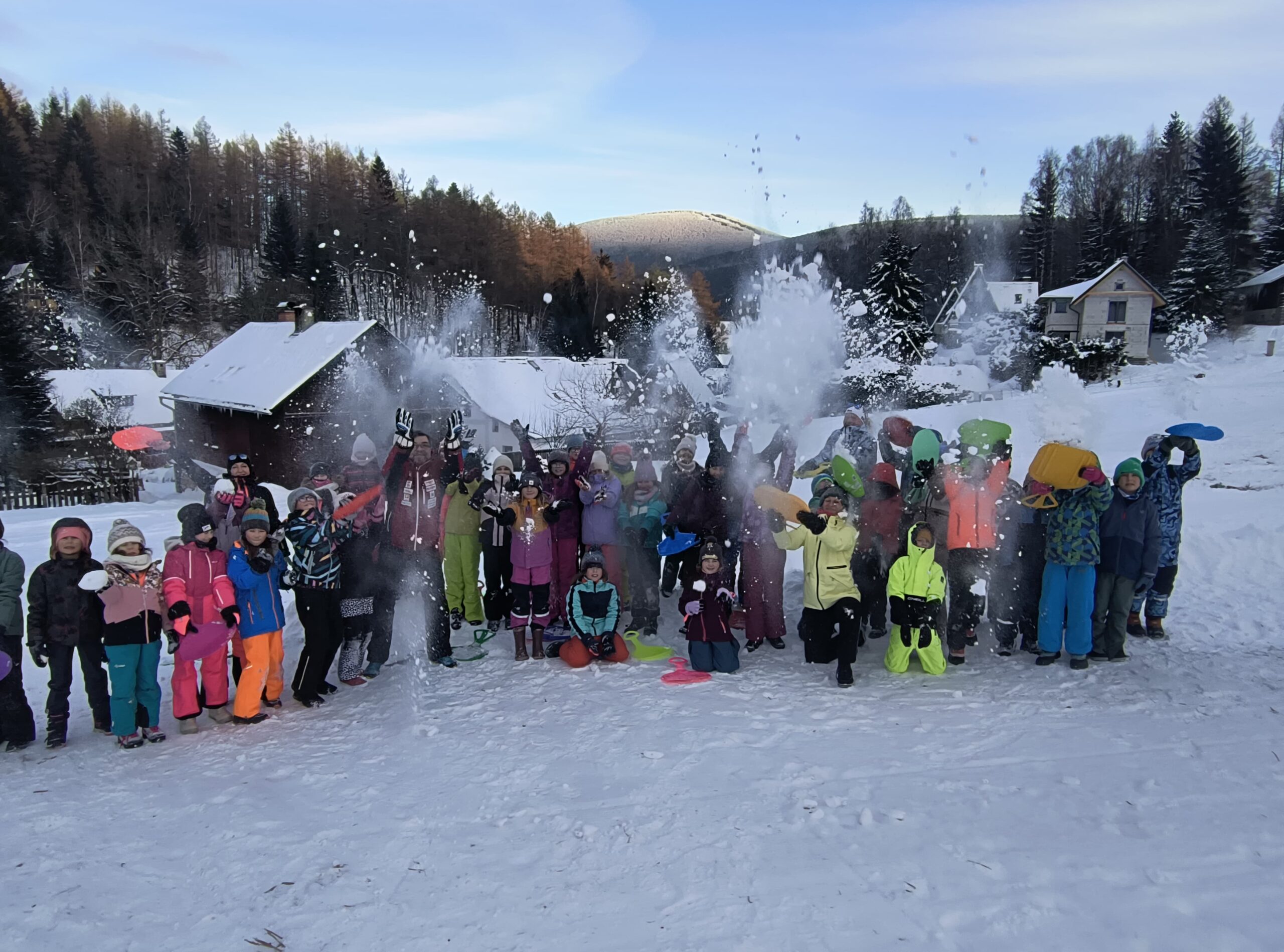 Po návratu jsme se posilnili vydatným obědem, abychom nabrali dostatek energie na odpolední sněhové radovánky plné her a zábavy.