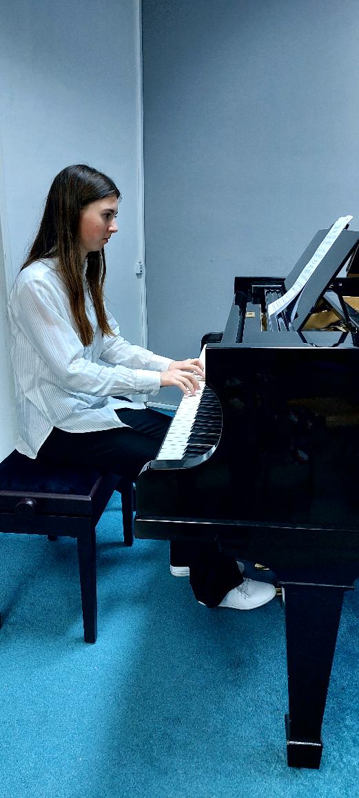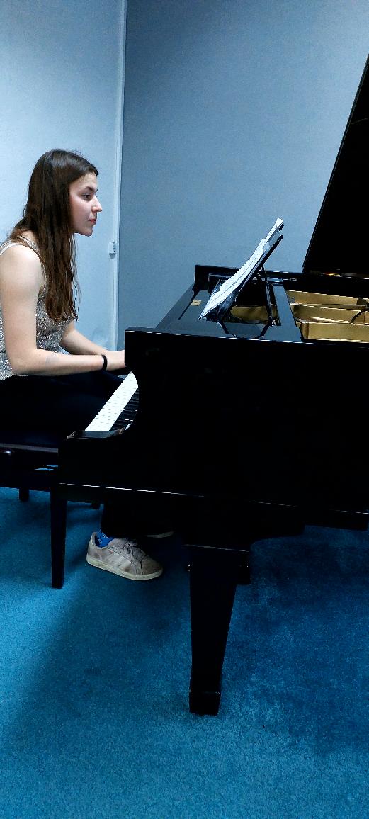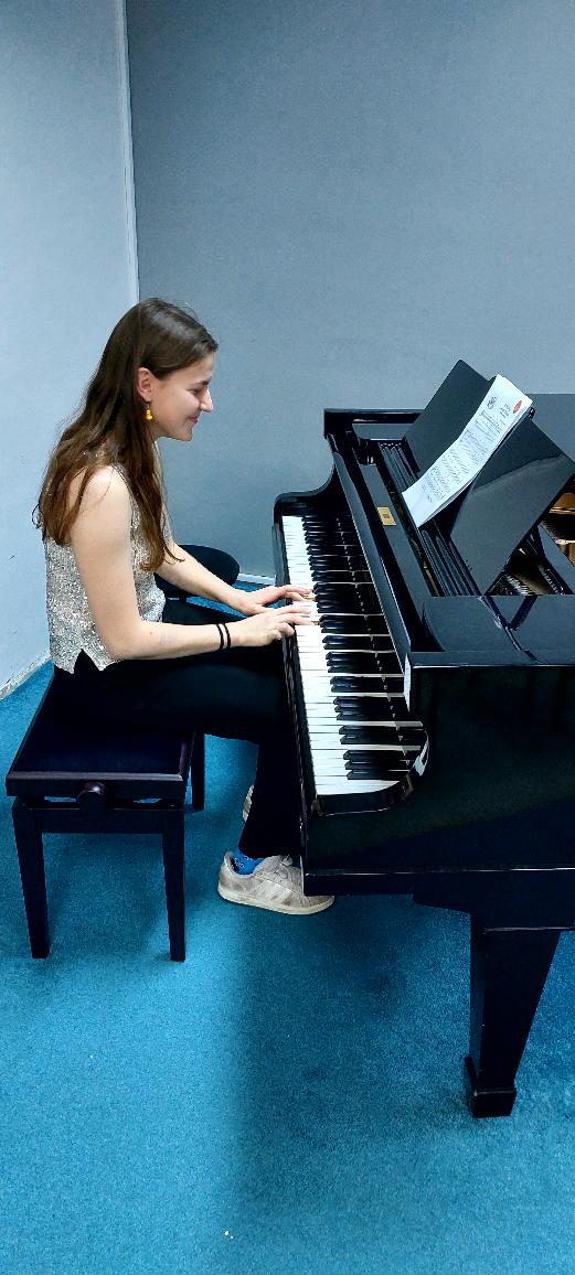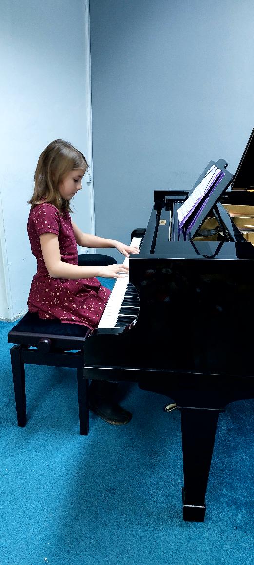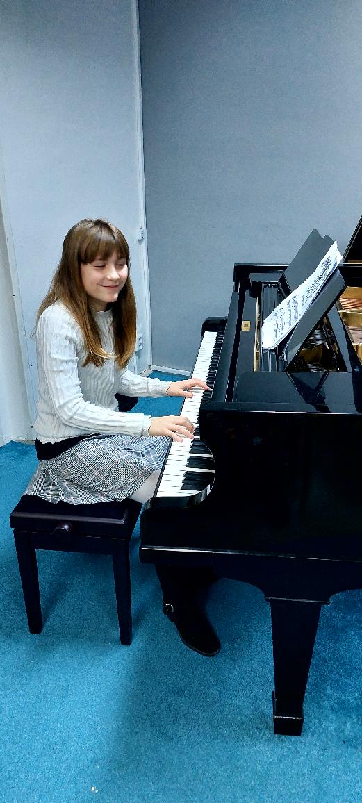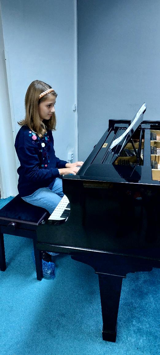 Michaela Bočková (2.roč.) zahrála skladby Polka a Byla cesta.