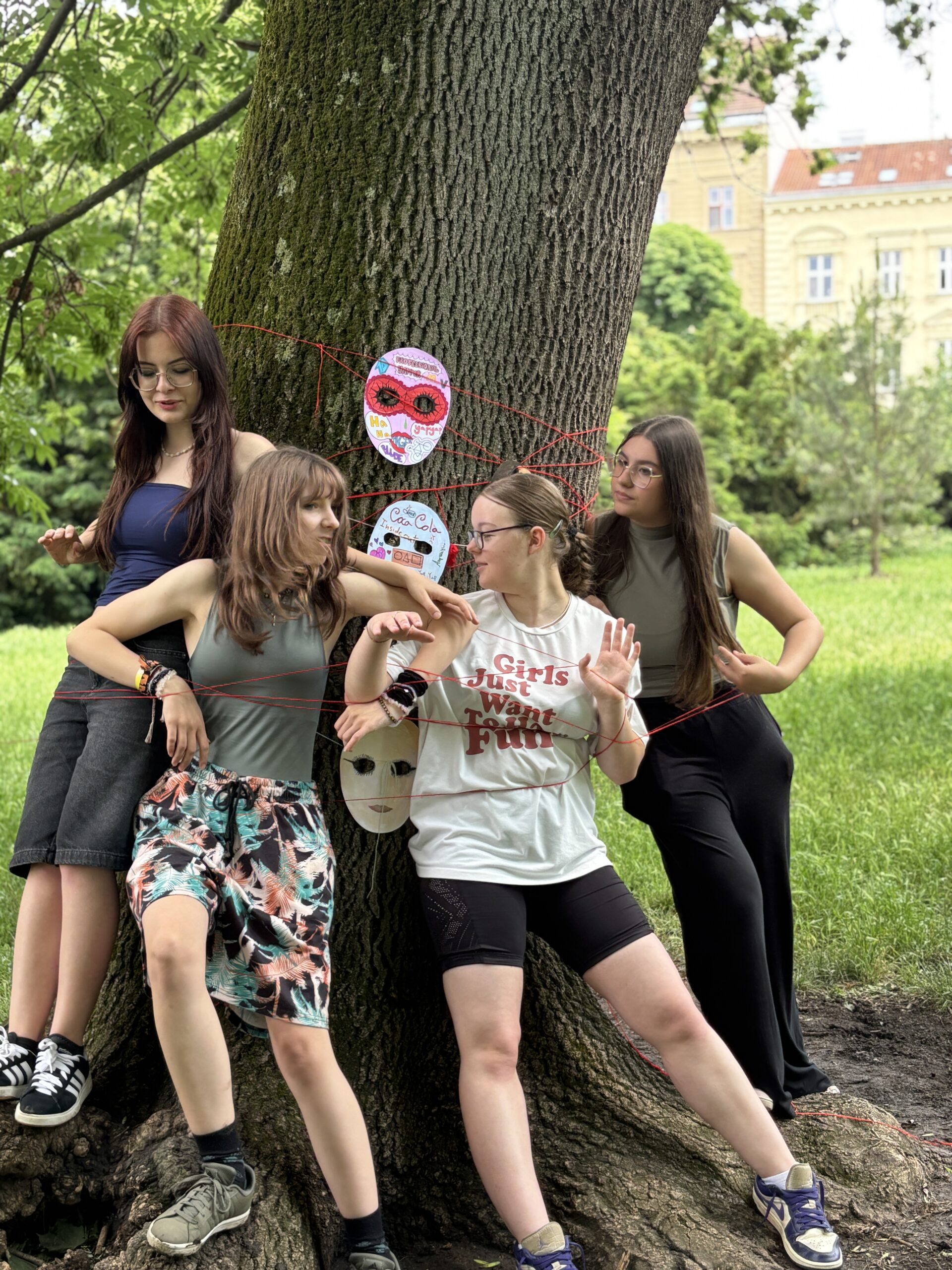 Na konci školního roku se studentky 1. ročníku SPGŠ vydaly v rámci výtvarné výchovy do parku Lužánky, kde vznikl mezioborový projekt propojující výtvarné umění, psychologii i dramatickou výchovu.