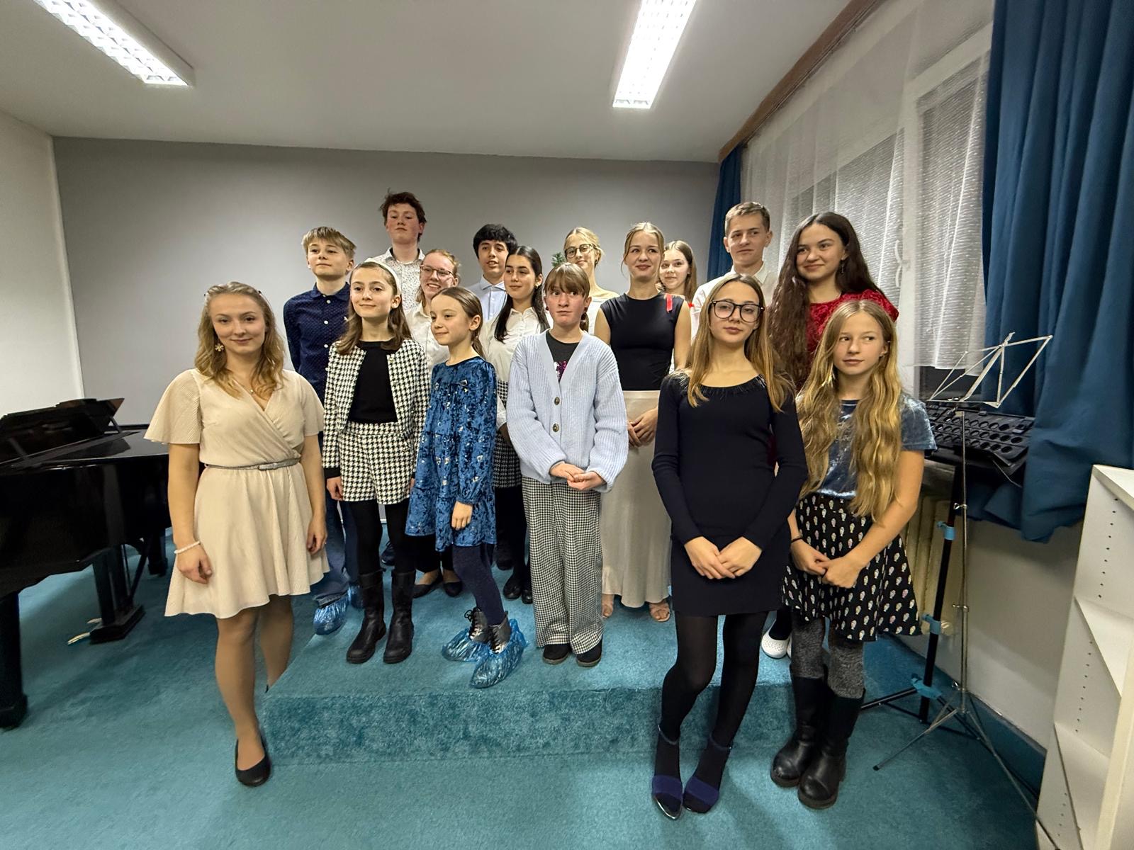 Stefania Barganska (7. r.) zahrála s doprovodem vyučující skladbu The Entertainer od S. Joplina.