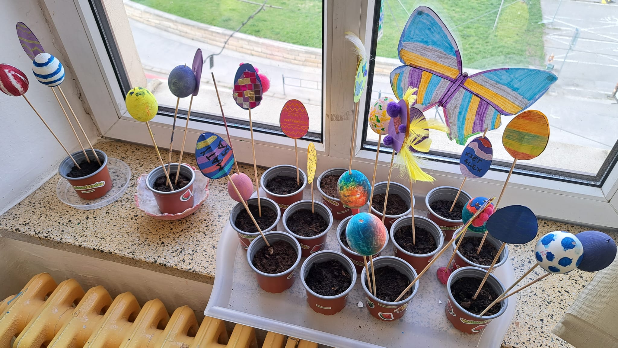 Vytvářeli velikonoční přání, malovali vajíčka a s nadšením také seli semínka řeřichy do vytvořených košíčků.