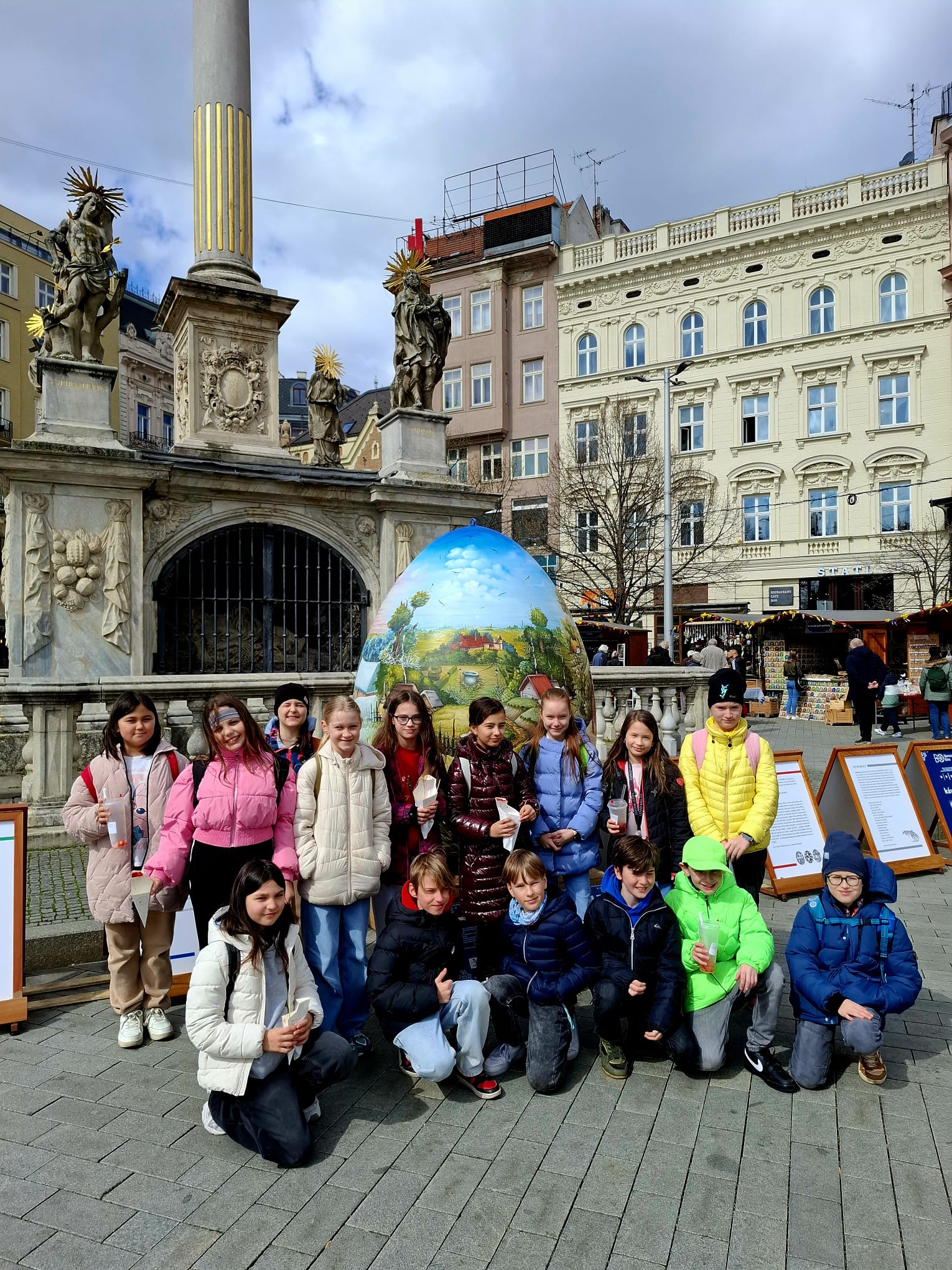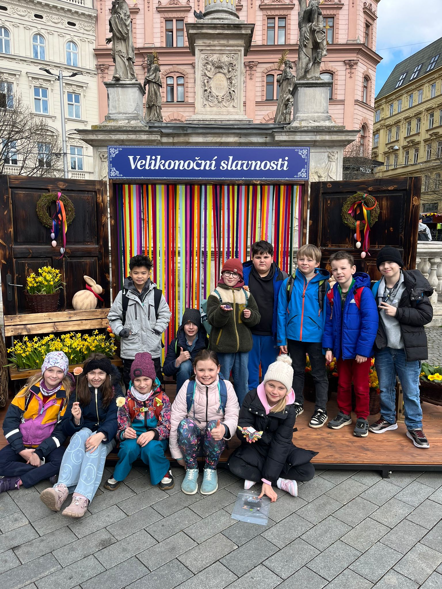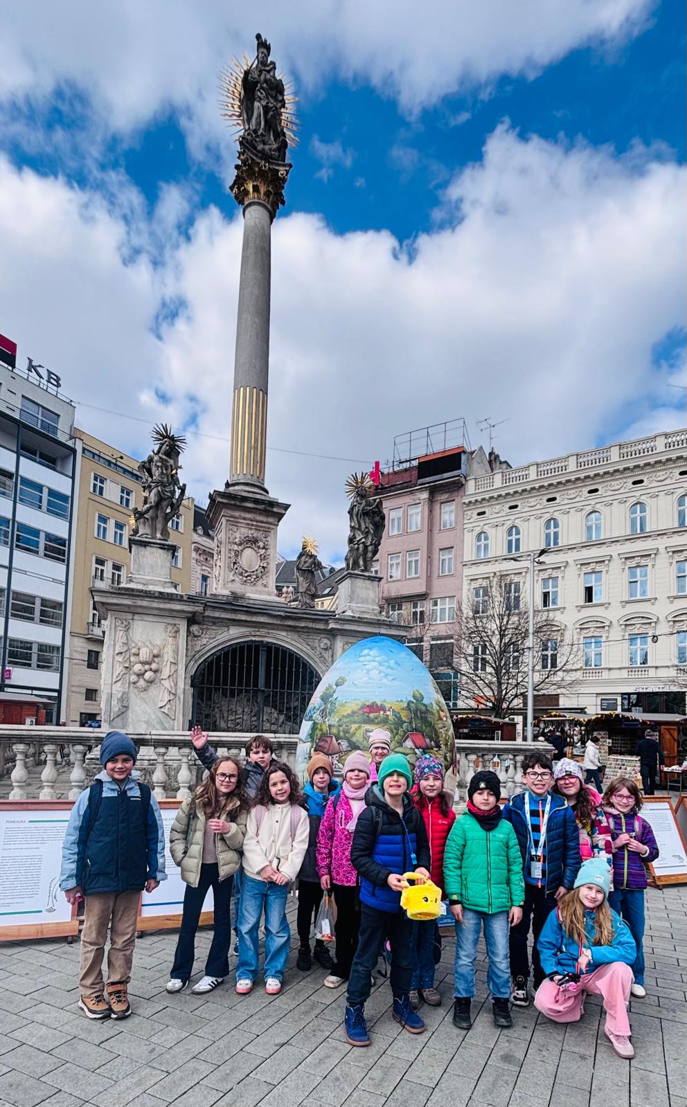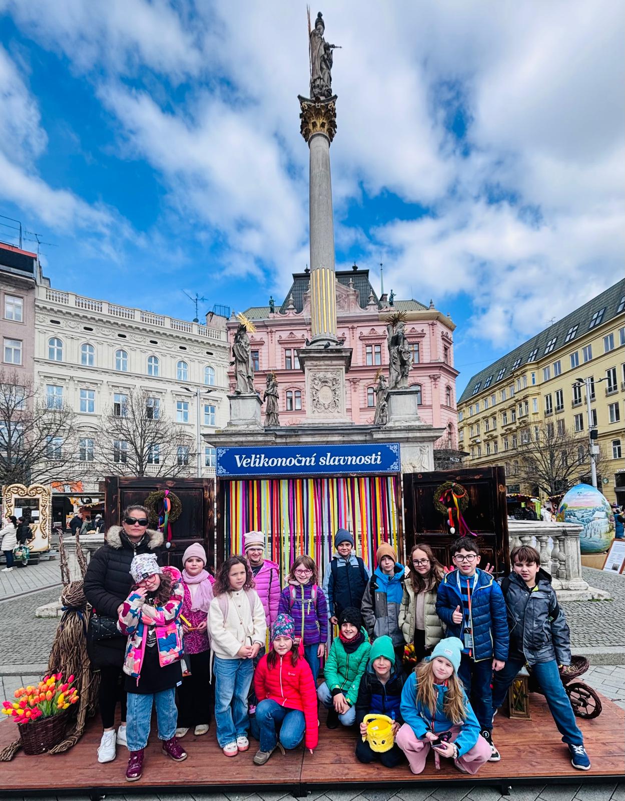 Poté jsme se vydali na společný výlet do centra Brno. Děti si prohlédly významnou dominantu města – katedrálu svatého Petra a Pavla, kde se dozvěděly zajímavosti o její historii i architektuře. Následně jsme zamířili na velikonoční trhy na náměstí Svobody, kde na nás čekala pestrá jarní výzdoba, stánky s tradičními výrobky i sváteční atmosféra.