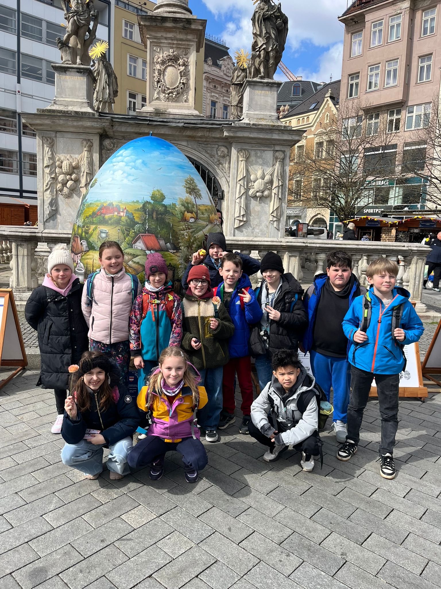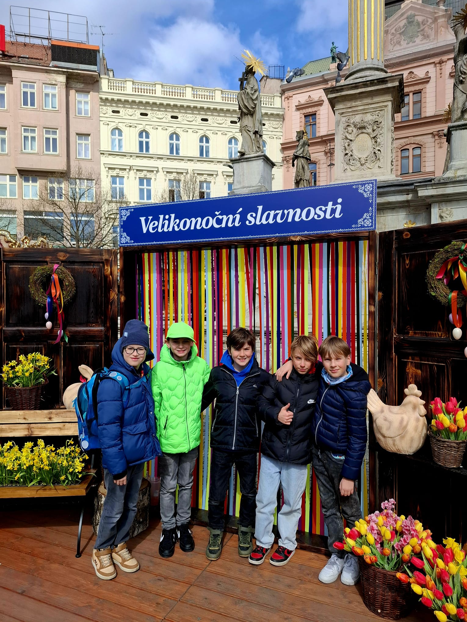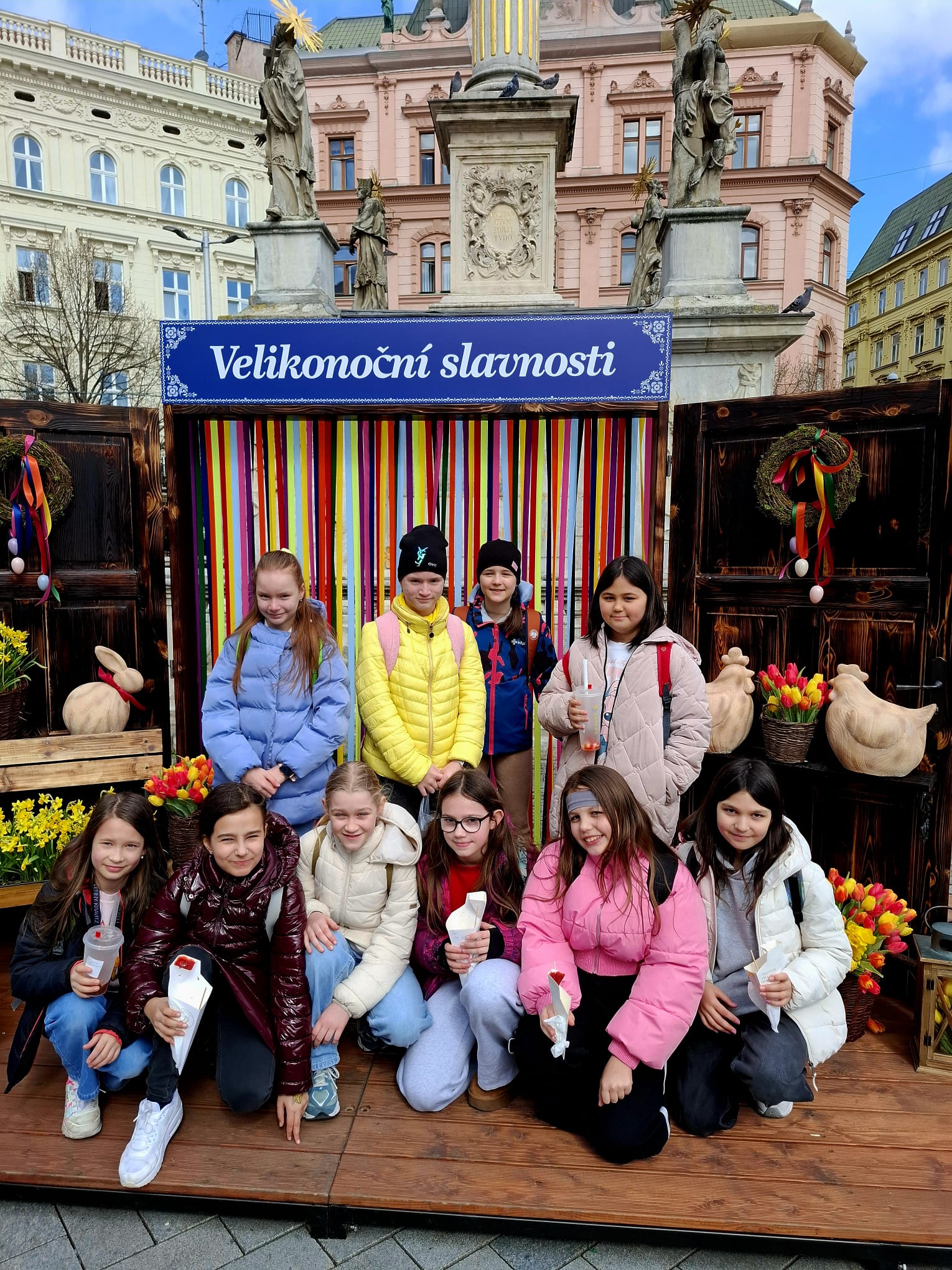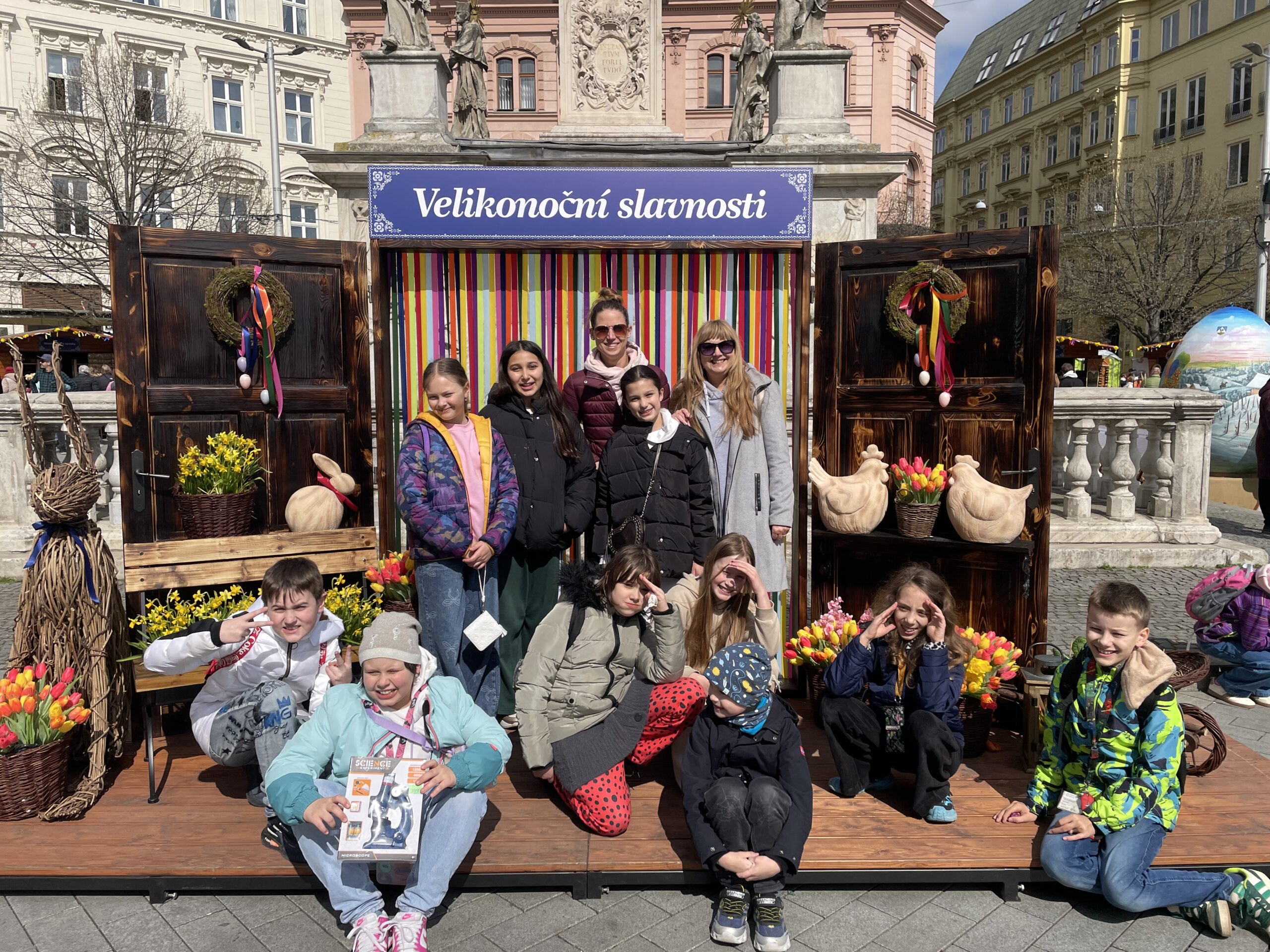 Poté jsme se vydali na společný výlet do centra Brno. Děti si prohlédly významnou dominantu města – katedrálu svatého Petra a Pavla, kde se dozvěděly zajímavosti o její historii i architektuře. Následně jsme zamířili na velikonoční trhy na náměstí Svobody, kde na nás čekala pestrá jarní výzdoba, stánky s tradičními výrobky i sváteční atmosféra.