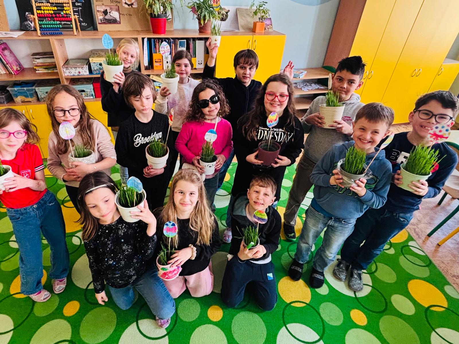 Dopoledne patřilo tvoření ve třídách, kde si děti s nadšením vyráběly velikonoční přáníčka a originální ozdoby do květináčů s osením. Kreativita a barevné nápady zaplnily celou třídu a všichni si odnesli krásné výrobky, které jim budou připomínat blížící se svátky jara.