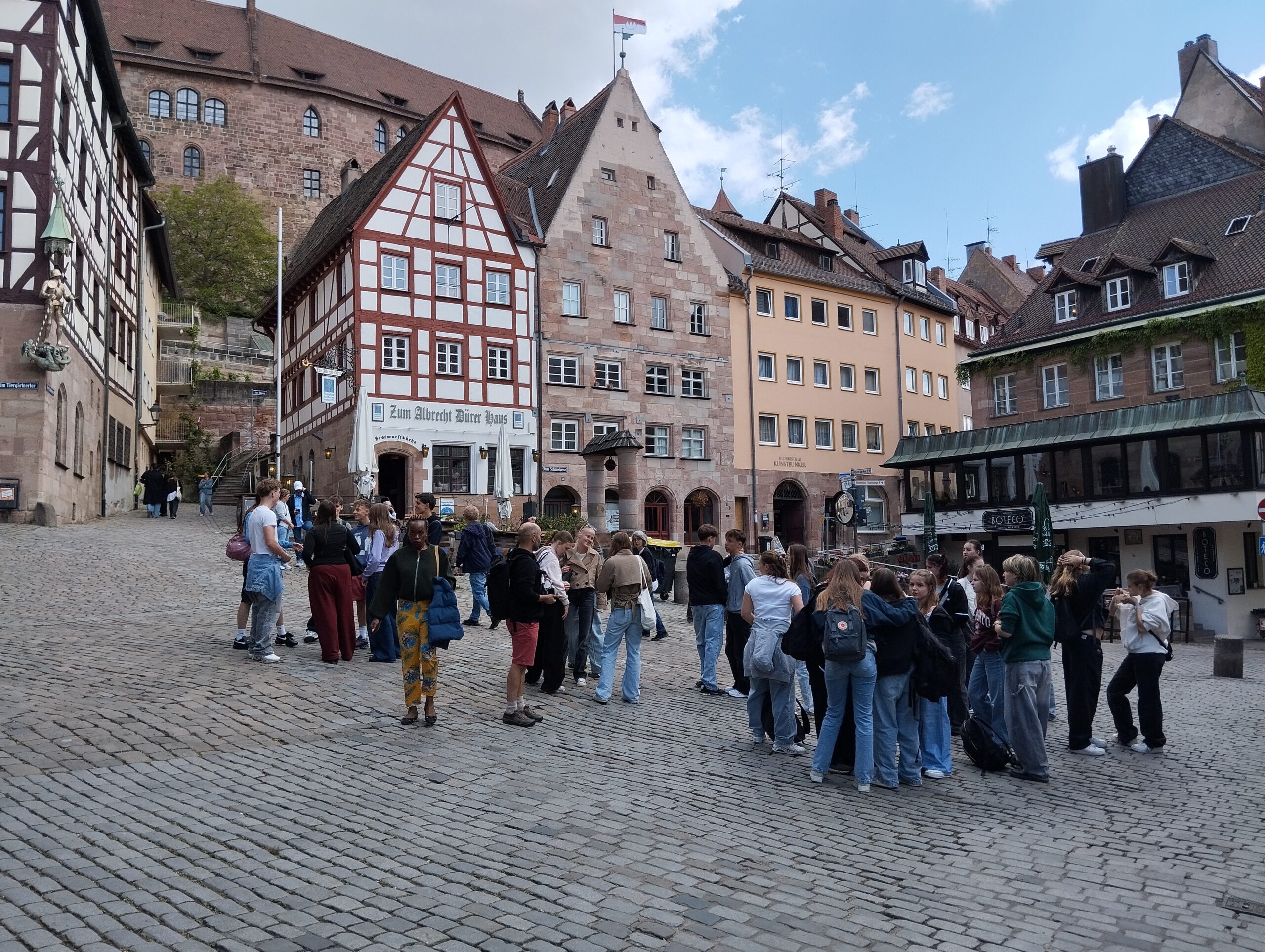 Ve čtvrtek byl na programu dne Norimberk. Tam jsme navštívili místo, kde probíhala obří nacistická shromáždění. Nyní tam sídlí historická expozice. Dále jsme si společně prošli centrum a vyšli jsme na Kaiserburg, odkud byl výhled na celé město.