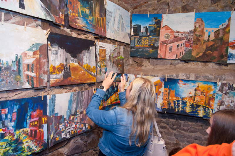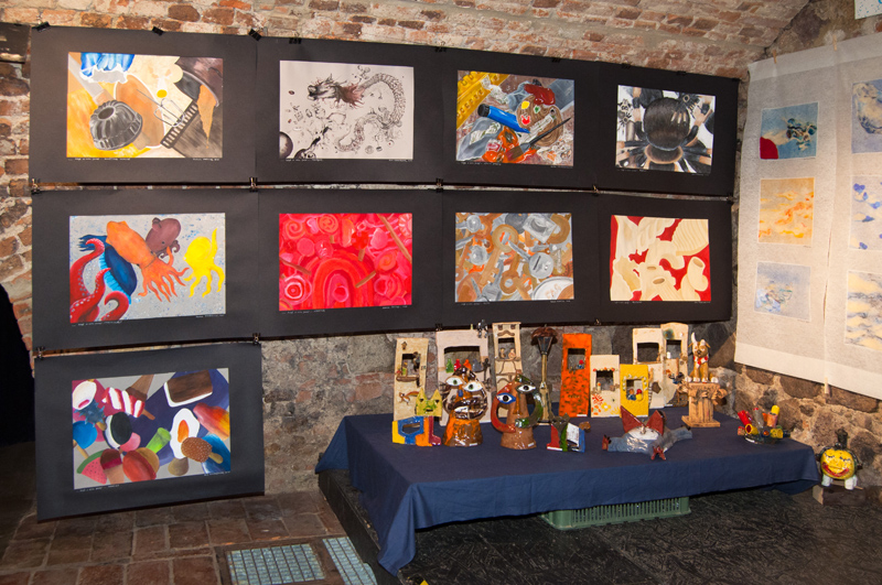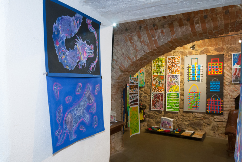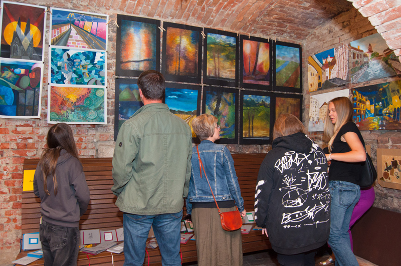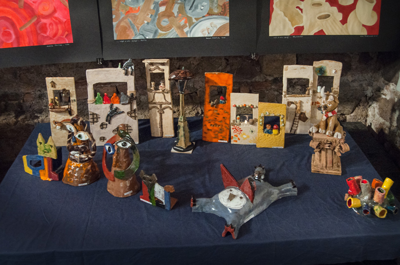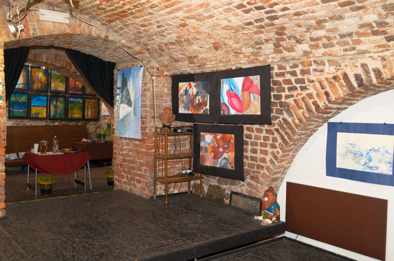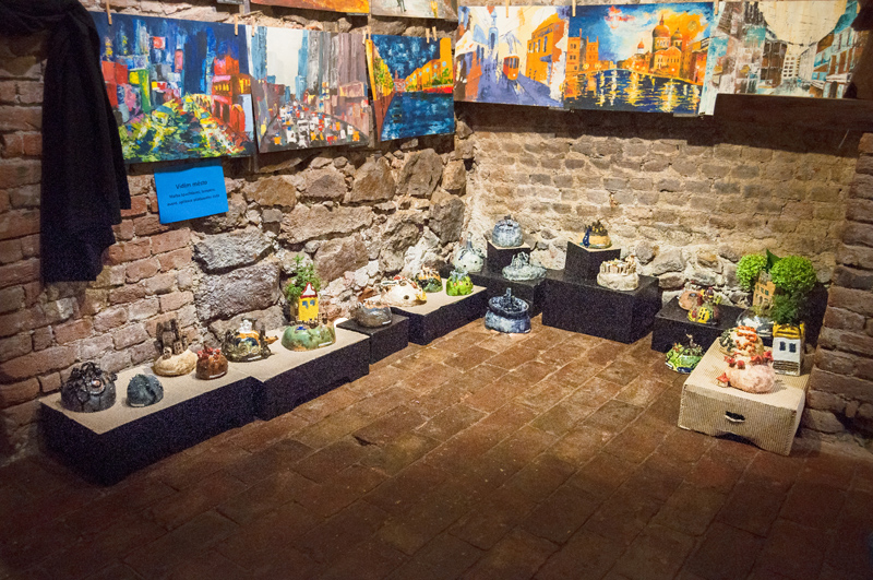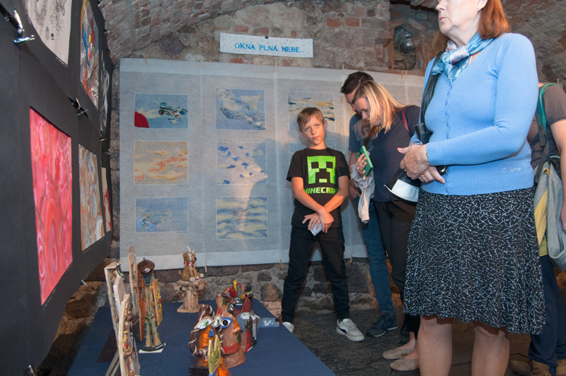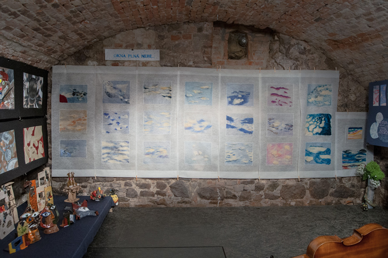 Nahlédněte do naší fotogalerie. Výstavní prostor sklepení má 3 větší sály, v prvním a druhém sále byly vystaveny artefakty z výtvarného ateliéru Ing. Polachové, ve třetím tvorba ateliéru Mgr. Kuklíkové.