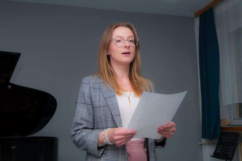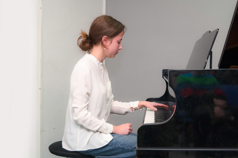 Natálie Fedorová (4. r., hra na klavír, žákyně p. učitelky S. Horákové) hrála Valse Triste Williama Gillocka.