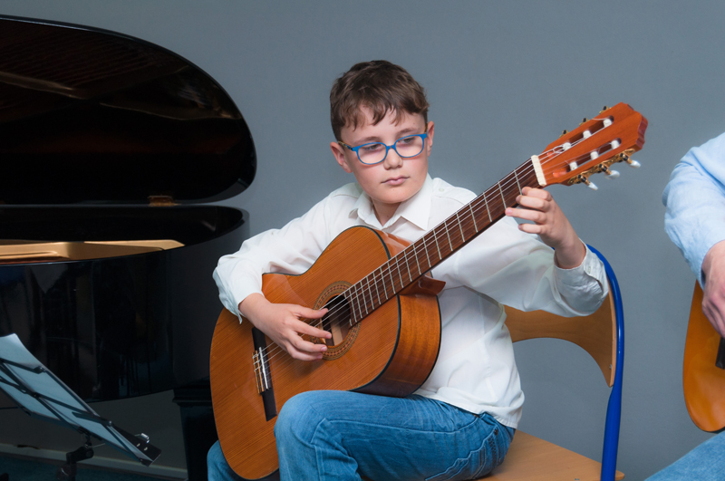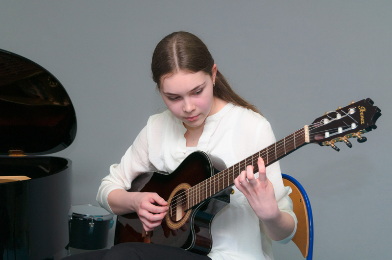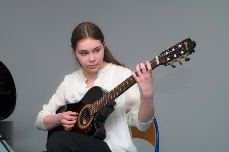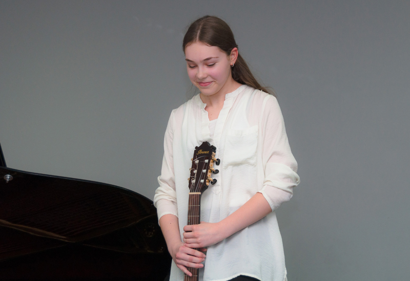 Rozalia Ella Komárková (7. r., hra na kytaru, žákyně p. učitele Tomáše Pohla) hrála populární kytarovou skladbu Romance d´Amour (Anonym).