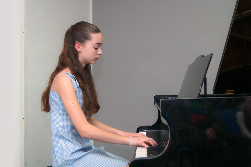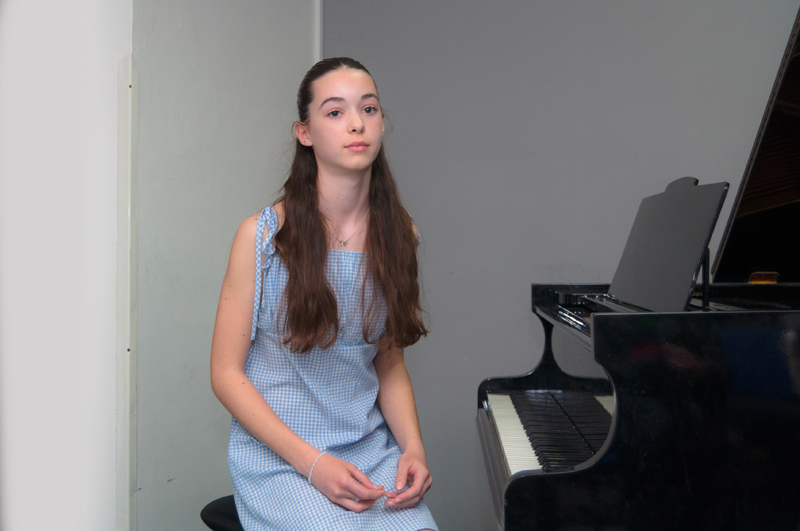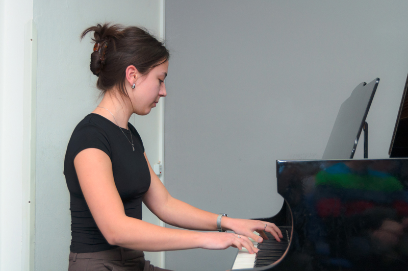 Daniela Vašínová (7. r., hra na klavír, žákyně p. učitele Marka Paľi) hrála skladby Je te laisserai des mots Patricka Watsona a Gnossienne no. 1 Erika Satie.