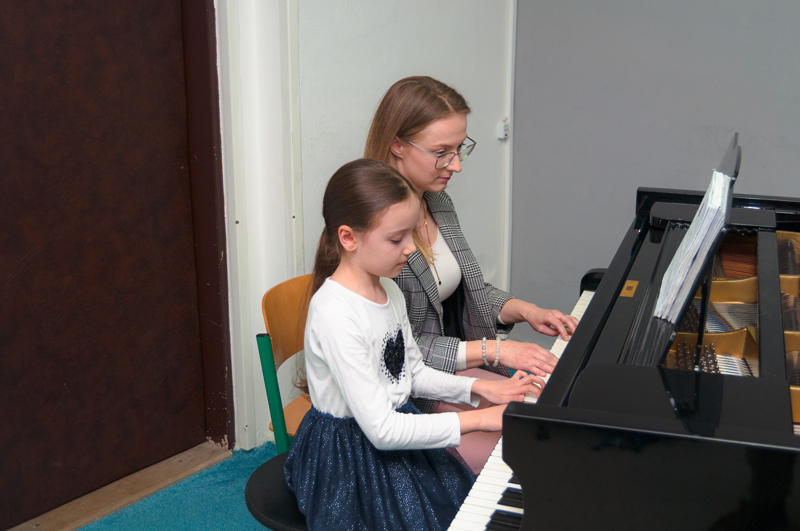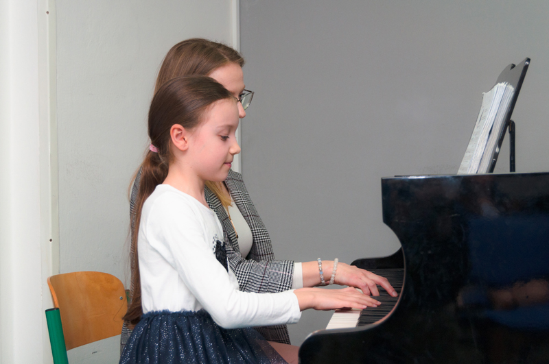 Karolína Hubinková (1. r., hra na klavír, žákyně p. učitelky Saskie Horákové) hrála skladbičky Anika Drabona Ryba Fiska a Hokuspokus blues a od Fanny Watermana Hopping frog.