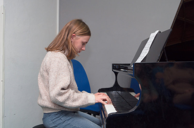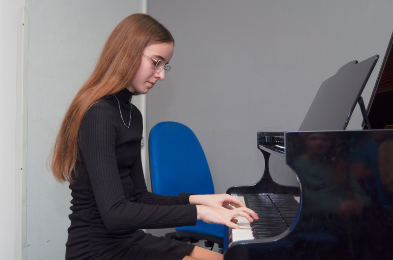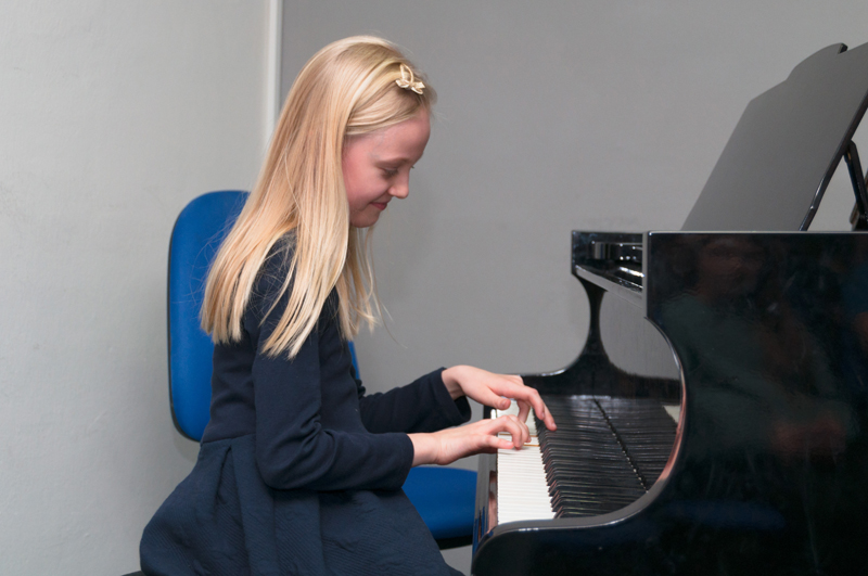 Na úvod zahrála na klavír Olívie Michaela Čepil (1. ročník) ze třídy p. uč. Evy Hubáčkové. Zazněly následující skladbičky: Motýl od Luboše Sluky a Miloň Čepelky a Slavíček je malý ptáček v úpravě Luboše Sluky. Následovala další klavírní čísla, všechna ze třídy p. uč. Evy Hubáčkové. Laura Proksová (1. ročník) zahrála Středověký taneček od Evy Lorenc a od Vartana Agopiana Alenku v říši divů. Sofie Štěpánová zahrála Jezdce od Aleca Rowleyho a Malý valčík od Evy Lorenc. V podání Alberta Procházky (2. ročník) zazněly skladby Old Spanish Tune a Here Comes The Caravan z Evropské klavírní školy. Klavírní blok uzavřela Amelie Francis Sidzina (2. ročník) se skladbou Fritze Emontse En barque a se známou skladbičkou Old McDonald.